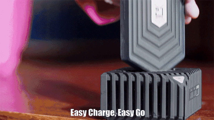 iTron 内建9,000 mAh 电池,以iPhone6s Plus的电池容量为 2750mAh 为例,iTron 给你的手机充满 3 次电。iTron的造型十分具有未来感,底座上有LED灯可在充电的时候闪动提醒。主体移动电源部分是一个盾形,尖的一端有一个DC圆形接口可以插入底座充电,项目方说考虑到体积和携带的因素,将容量设定为9000mAh,使用底座可以实现20V5A输入,完全充满只需要18分钟左右。