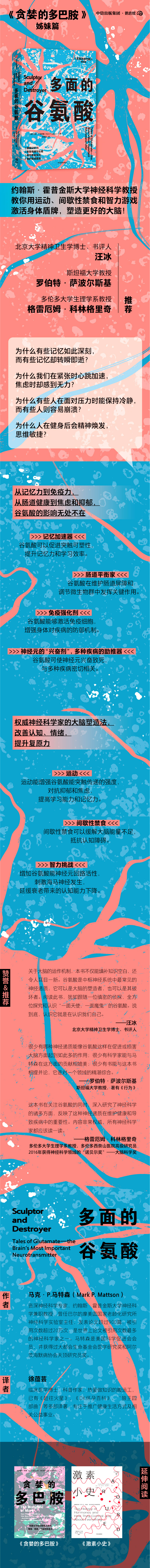 面对如此多面的谷氨酸,我们又该如何趋利避害,让谷氨酸发挥其优势,而避免对我们的身体造成负面影响呢?作者在书中提供了通过健康的生活方式来优化谷氨酸能神经元网络的实用建议,通过体育锻炼、间歇性禁食和智力游戏,我们就能够认知能力和生活质量,塑造出更好的大脑!