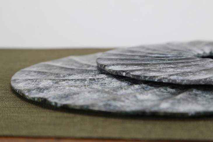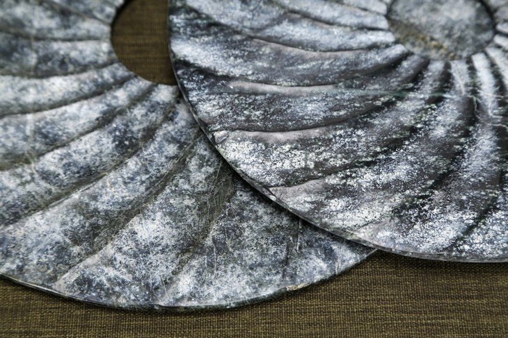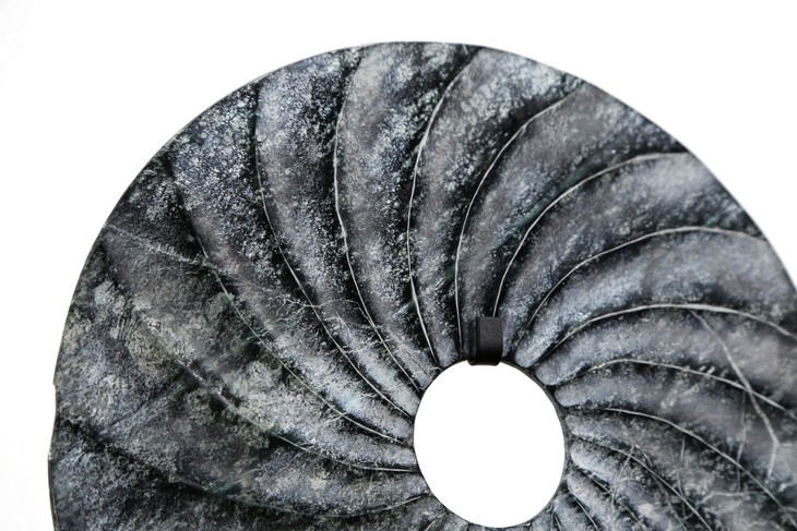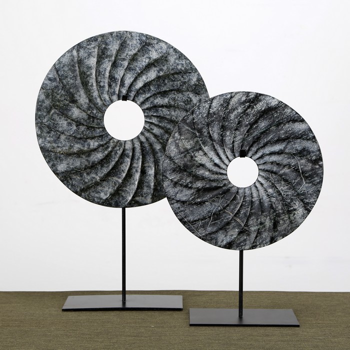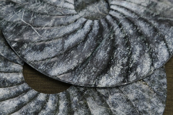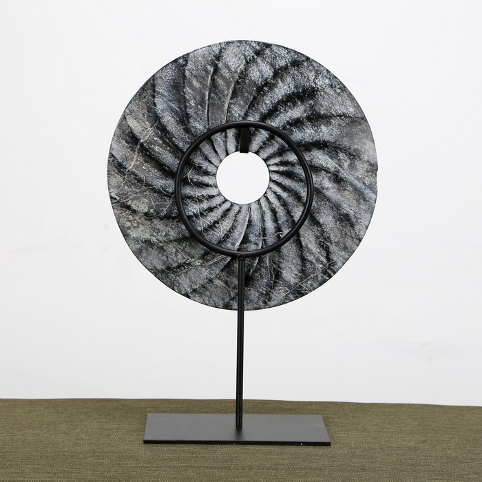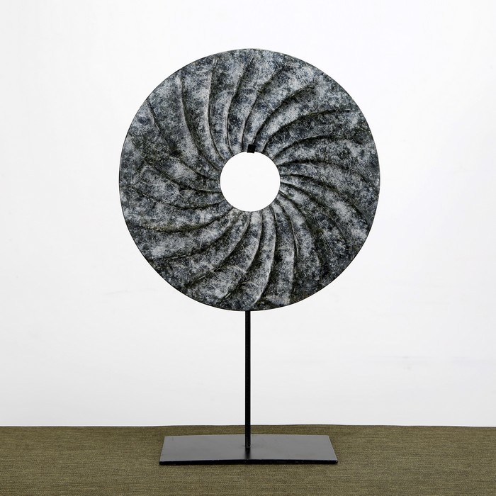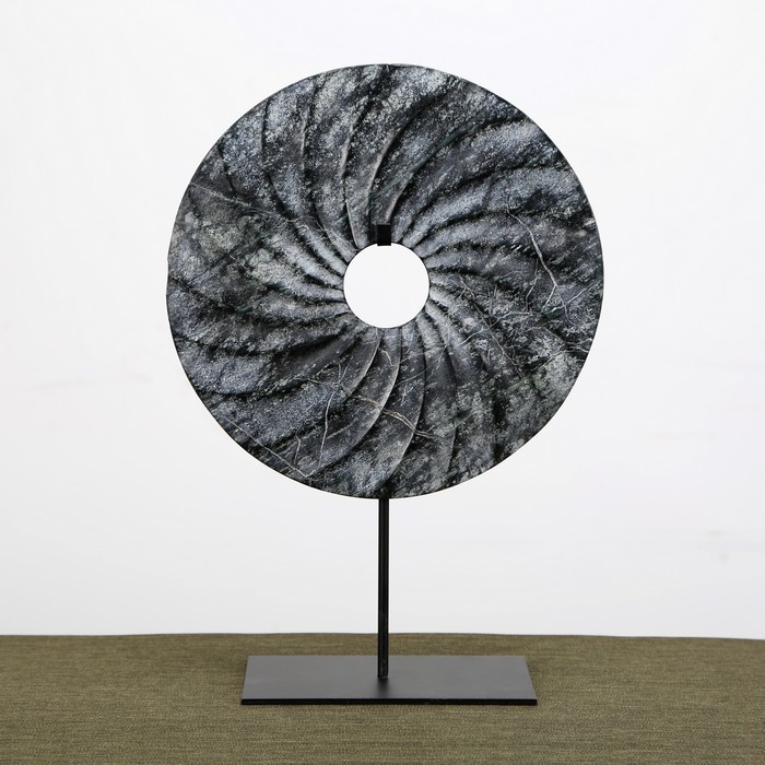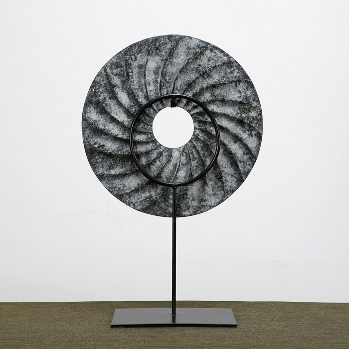 仿制玉石石器灰色螺纹玉片加托玉片玉璧WBH17110023 Newly made Marble gray thread disk with stand