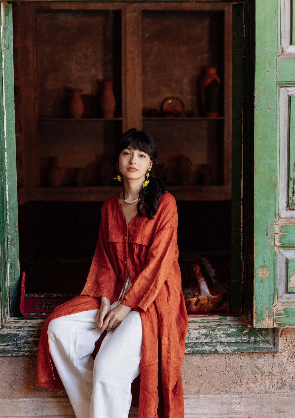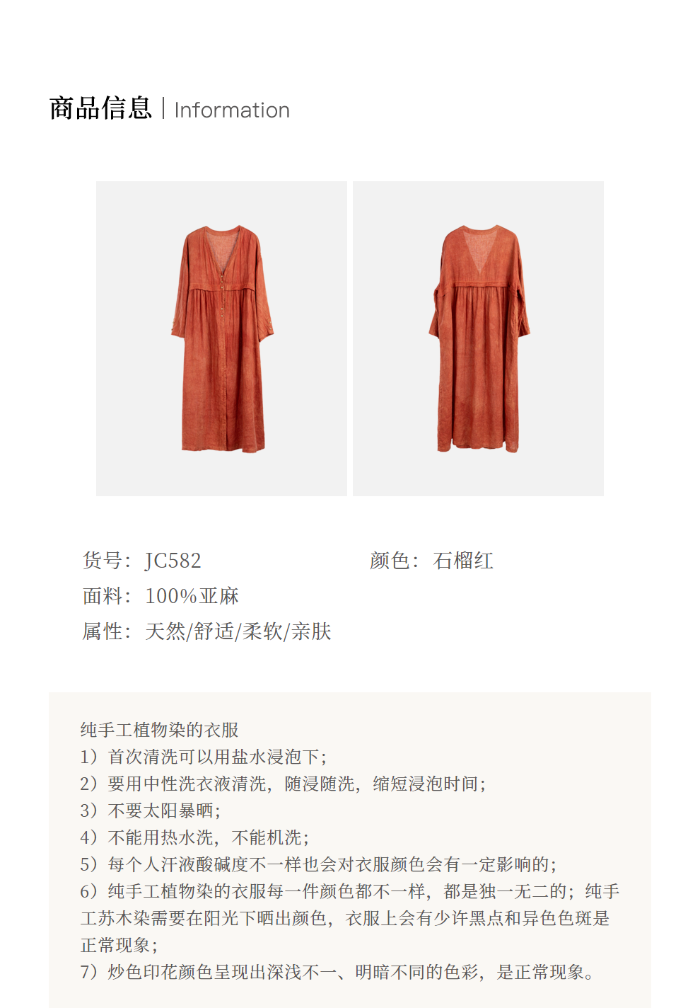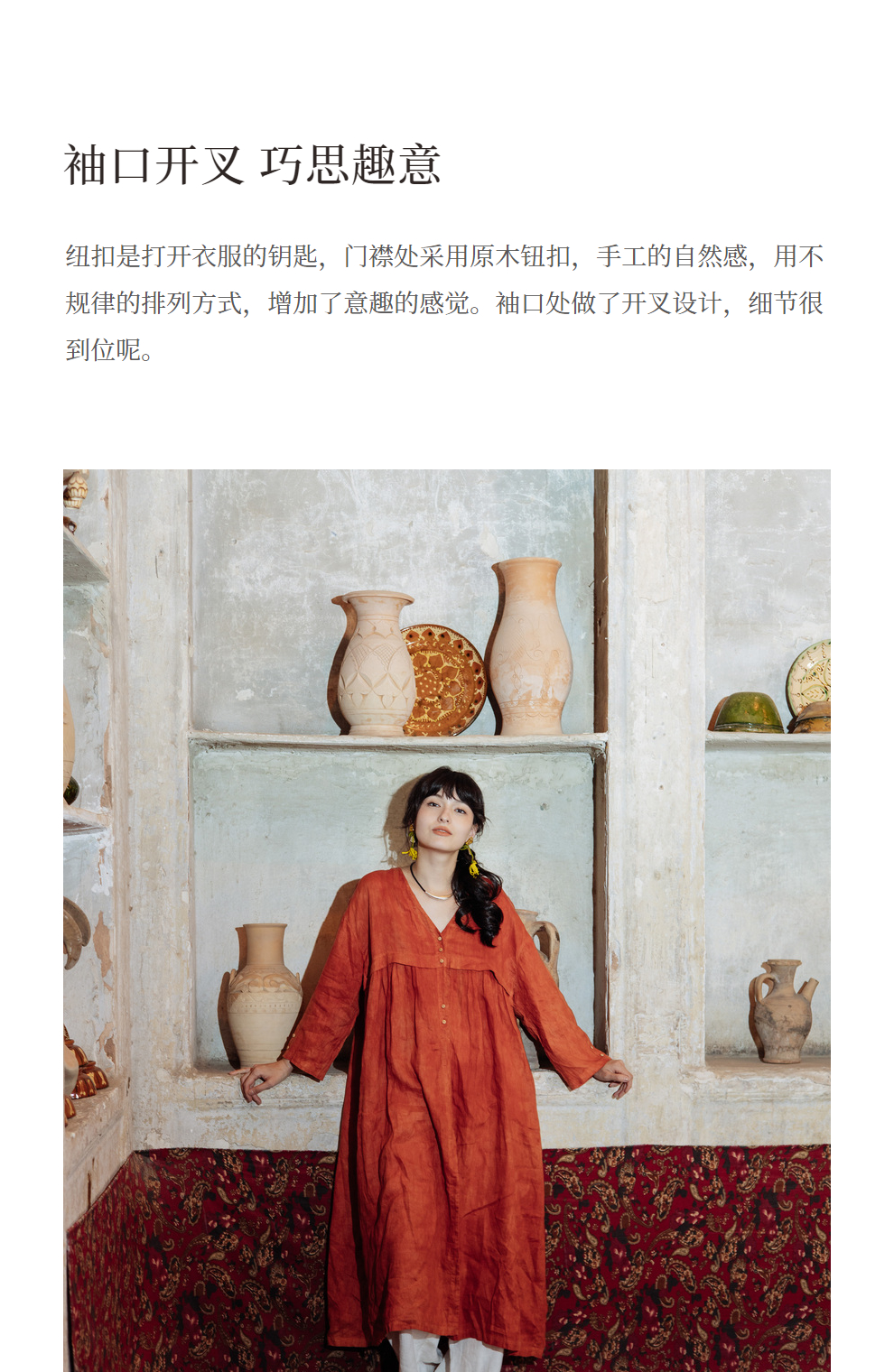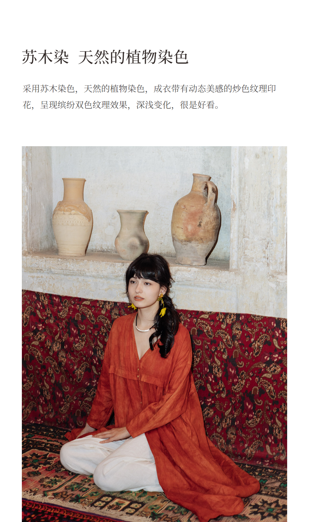 绽放582朵/【苏木系列】苎麻苏木植物染胭脂红长款旅行开衫连衣裙