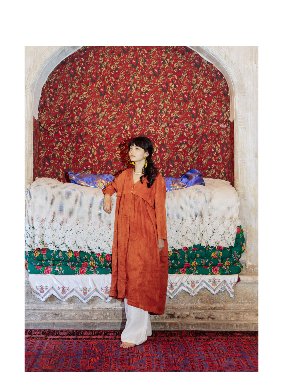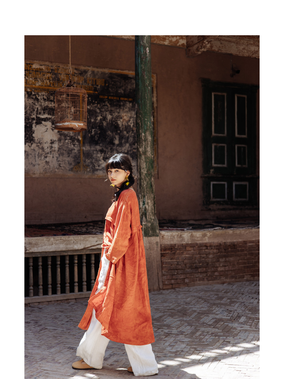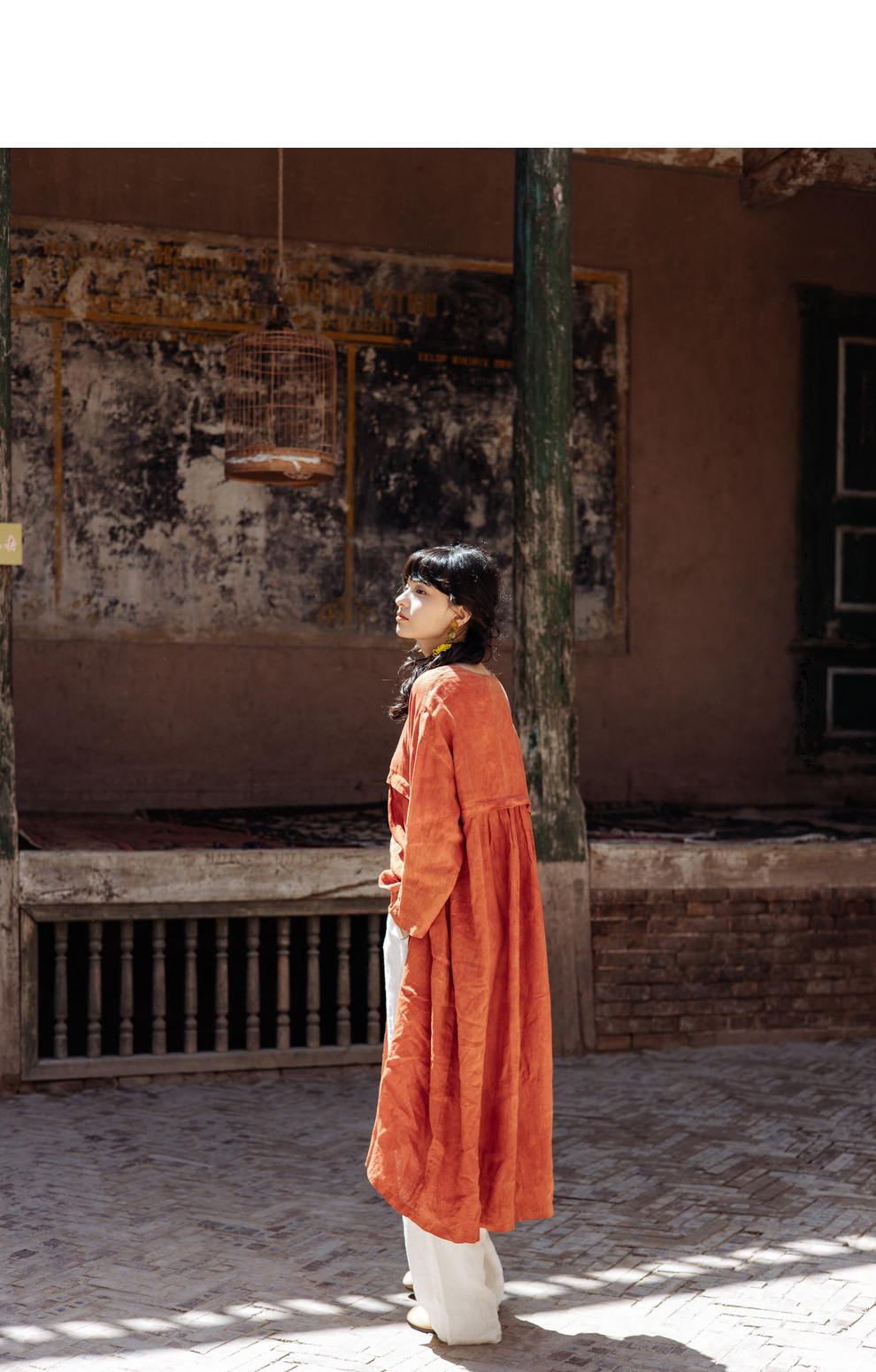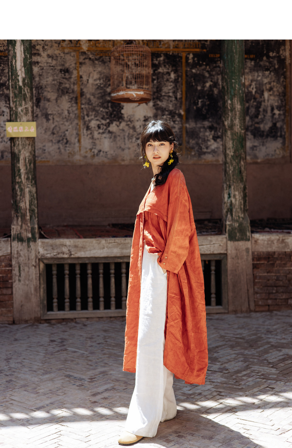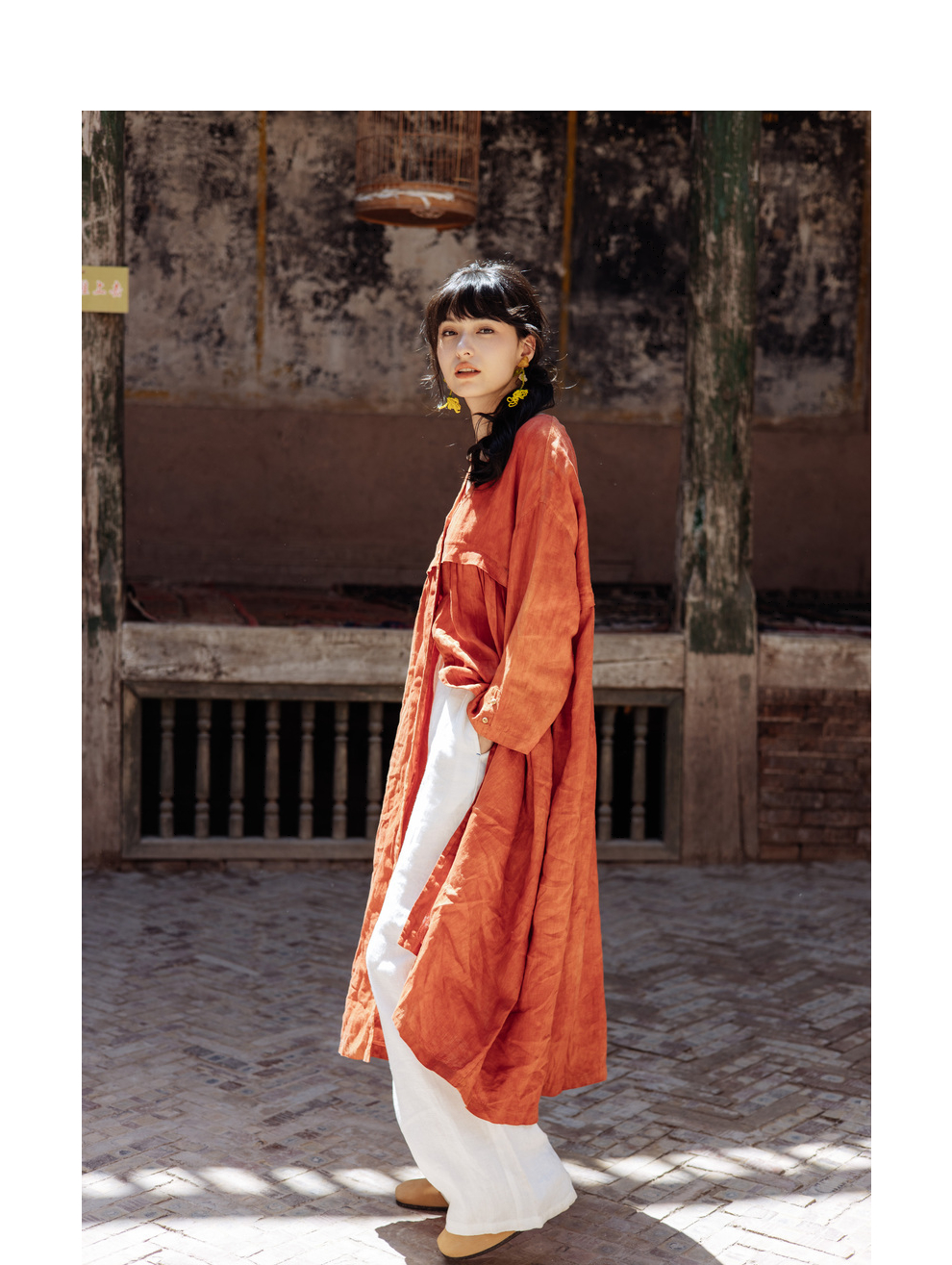 绽放582朵/【苏木系列】苎麻苏木植物染胭脂红长款旅行开衫连衣裙