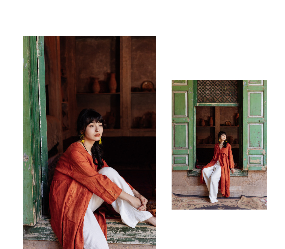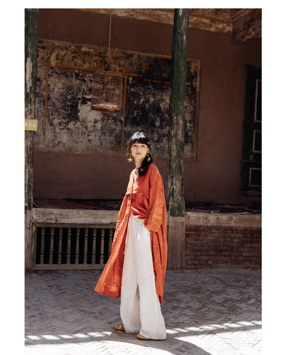 以天然亚麻为载体,融合热烈色彩与自在剪裁为身在城市、心怀远方的女性提供兼具美学与舒适的旅行着装