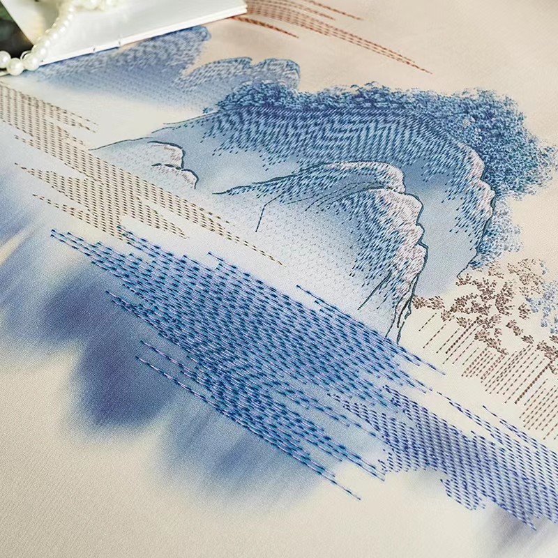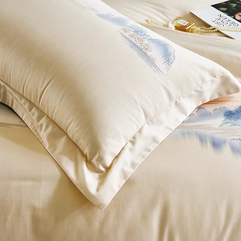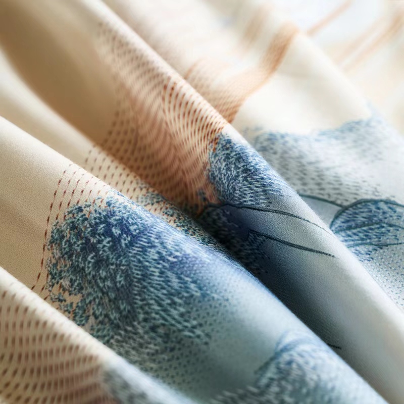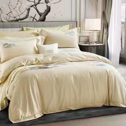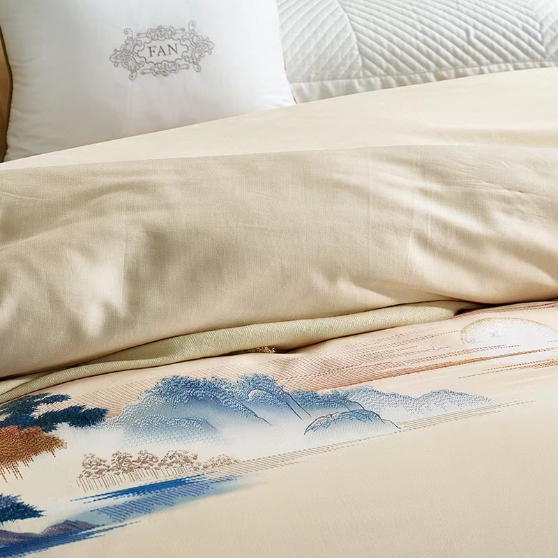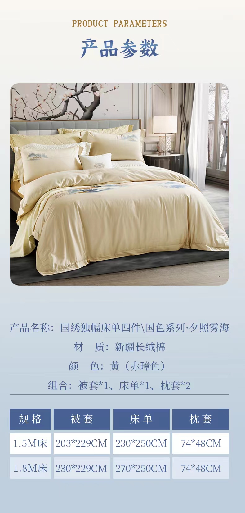 【7楼】富安娜国绣独幅床单四件\国色系列·夕照雾海,单被加大,黄