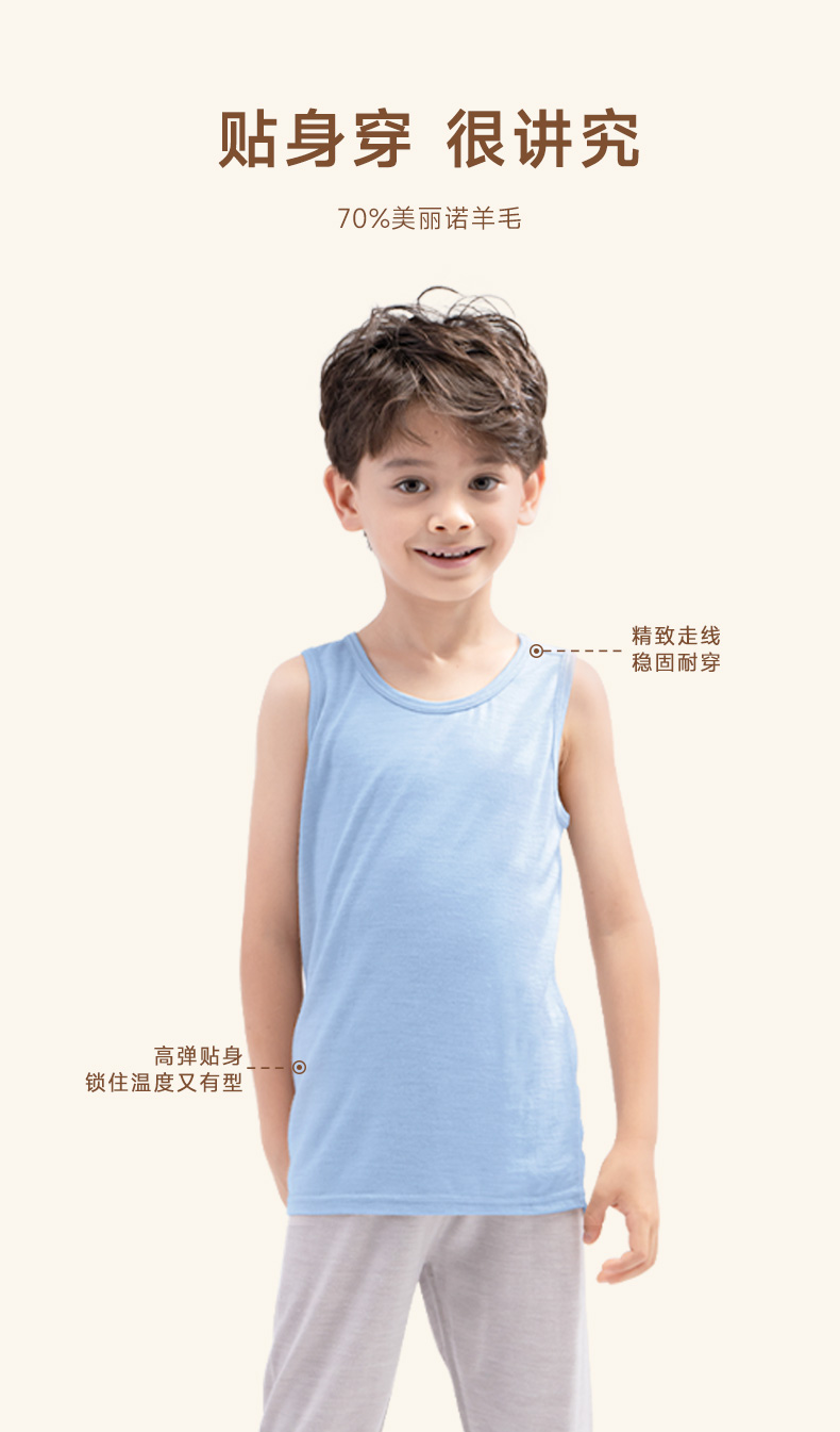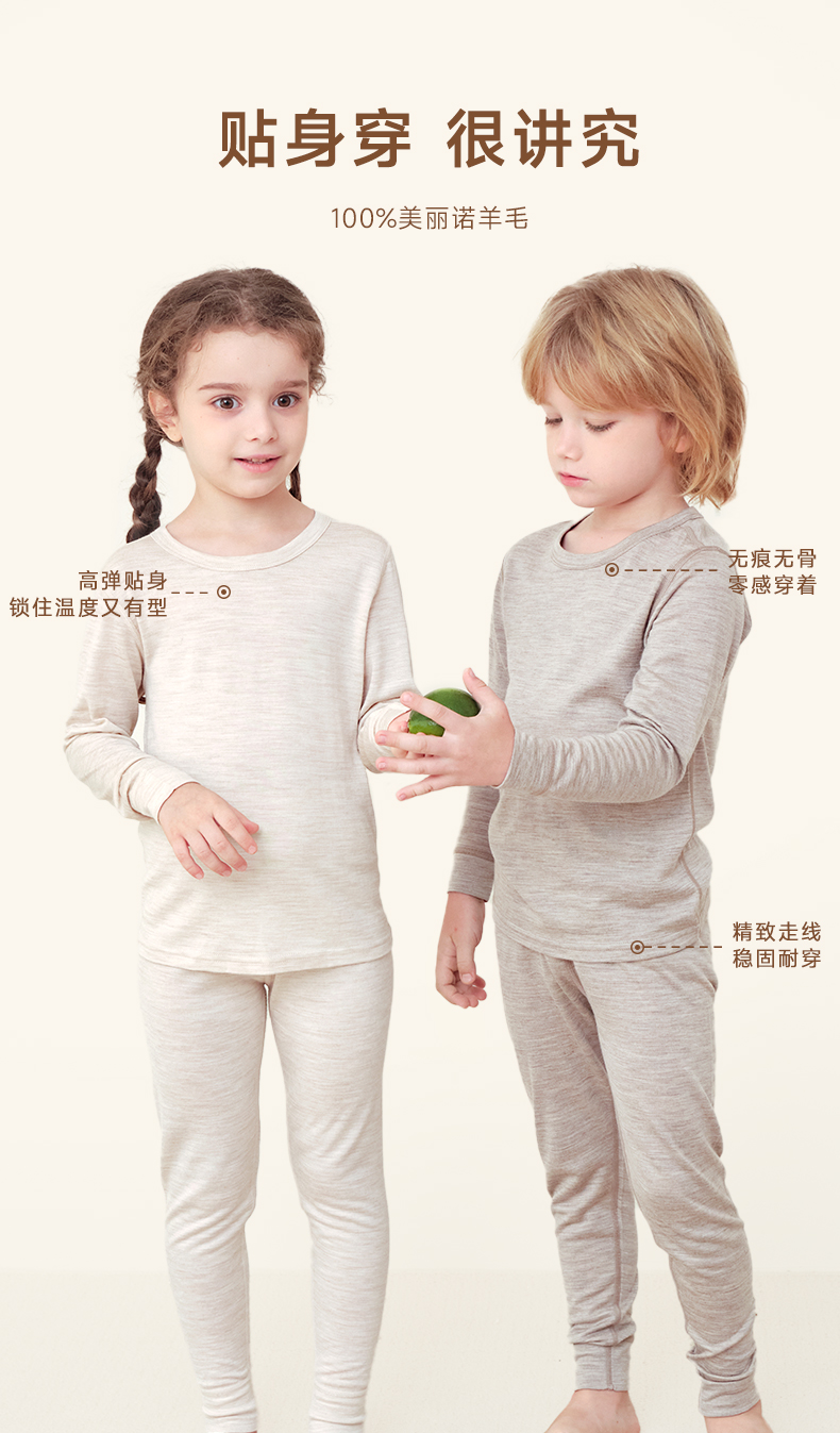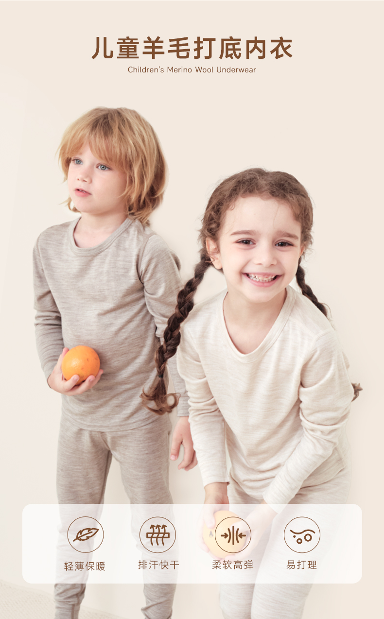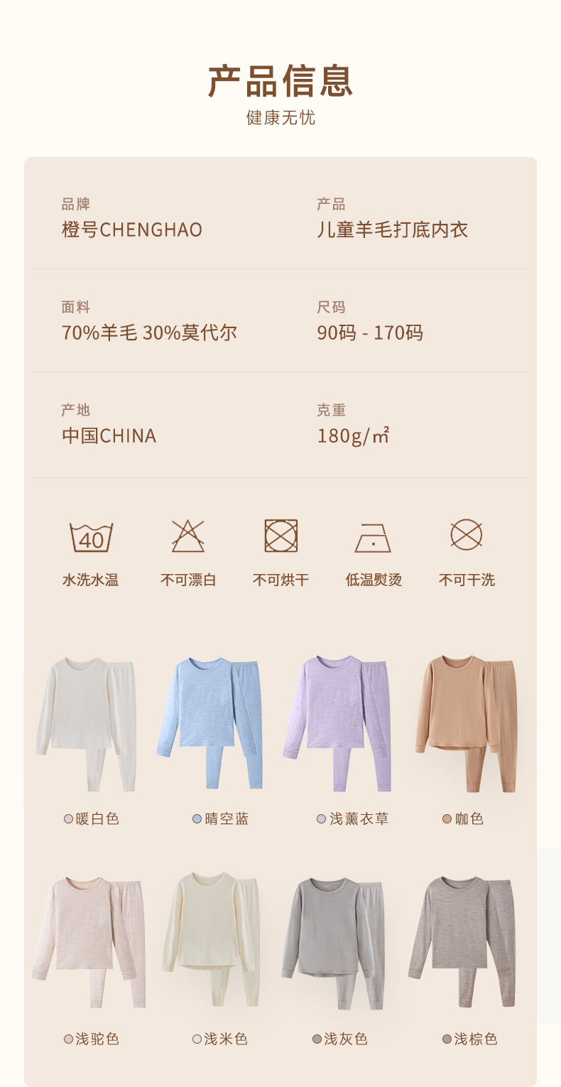 低于双12【90-170】橙号70%美丽诺羊毛+30%莫代尔儿童秋衣秋裤/背心2025年 克重180g/㎡