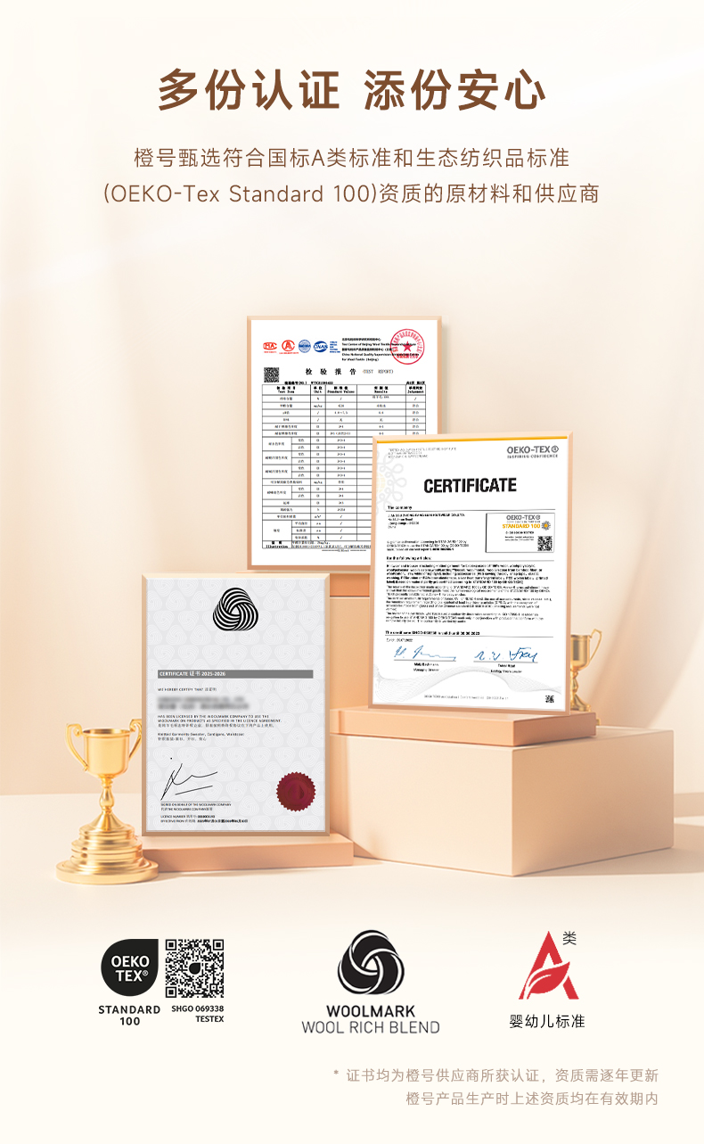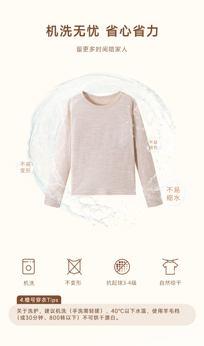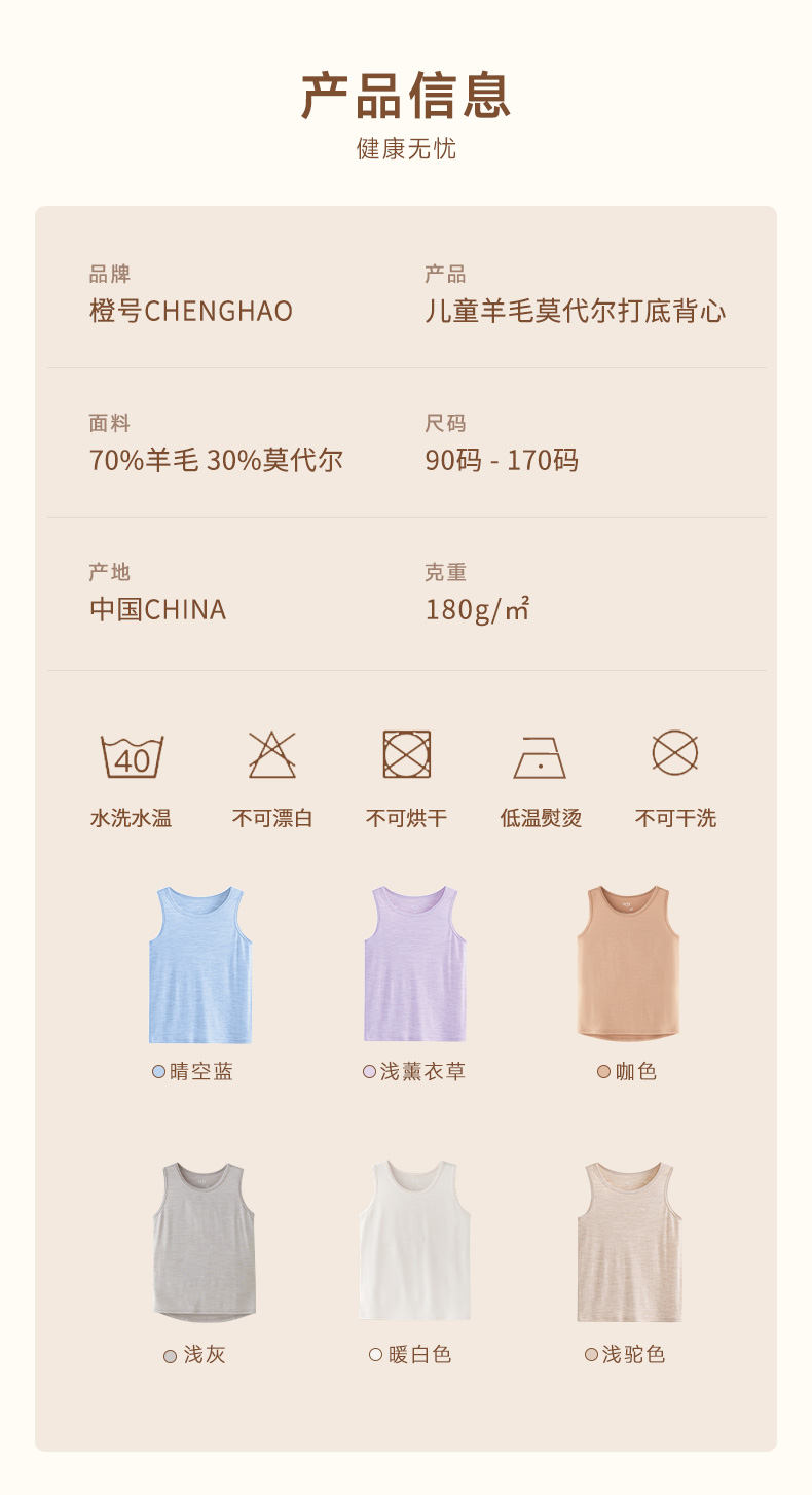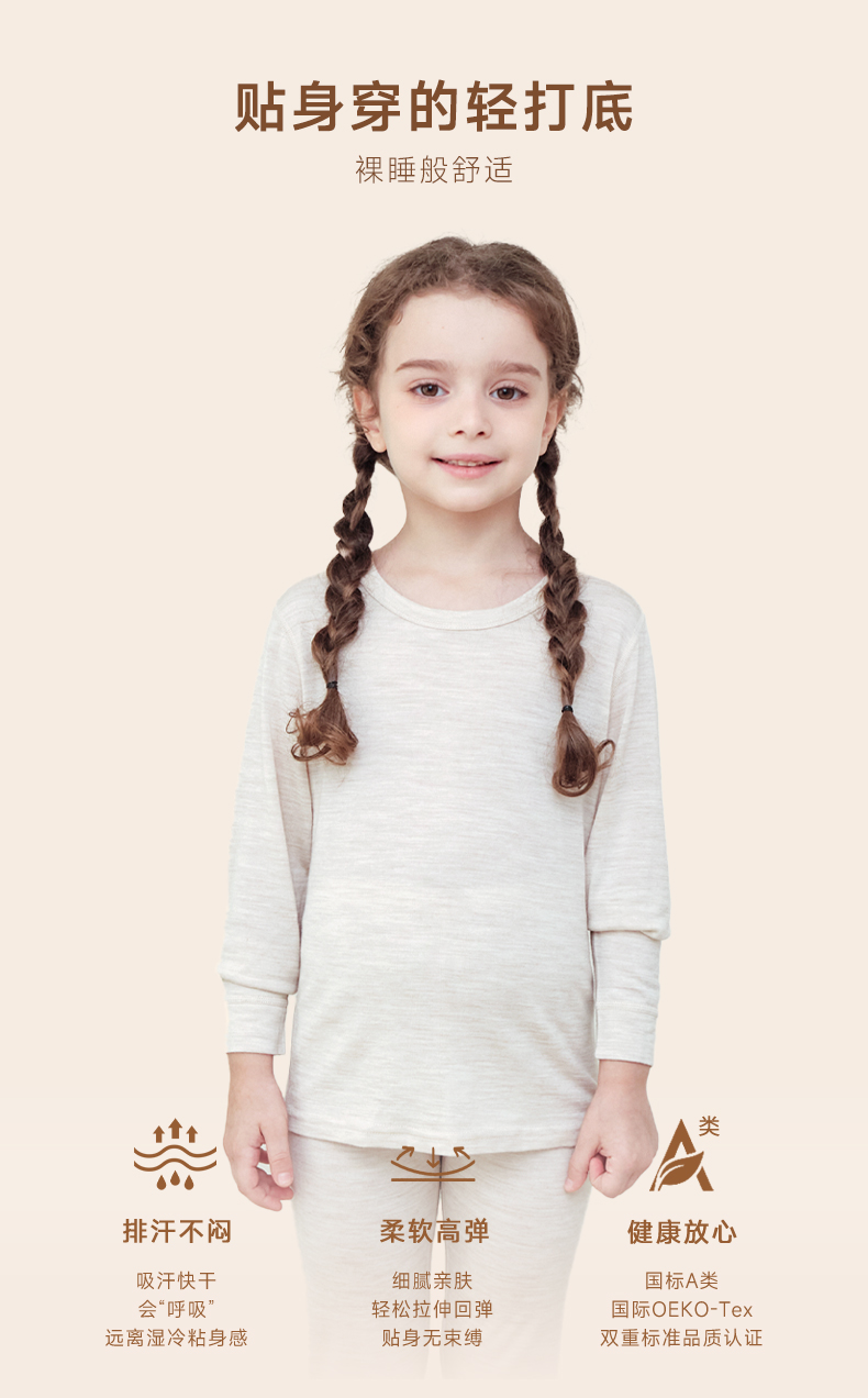 低于双12【90-170】橙号70%美丽诺羊毛+30%莫代尔儿童秋衣秋裤/背心2025年 克重180g/㎡