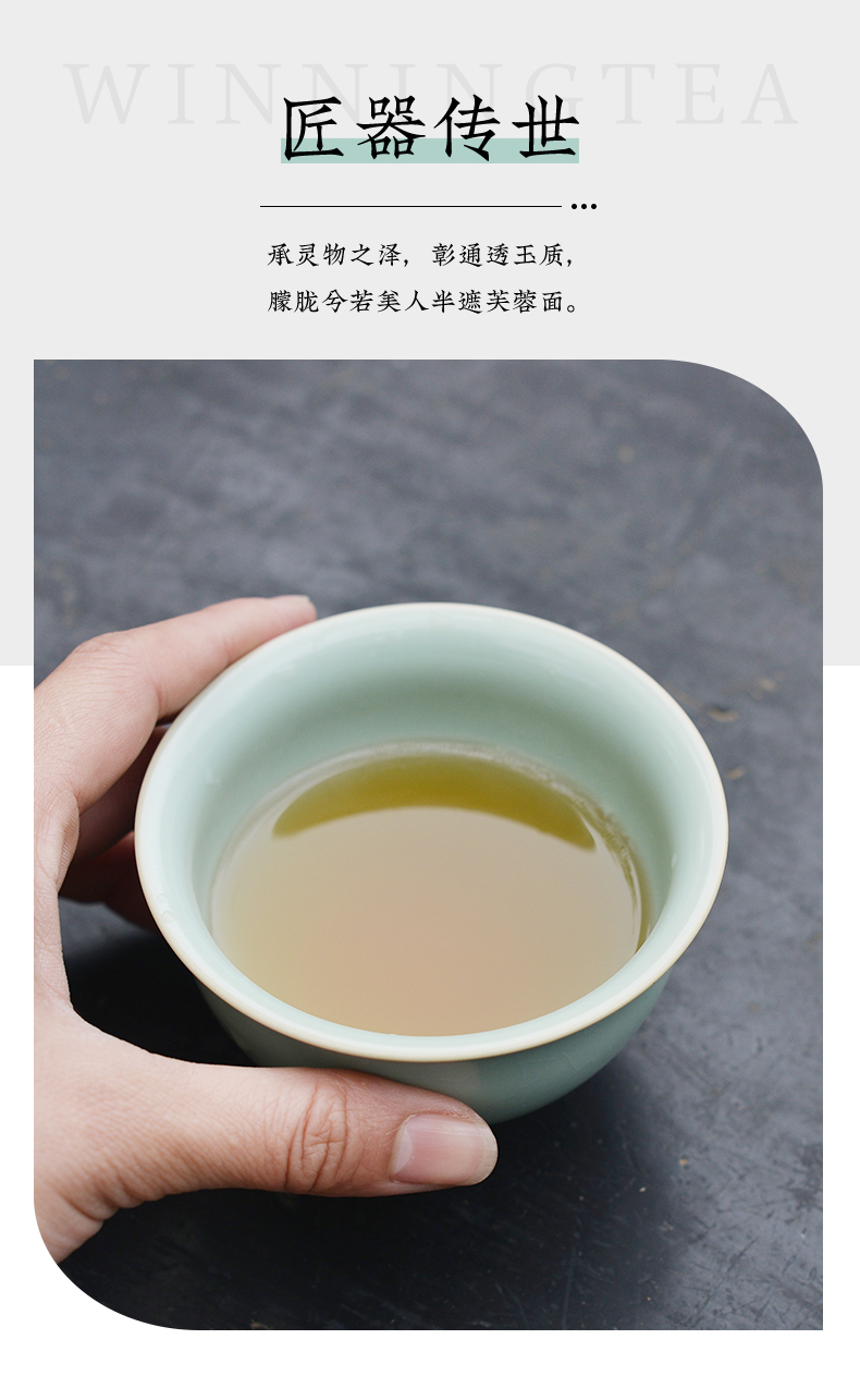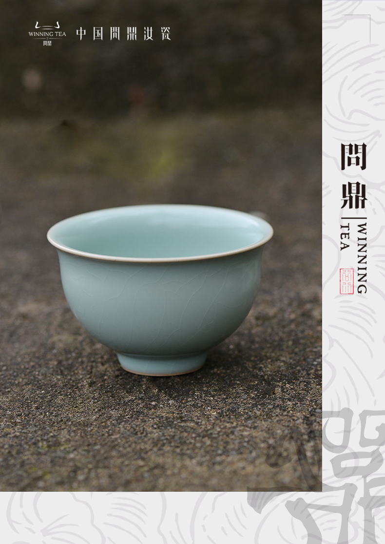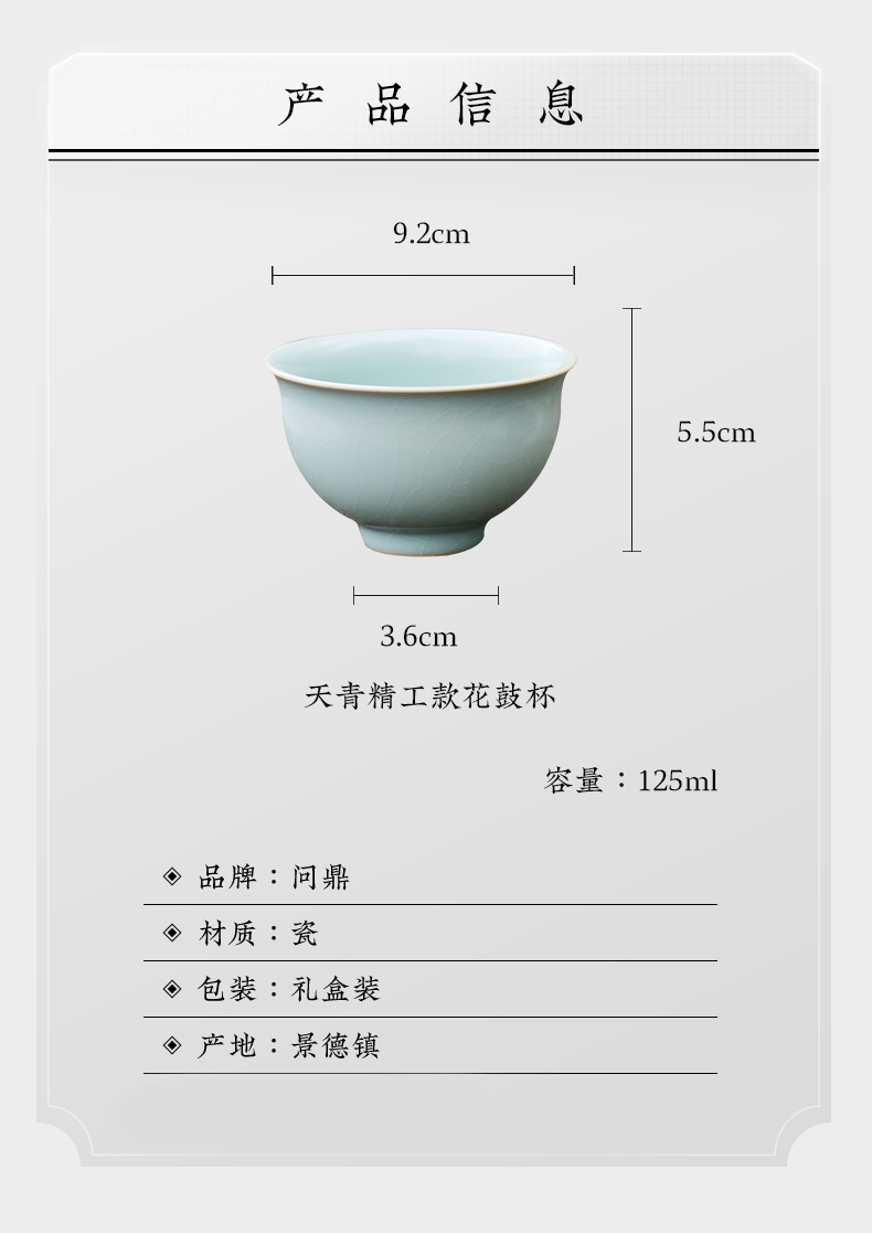 问鼎汝瓷鼎峰系列天青老款精工花鼓杯(缺货)