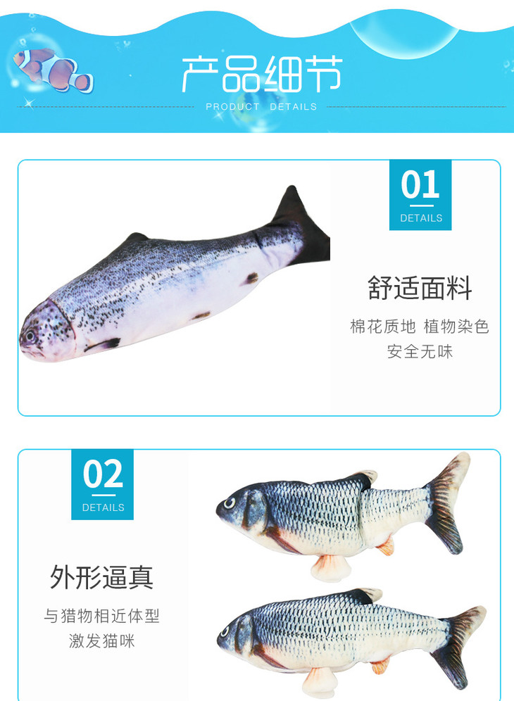 【宠物用品】亚马逊爆款电动仿真鱼会跳动猫玩具自动逗猫玩具送猫薄荷