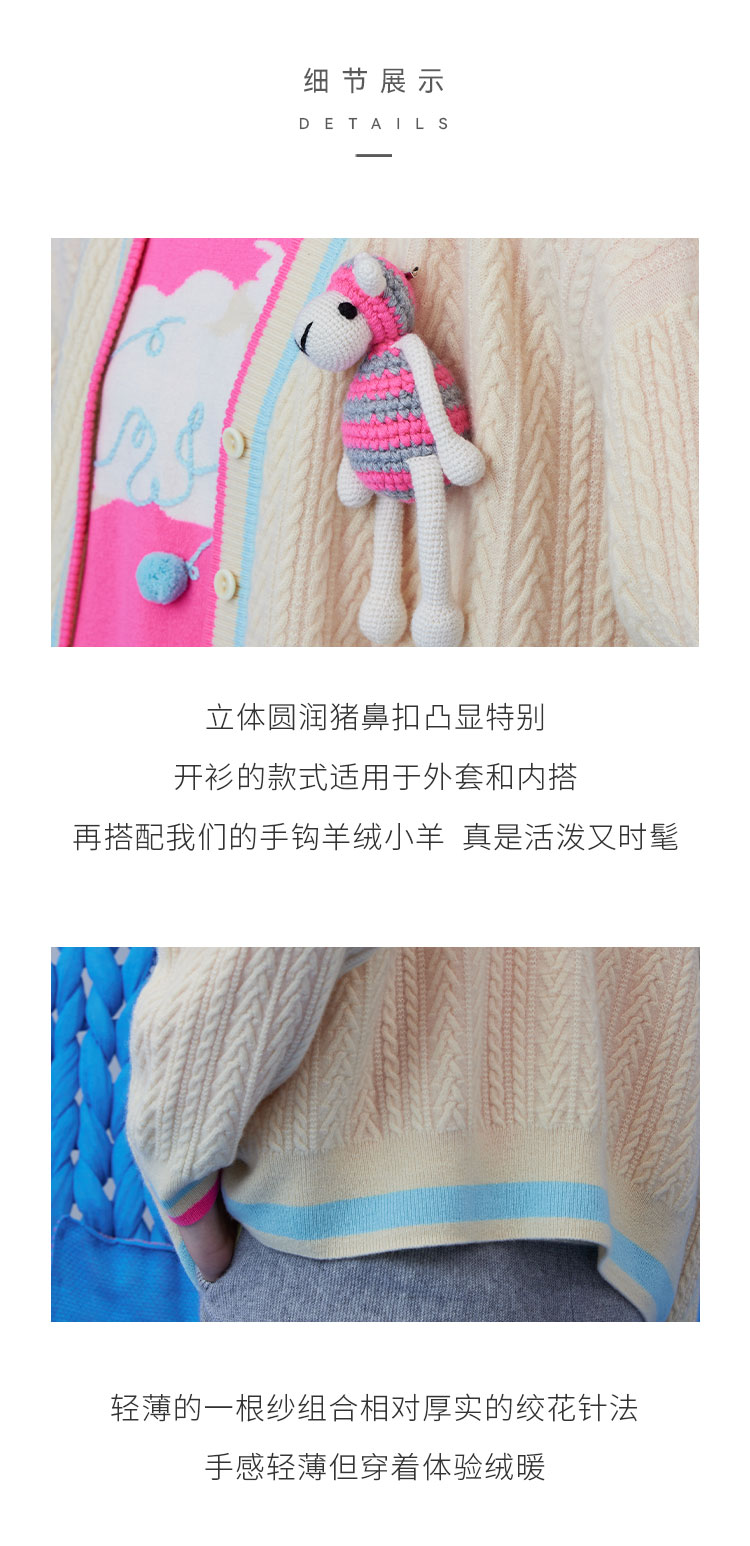 疗愈羊绒|V领手工绣花羊绒女开衫 SJF93W105A