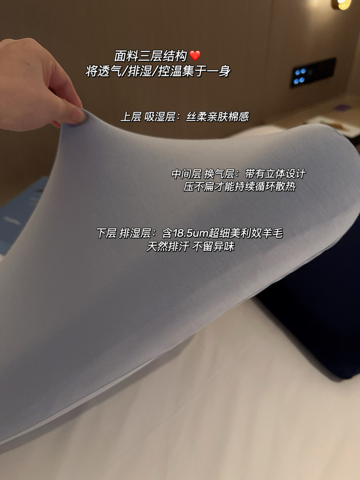 ▫️下层 排湿层:含18.5um超细美利奴羊毛 天然排汗 不留异味