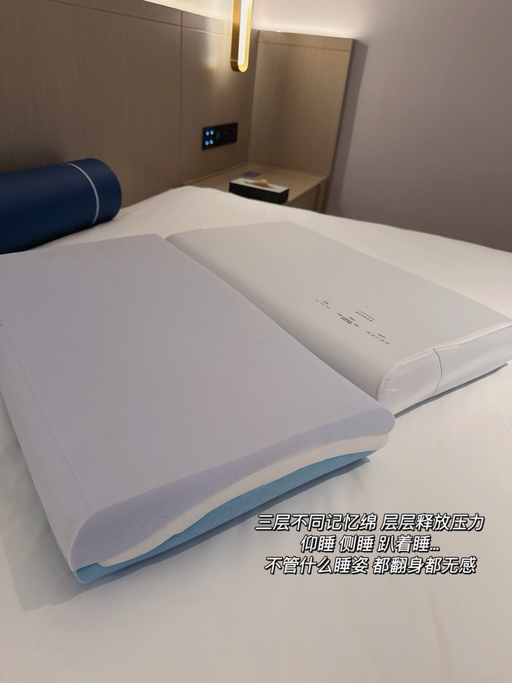 记忆棉枕的慢回弹包裹能给脖子减轻不少负担~