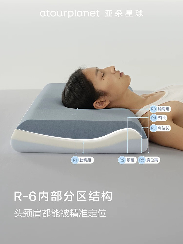 3.0顺应脊柱自然曲度,是最合适的枕高,独创“R-6”内部分区支撑结构,即使睡姿变化,也能随时支撑头颈到合适高度