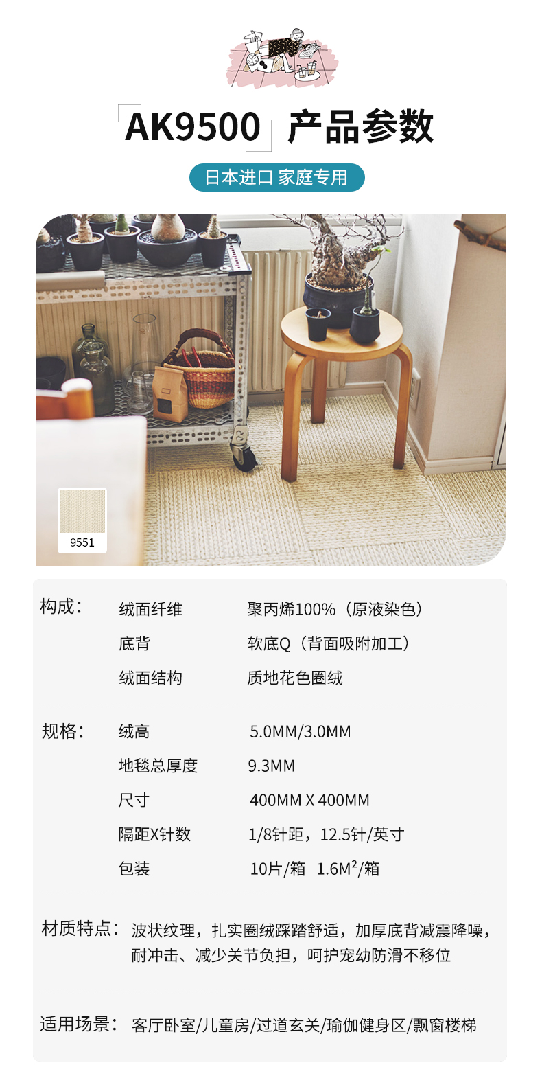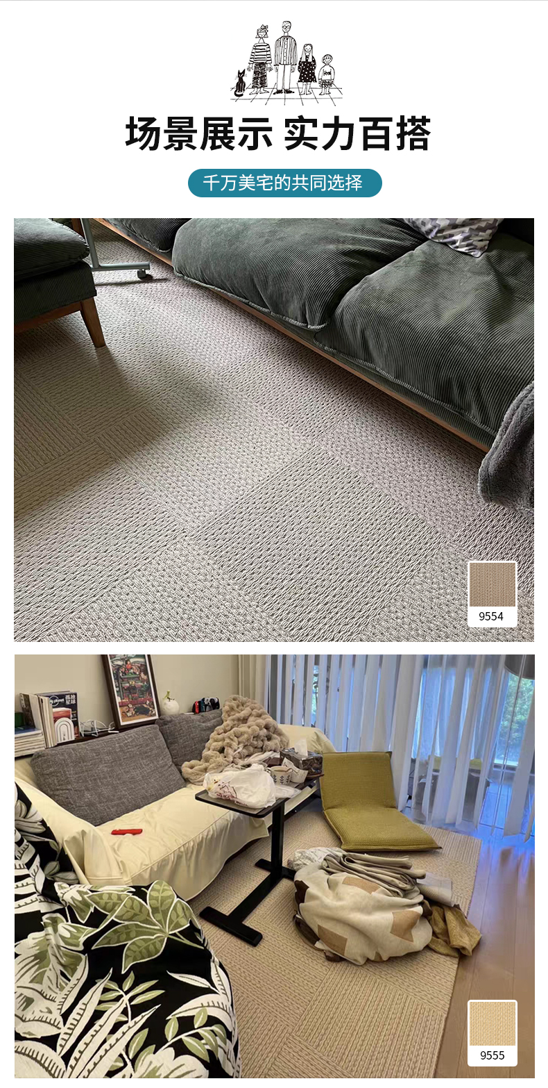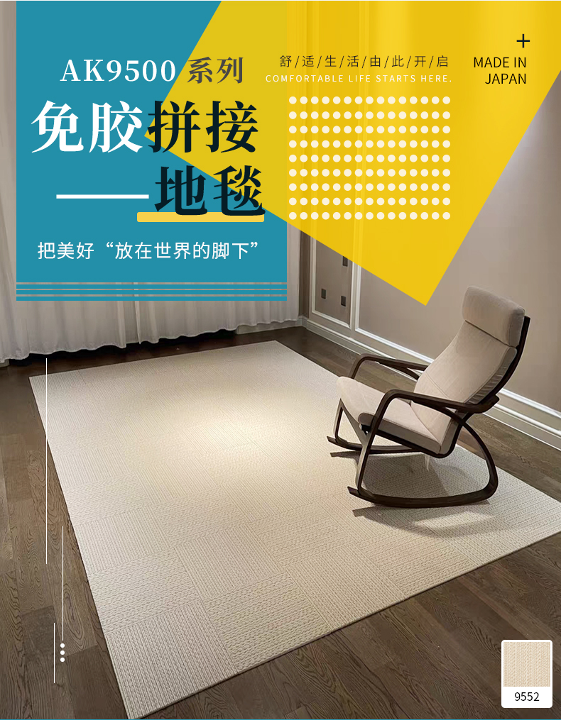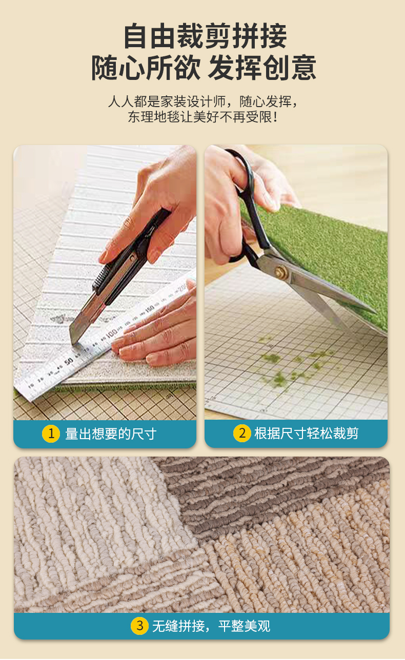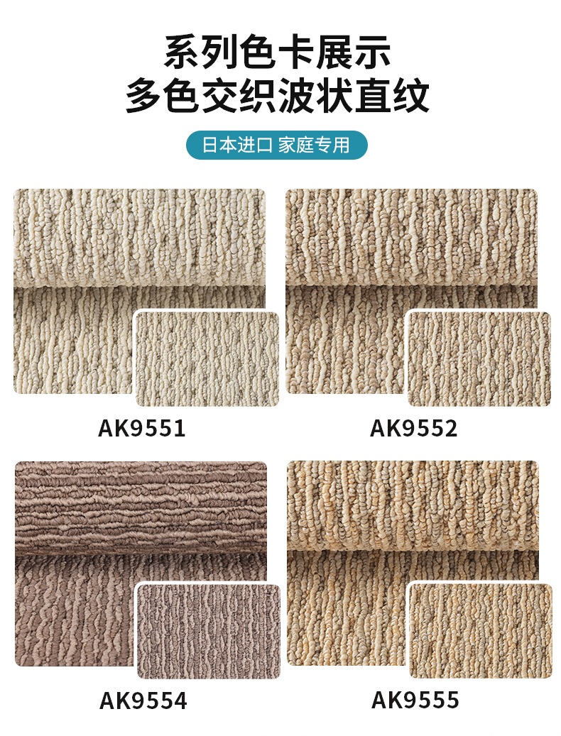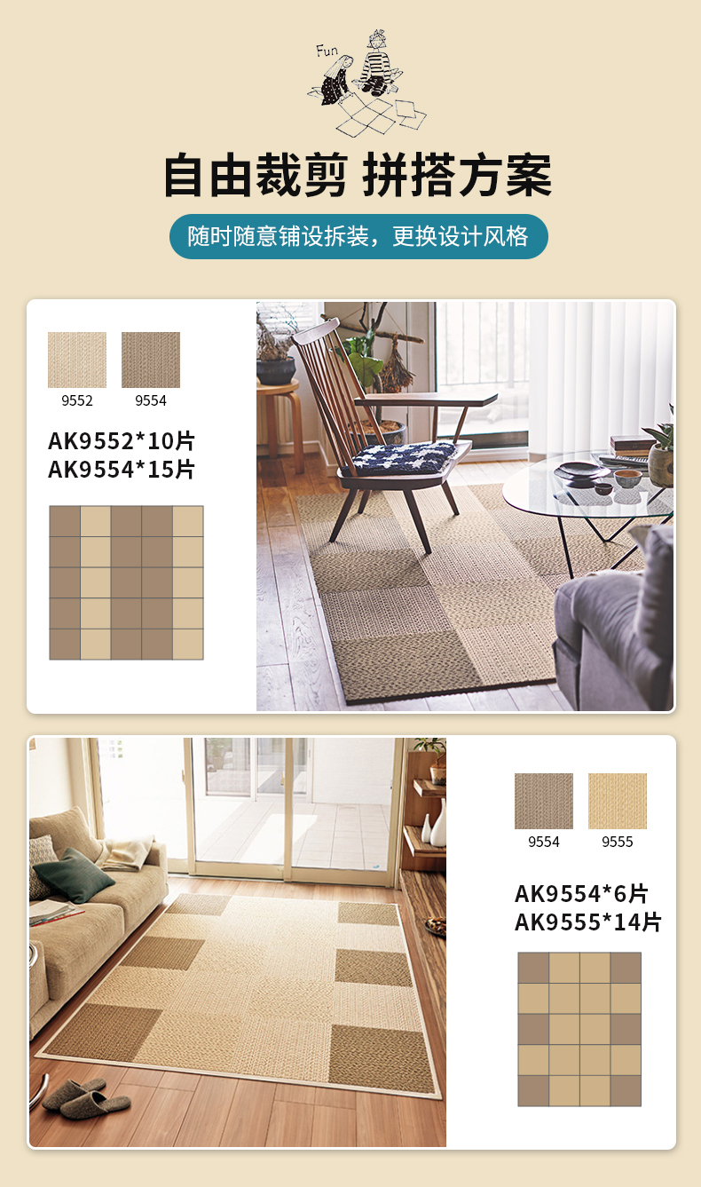 日本东理地毯TOLI进口家用客厅地毯环保可裁剪剑麻质感拼接式地毯