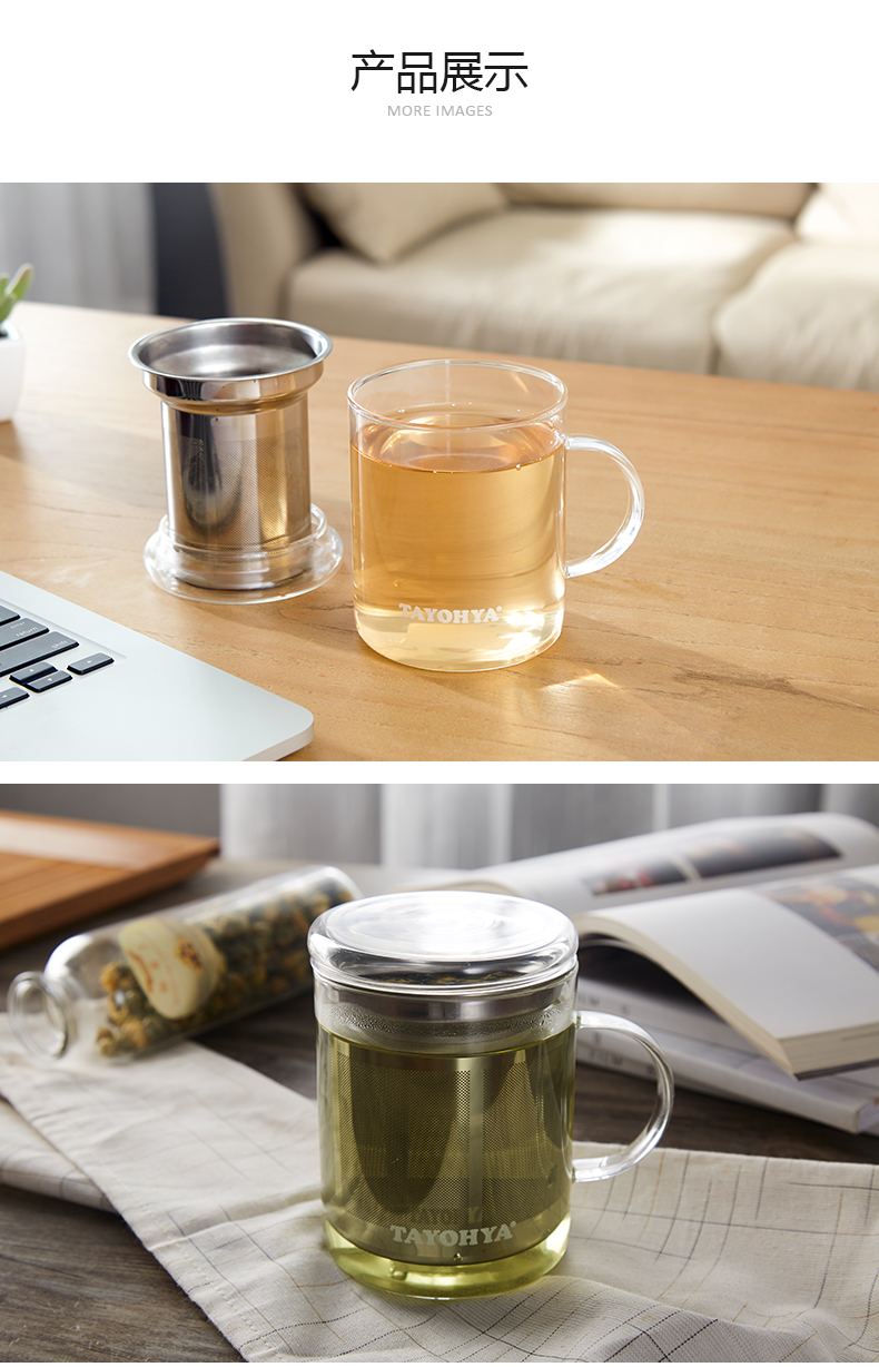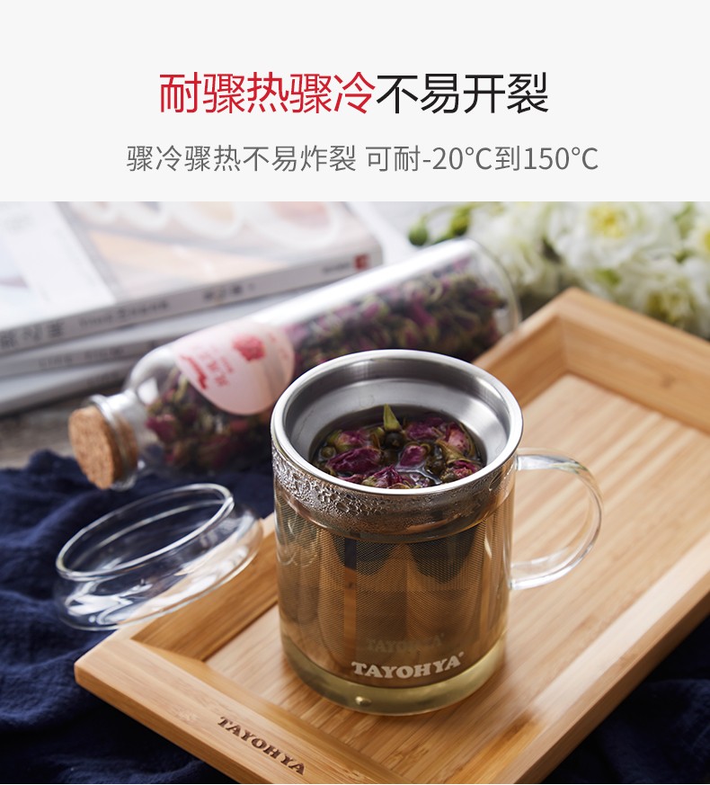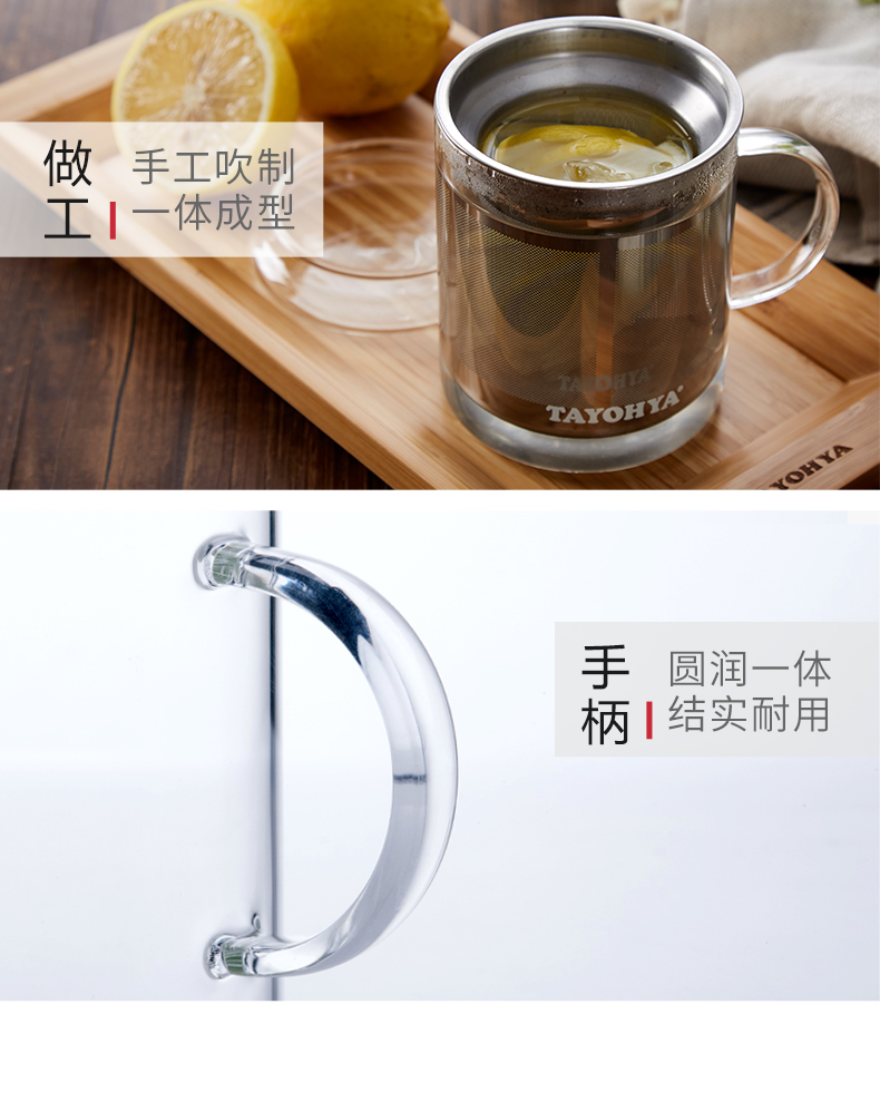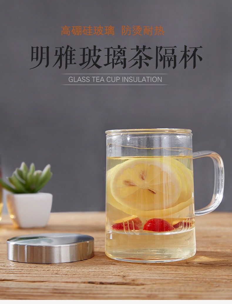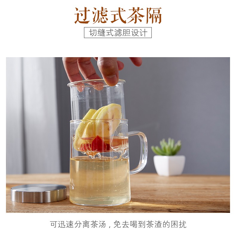 【6F】多样屋茶杯单层玻璃水杯带手柄 家用带盖茶水分离杯 有茶隔过滤杯子 高硼硅玻璃杯
