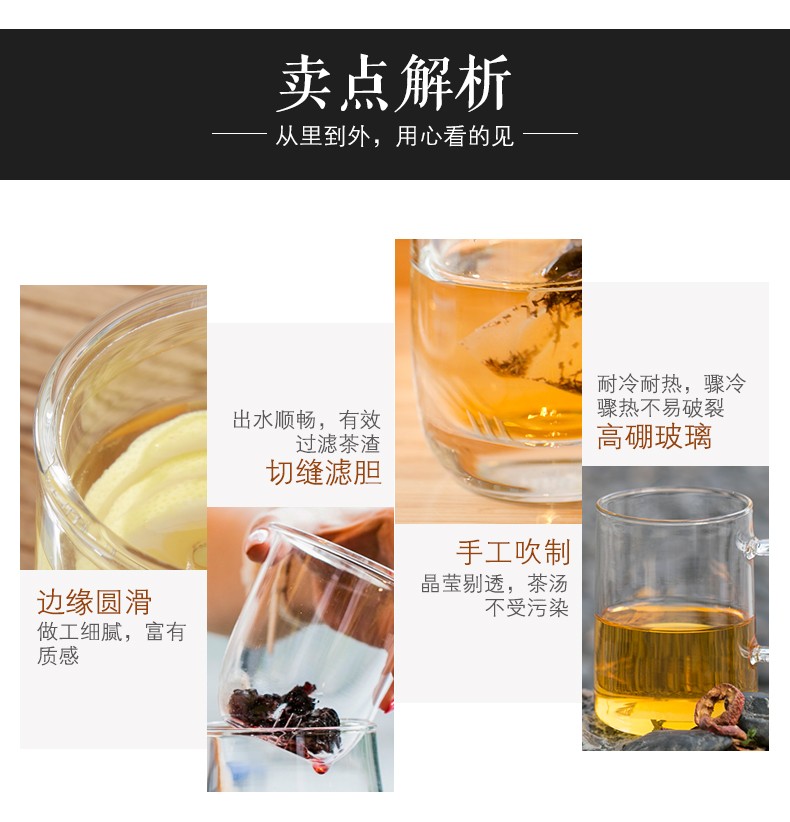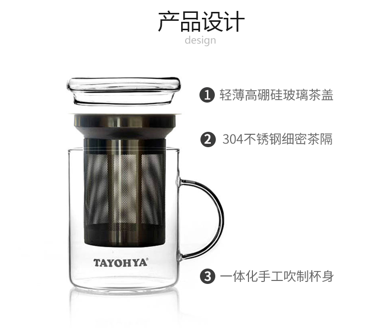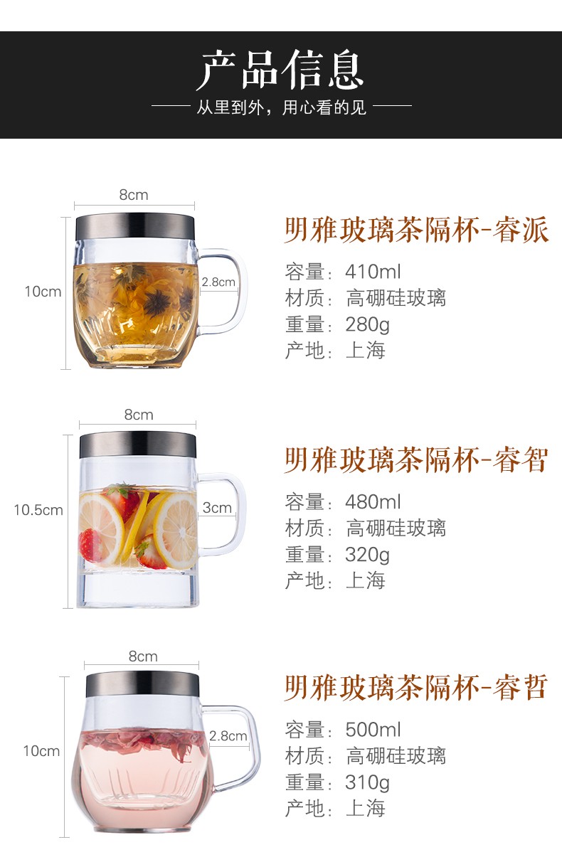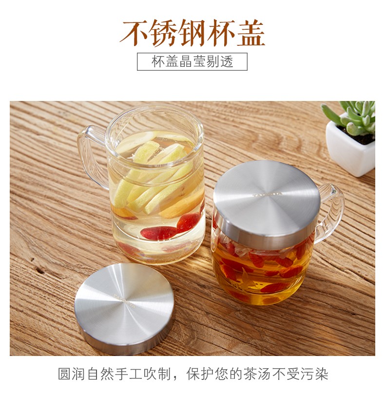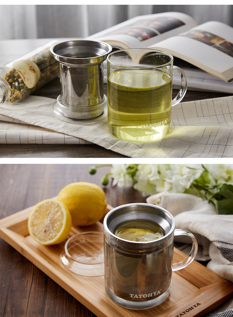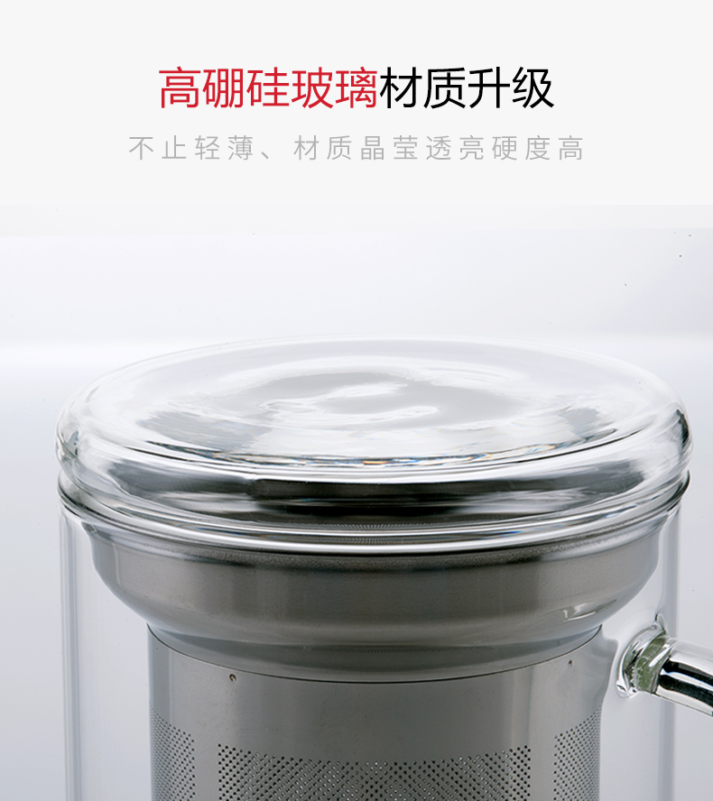 【6F】多样屋茶杯单层玻璃水杯带手柄 家用带盖茶水分离杯 有茶隔过滤杯子 高硼硅玻璃杯