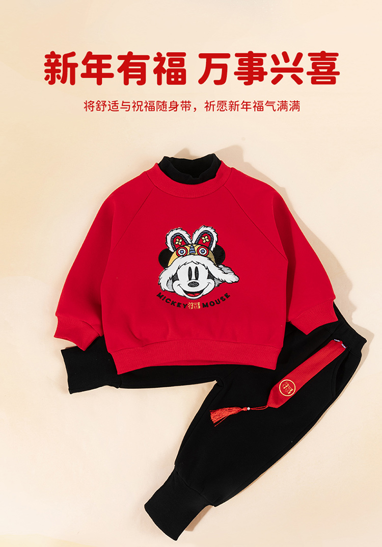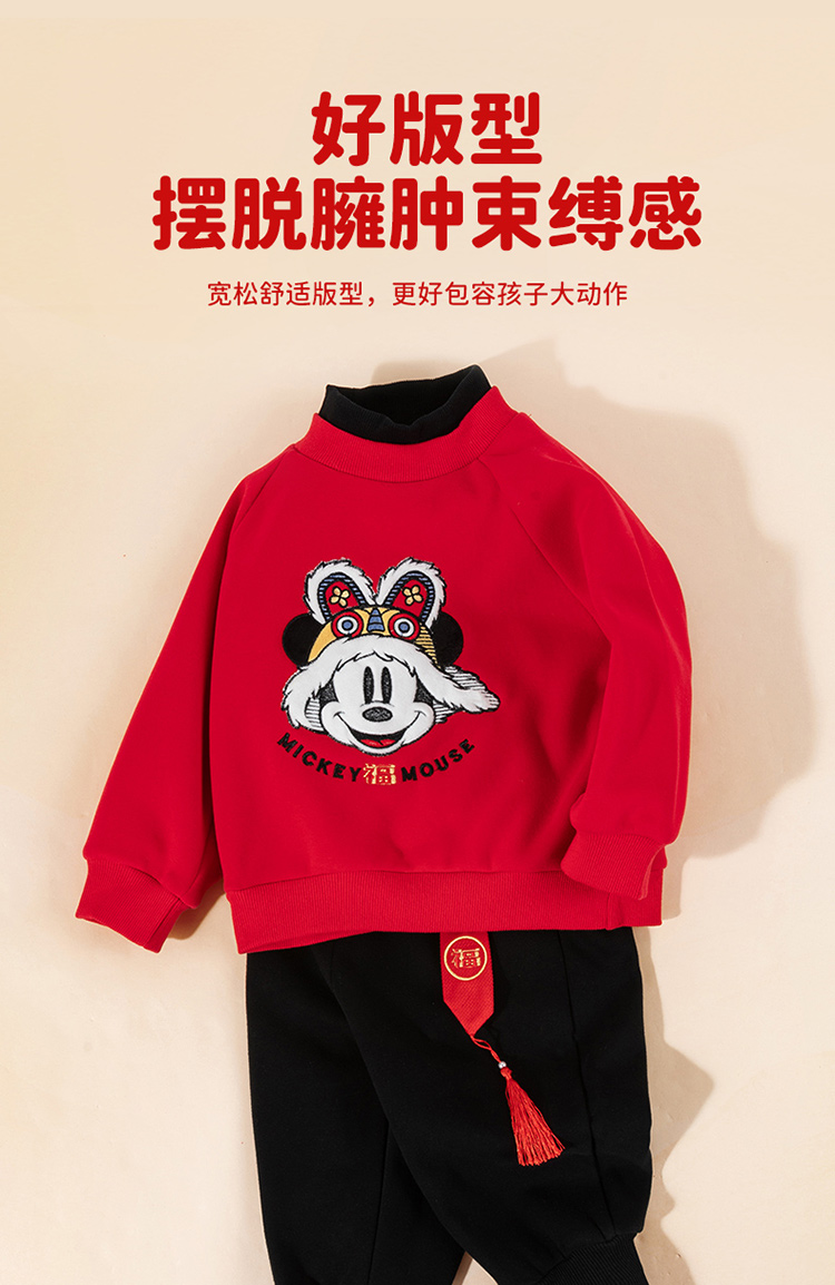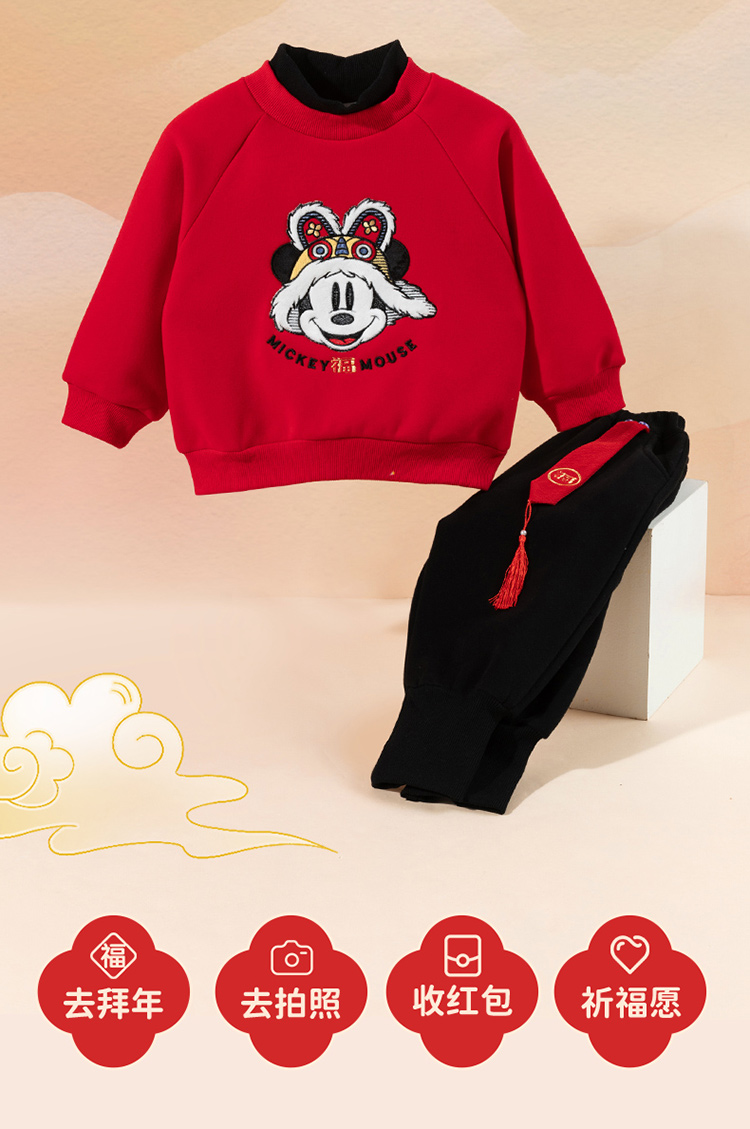 迪士尼宝宝童装男童米奇套头卫衣保暖长裤两件套秋冬季加绒卫衣套ZD1ET003