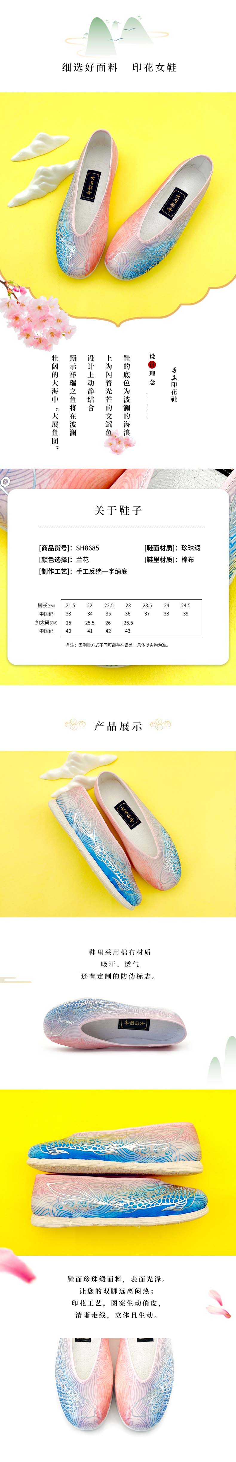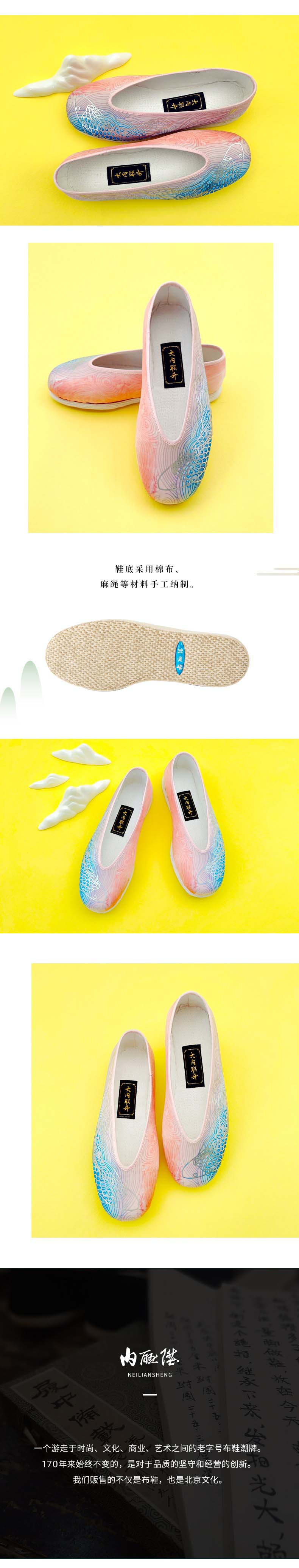 内联升女鞋单鞋千层底大内山海之文瑶波澜小元口布鞋SH8685