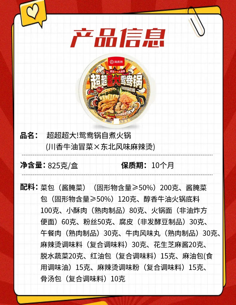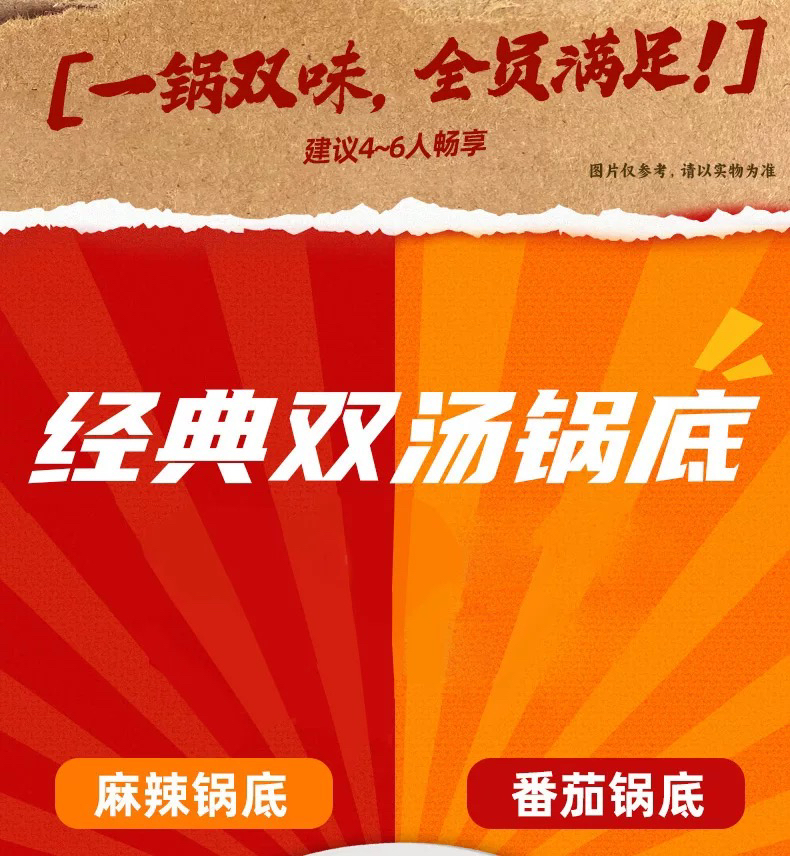 【BF】海底捞超大鸳鸯锅(川香牛油冒菜/东北风味麻辣烫 / 清油麻辣/浓香番茄)