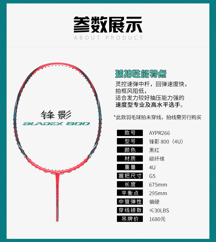 李宁 羽毛球拍 锋影800