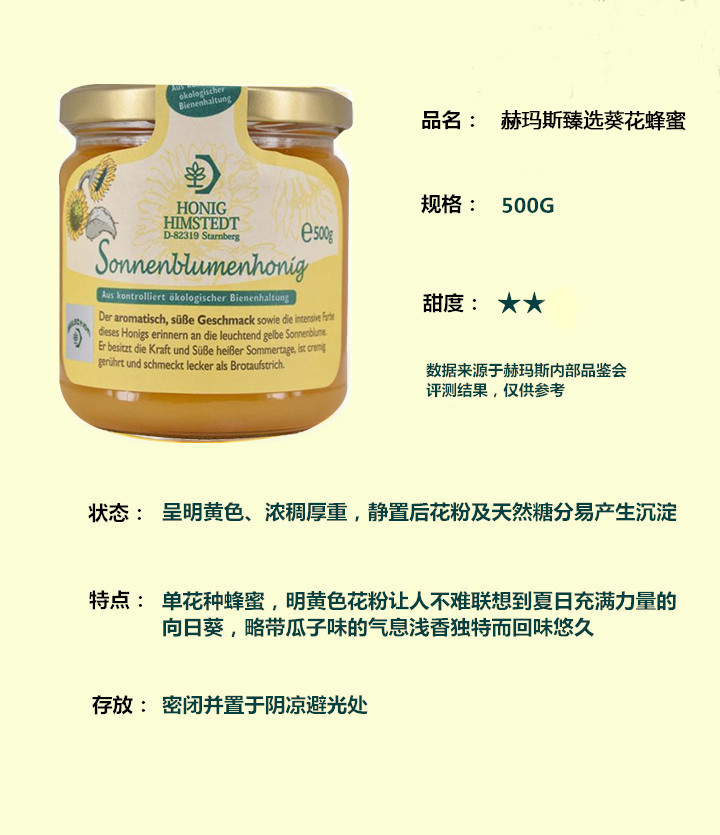 德国进口赫玛斯臻选葵花蜂蜜500克