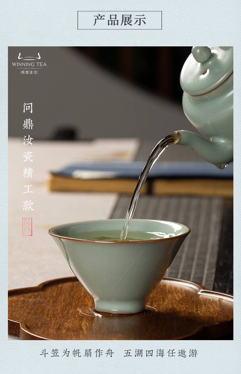 问鼎汝瓷鼎峰系列天青辛丑伴月杯