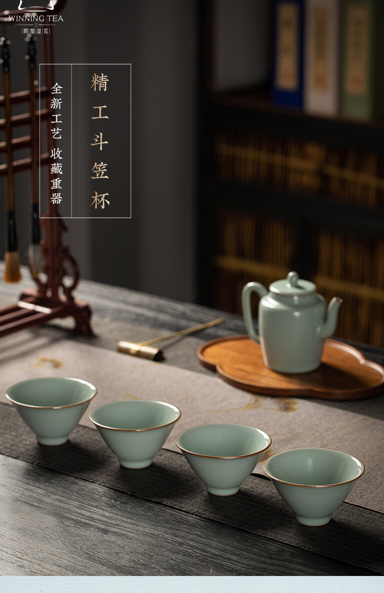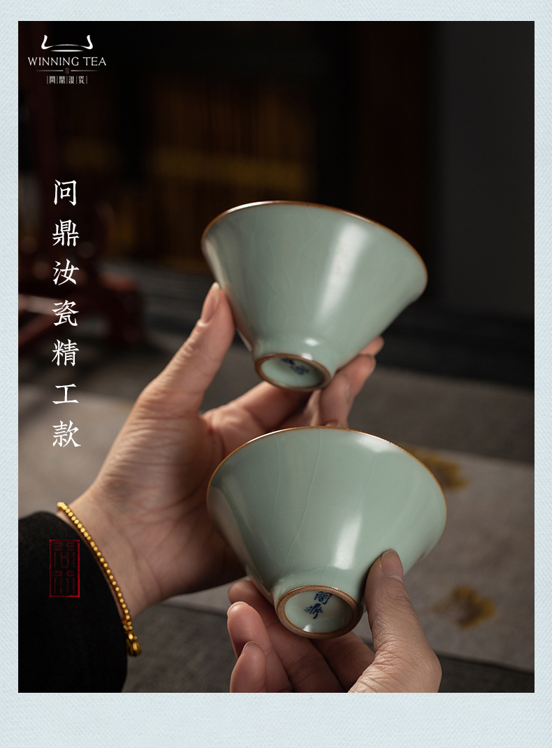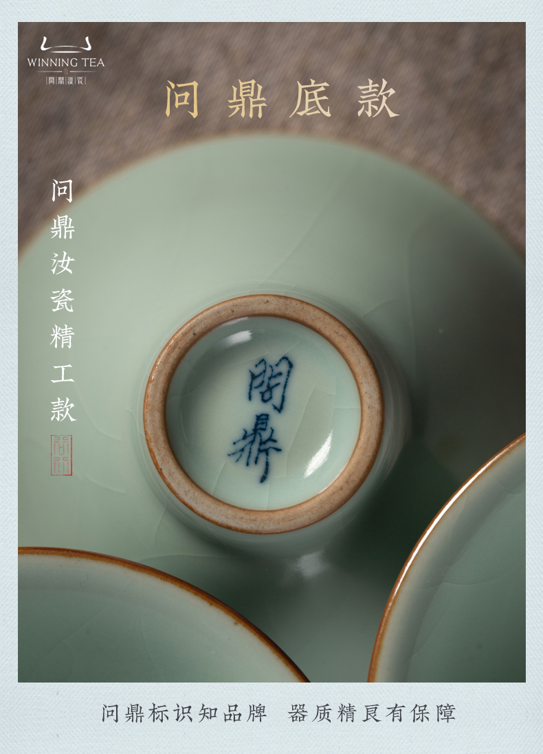 问鼎汝窑精工款小斗笠杯(手写问鼎底款)