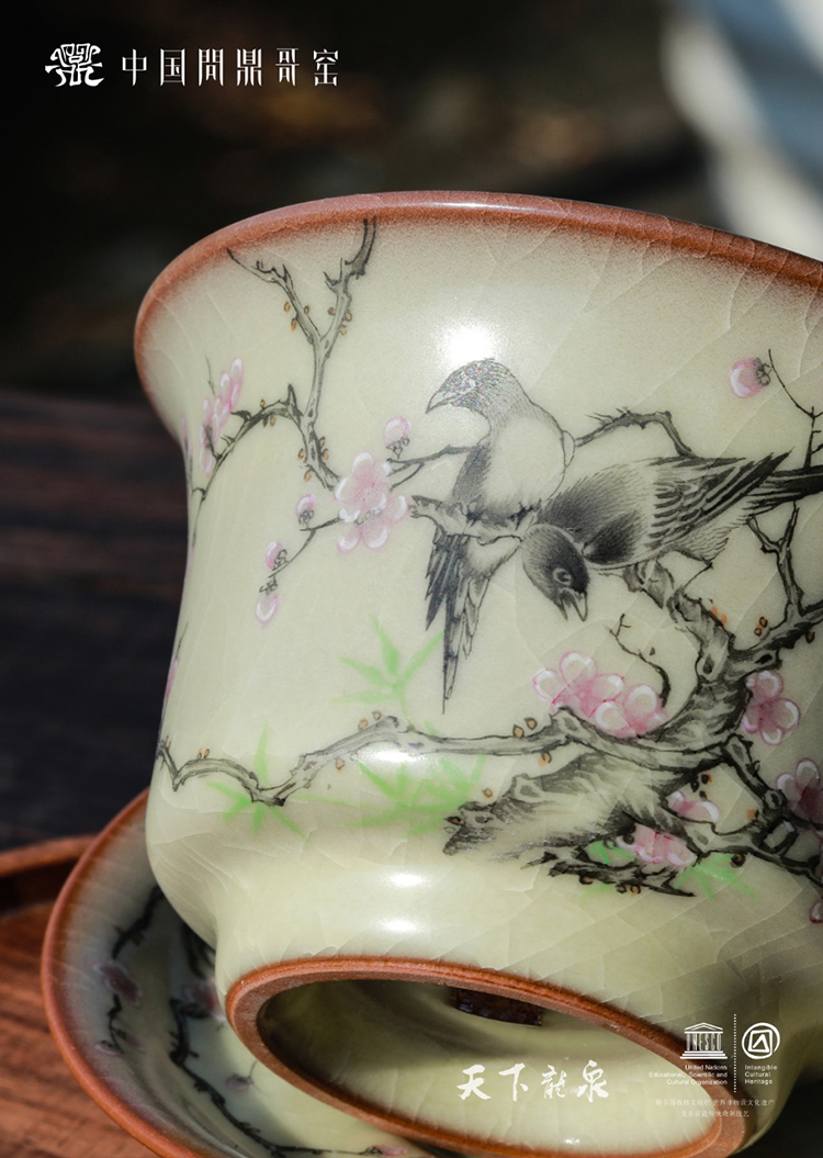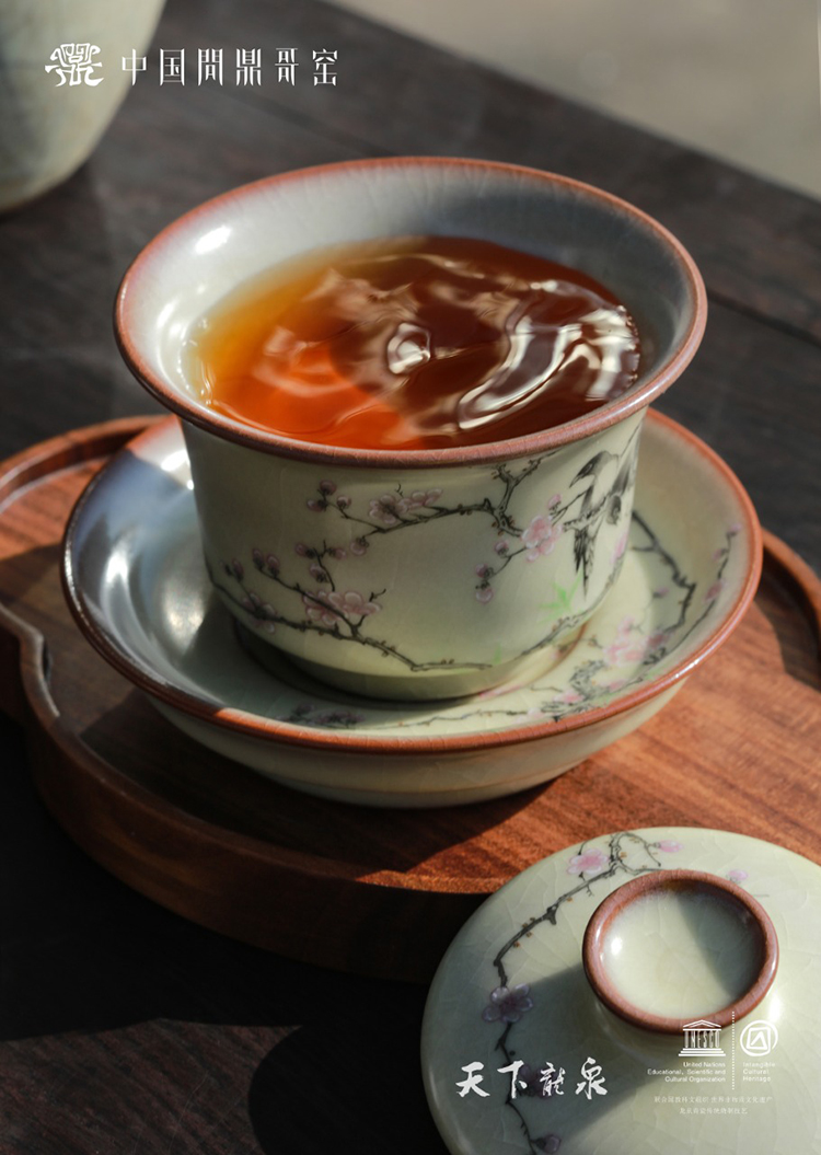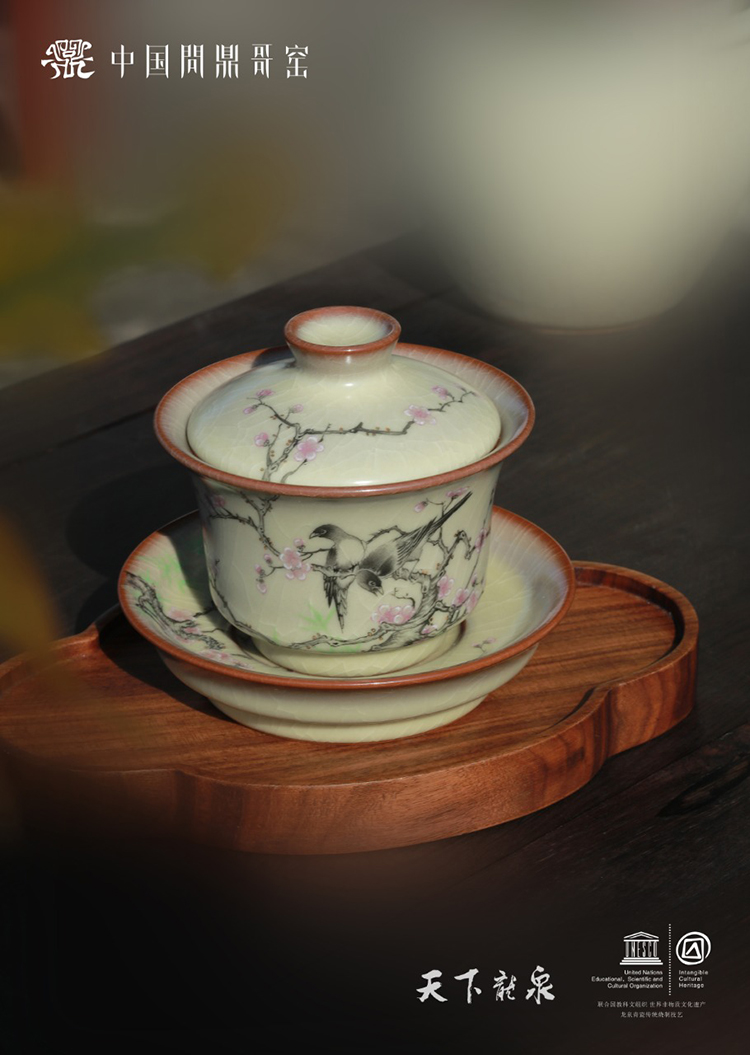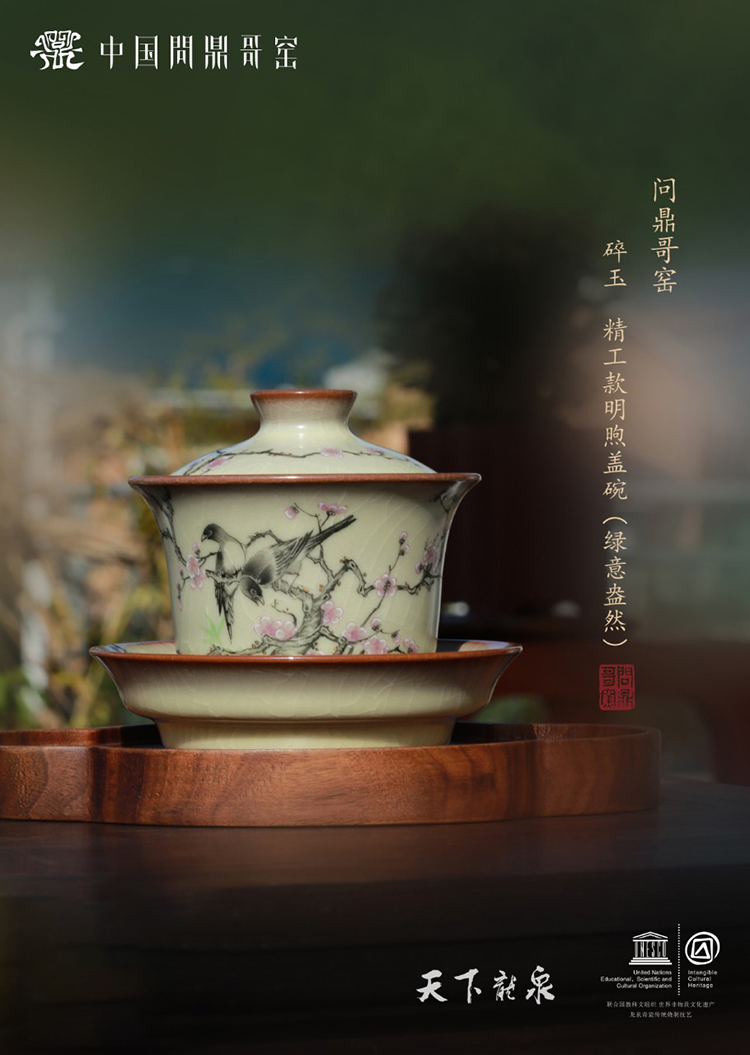 问鼎哥窑精工款明煦盖碗 (绿意盎然)