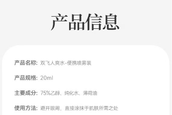 双飞人爽水 喷雾装20ml/卡