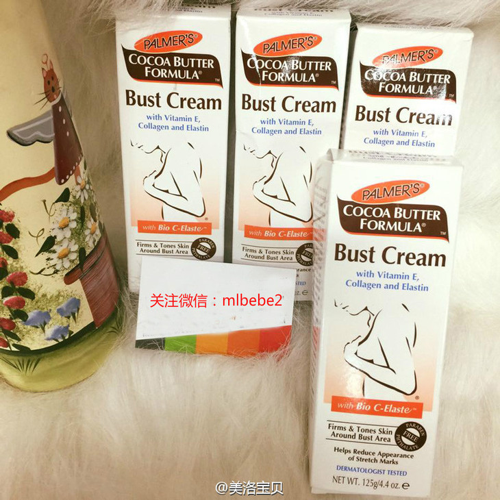 小S产后使用,结合了胶原蛋白和弹性纤维,添加了可可脂、牛油果和维他命E而成的胸部护理产品