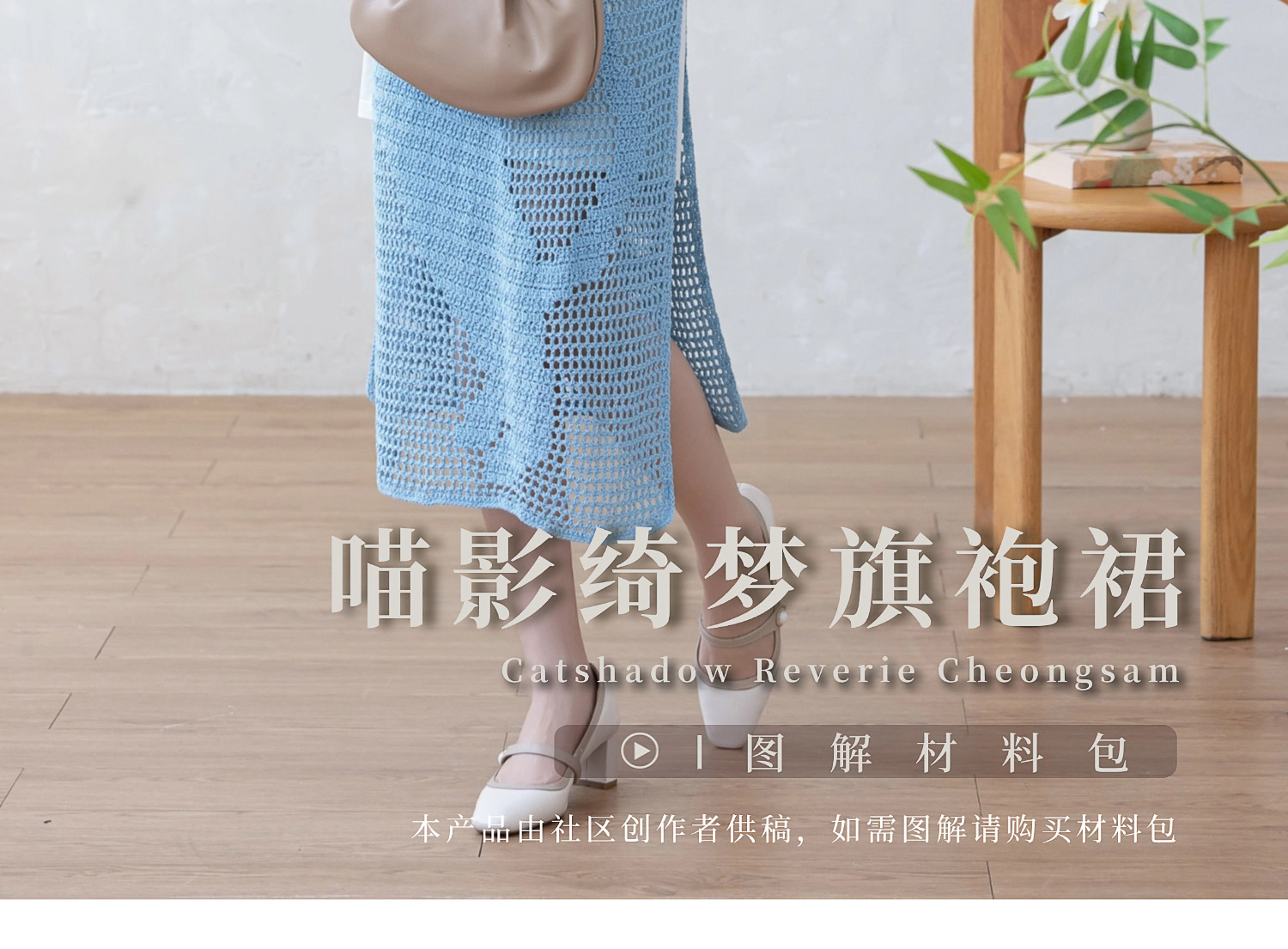 苏苏姐家喵影绮梦旗袍裙手工DIY亚麻蕾丝钩针毛线团材料包
