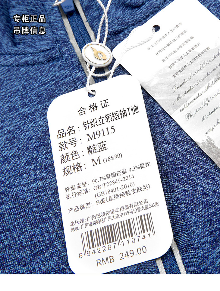 9115巴特侬 butnon 夏季新品运动t恤男短袖立领拉链针织体恤速干排汗跑步训练运动服