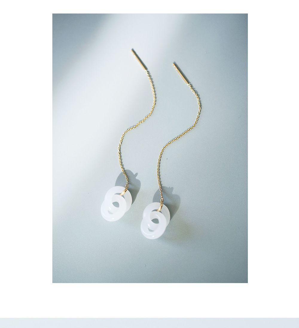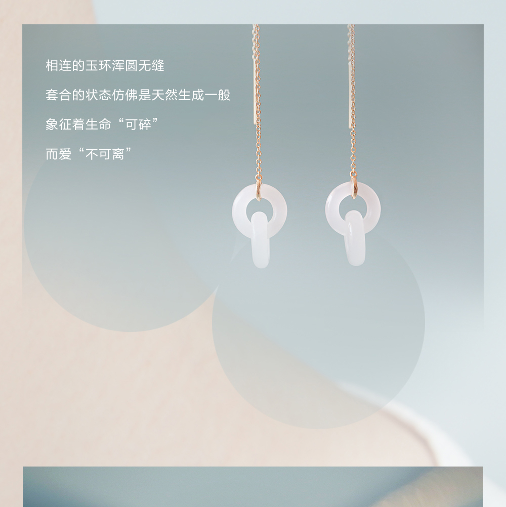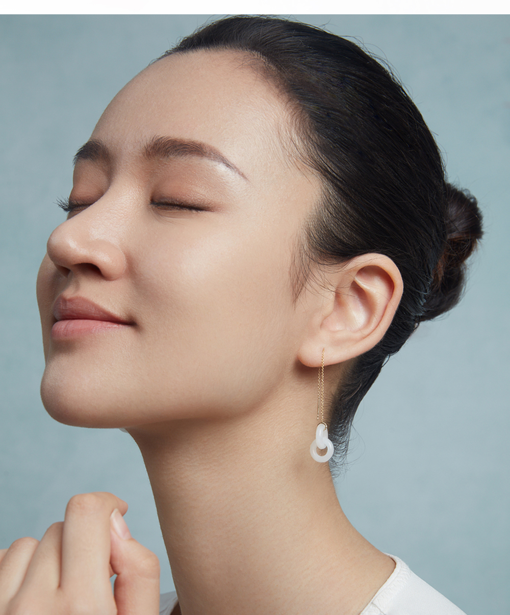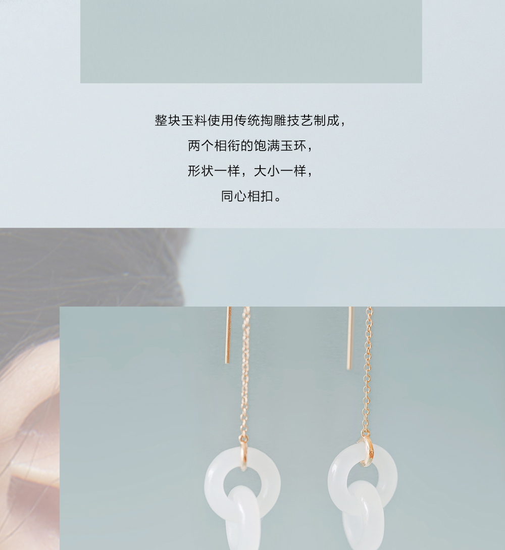 Qinny|寰宇同心|18K金和田玉同心环 天然白玉黄金耳线