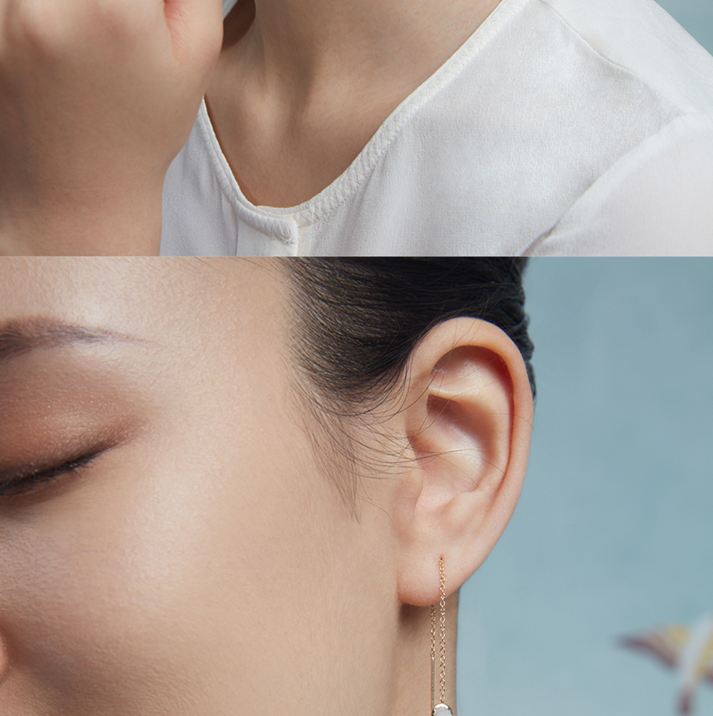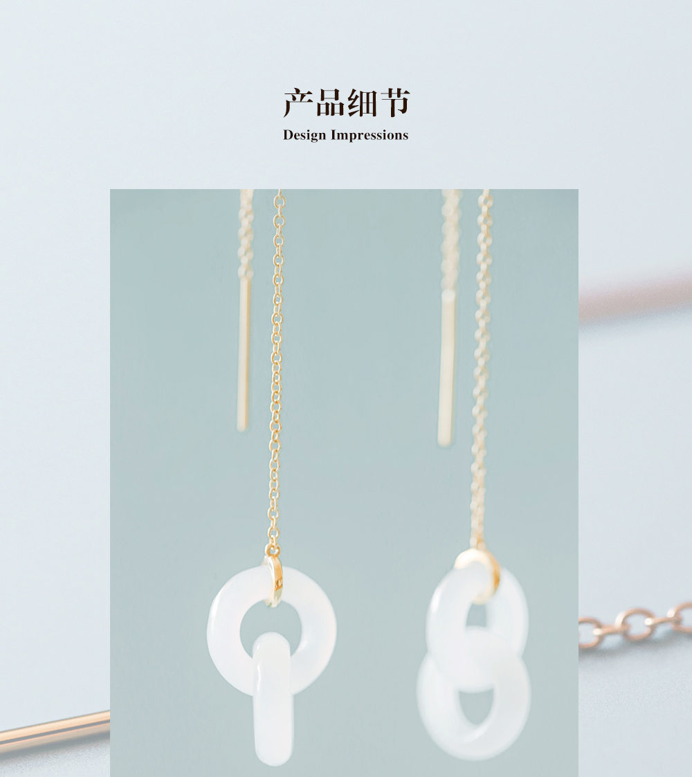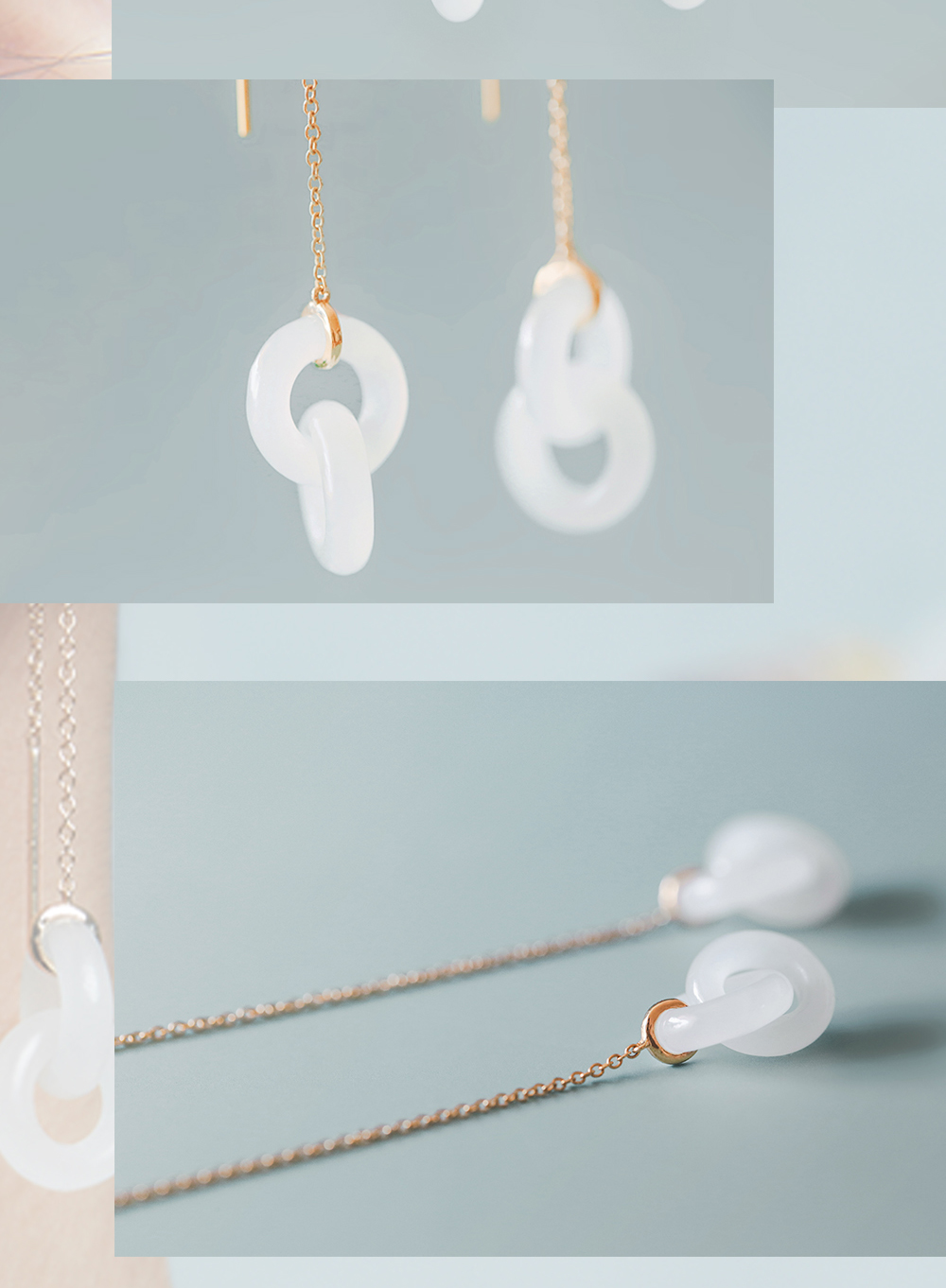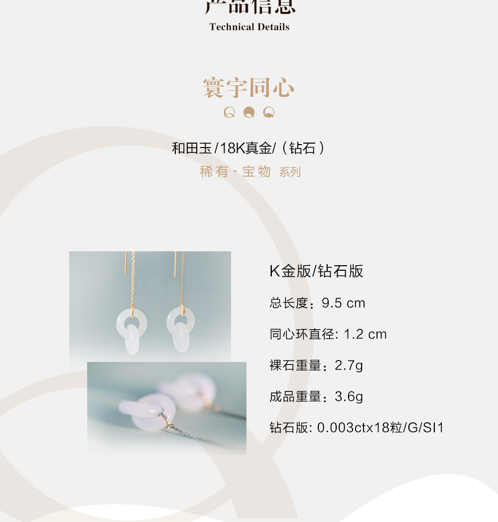Qinny|寰宇同心|18K金和田玉同心环 天然白玉黄金耳线