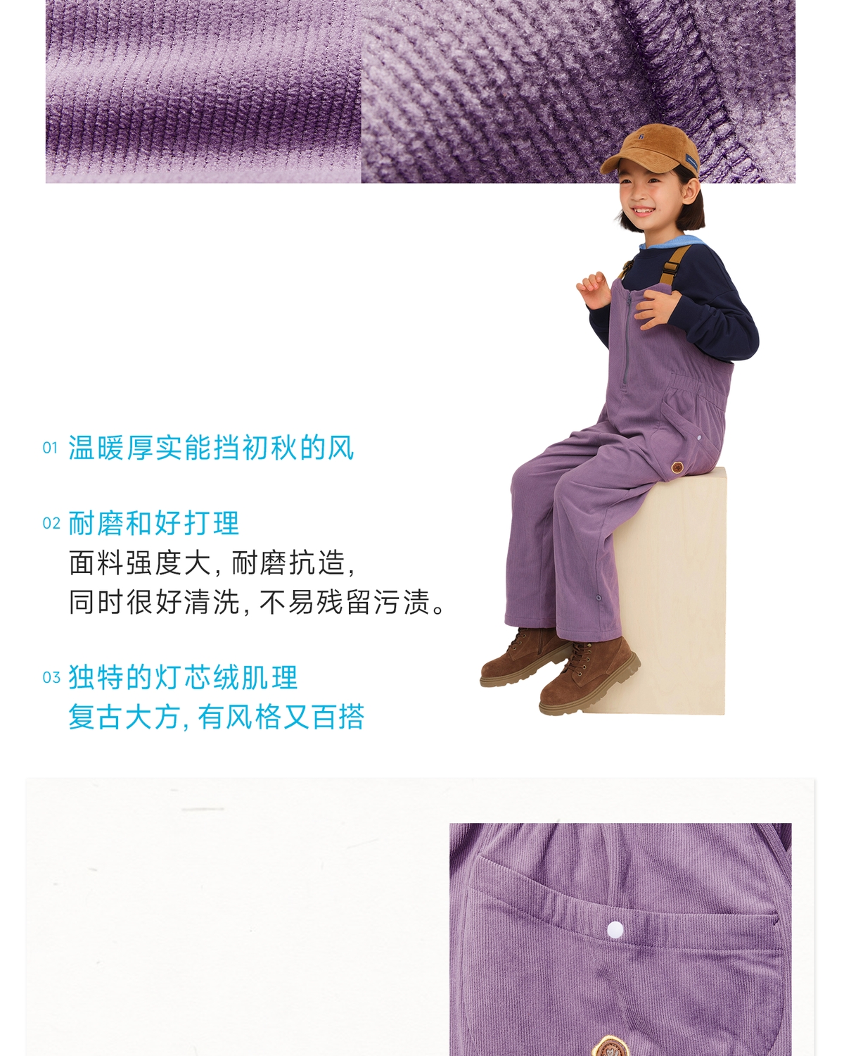 【秋Vol.2】allblu幼岚【灯芯绒复古背带裤】女童裤子A类25秋新款柔软耐磨ZY