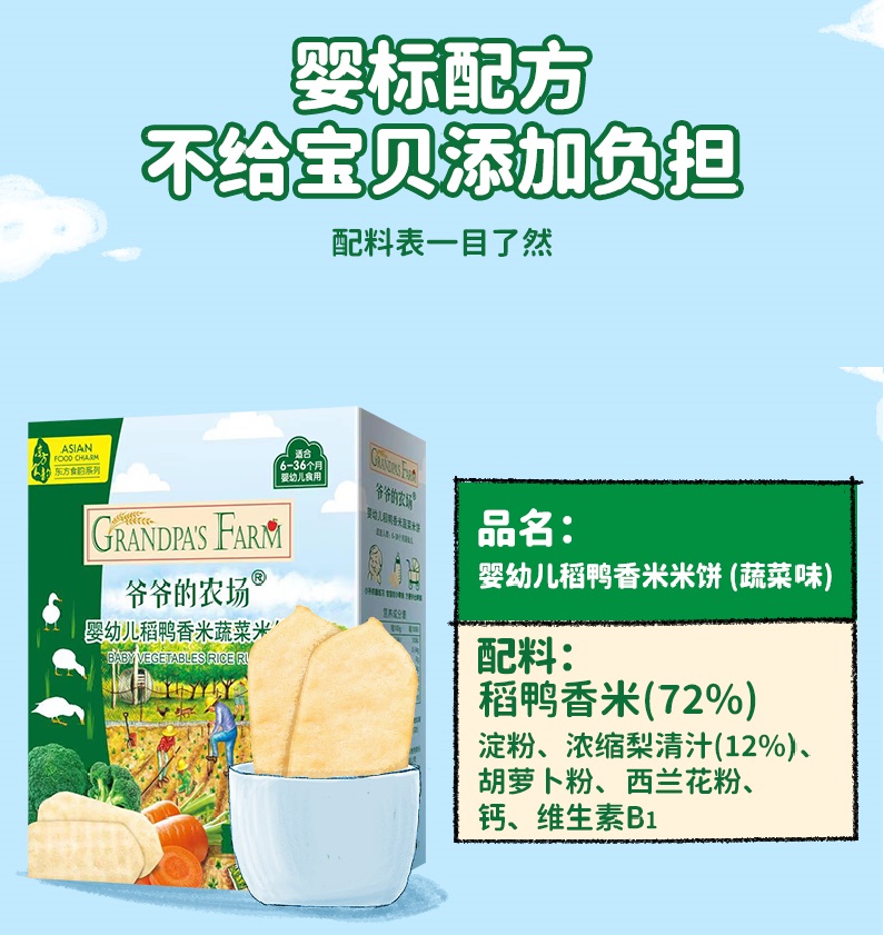 爷爷的农场婴幼儿稻鸭香米(原味/水果)米饼32g