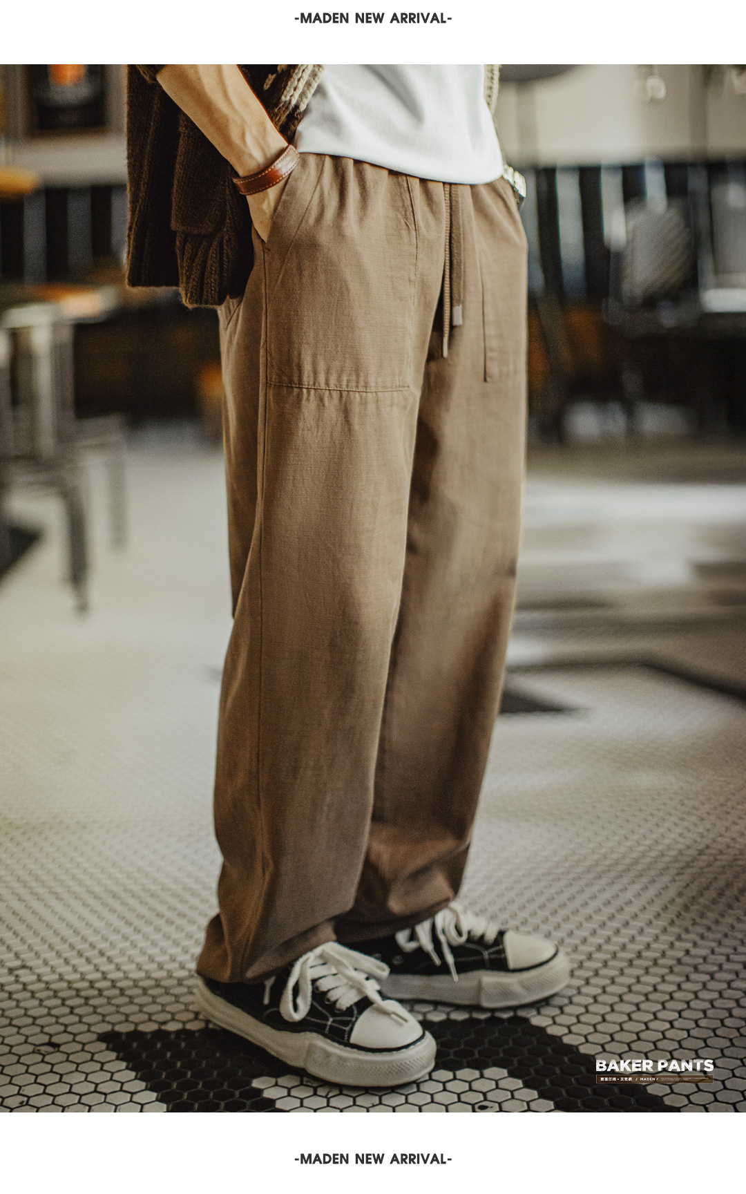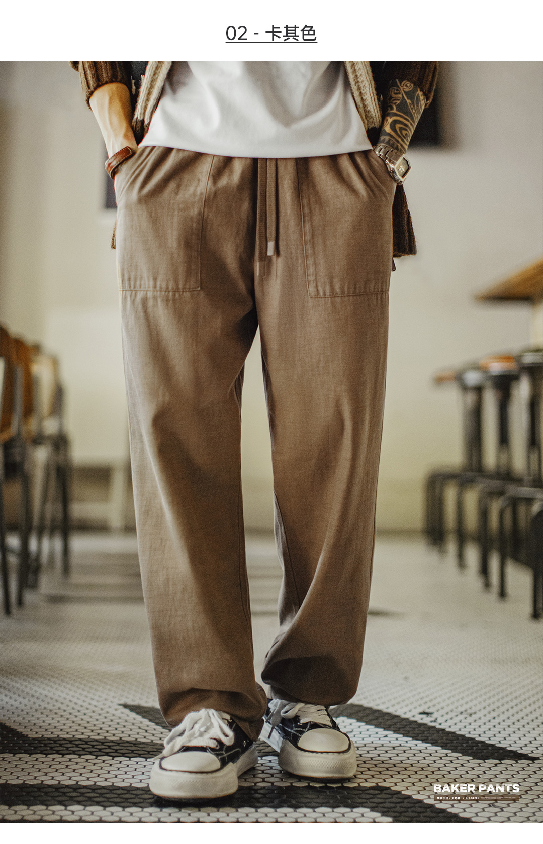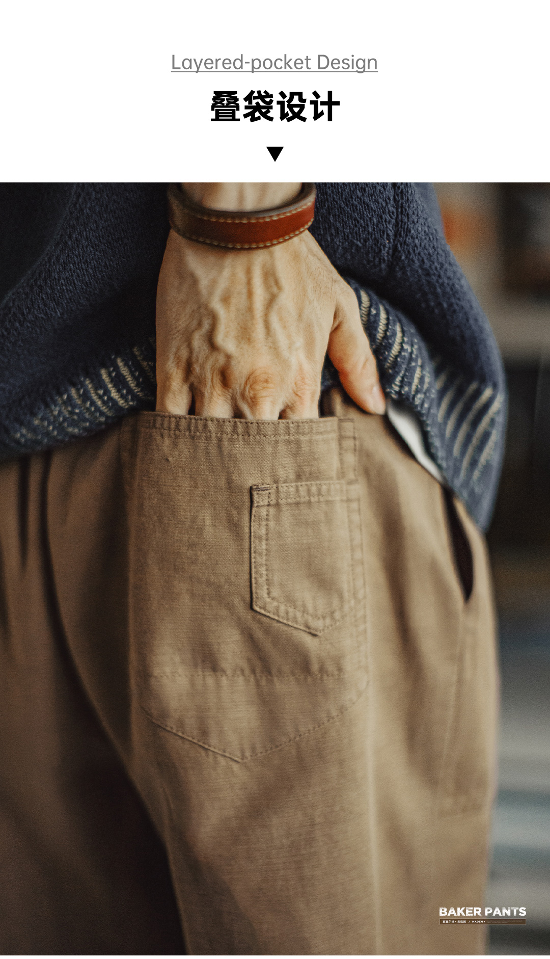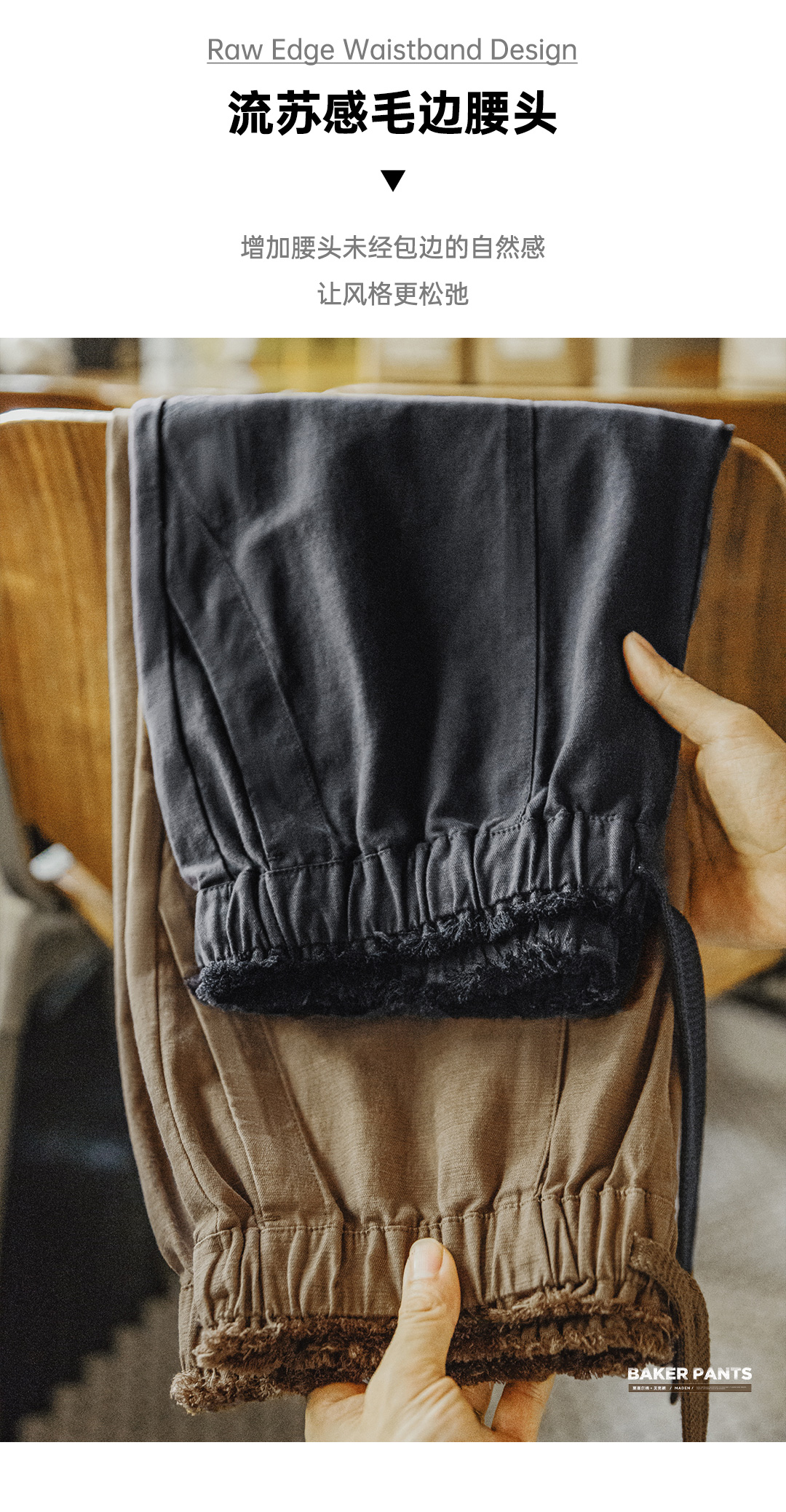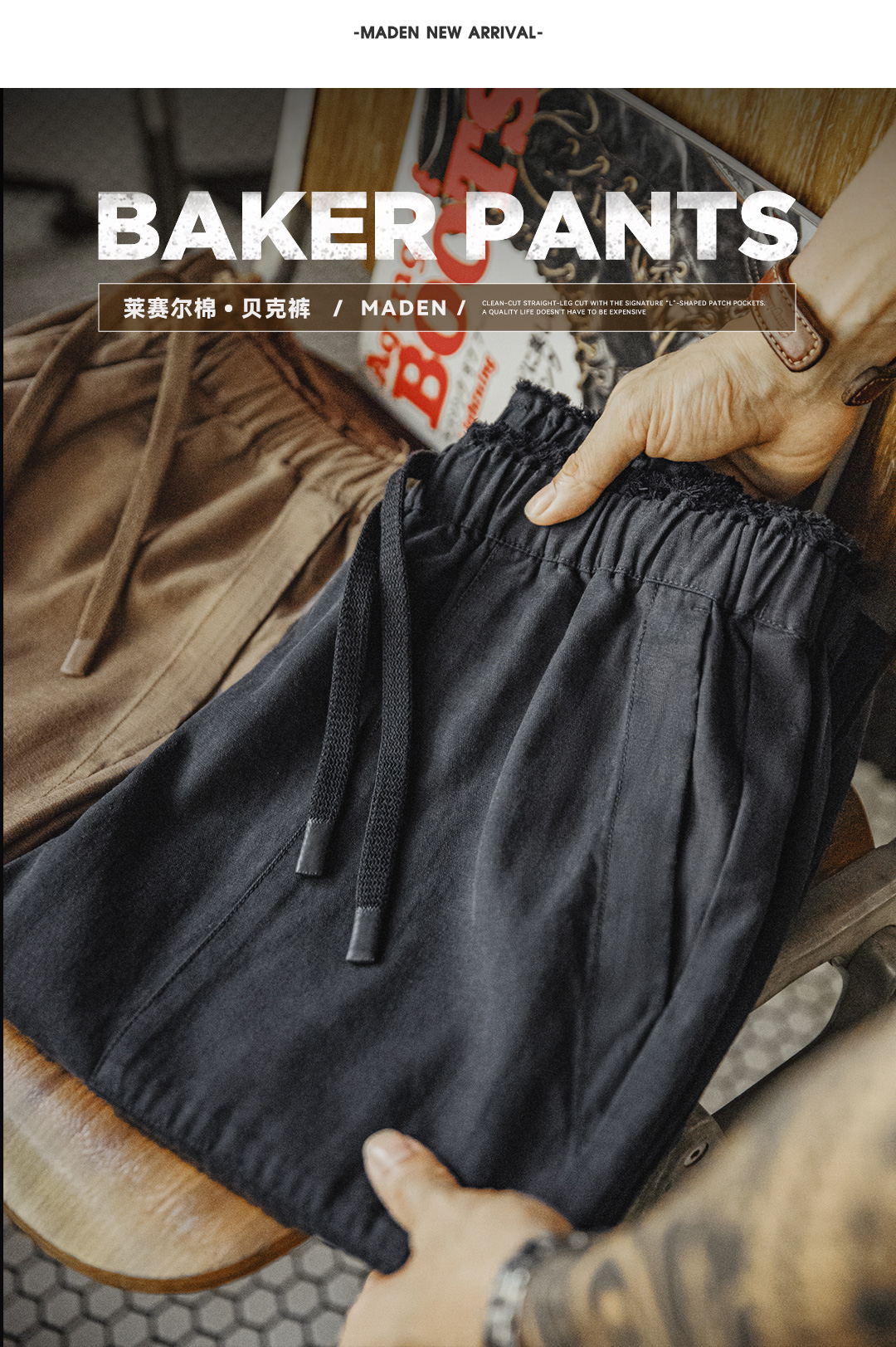 马登工装美式复古莱赛尔天丝贝克裤休闲束脚直筒藏青色长裤子男秋
