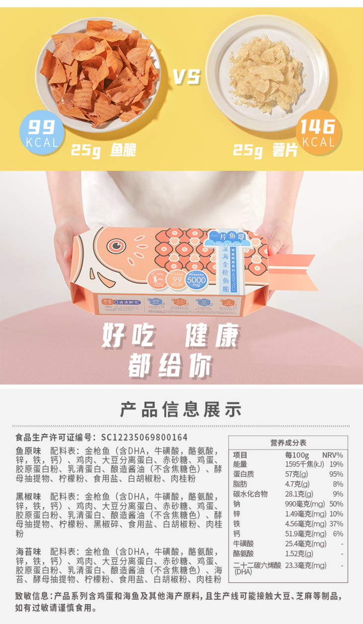 【深海金枪鱼脆】不加一滴油 低脂高蛋白0添加鱼脆 网红低卡零食 口感鲜美薄脆 健康非油炸 75g多口味多吃法盒装