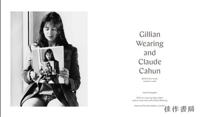 在这本书中,与Wearing密切合作的莎拉·豪盖特 (Sarah Howgate) 研究了两位艺术家的自画像作品,研究了文化、历史、政治和个人背景如何影响他们对相似主题的解释。该书包括 100 多部重要作品的复制品,分为主题部分,包括艺术演变、表演、化妆舞会和 Momento Mori,并附有评论。最后一部分展示了 Wearing 的新作品:与 Cahun 的“(某种)合作”。这本书还包括 Howgate 对 Wearing 的揭示性采访,以及作家兼策展人 Dawn Ades 对 Cahun 的启发性文章。