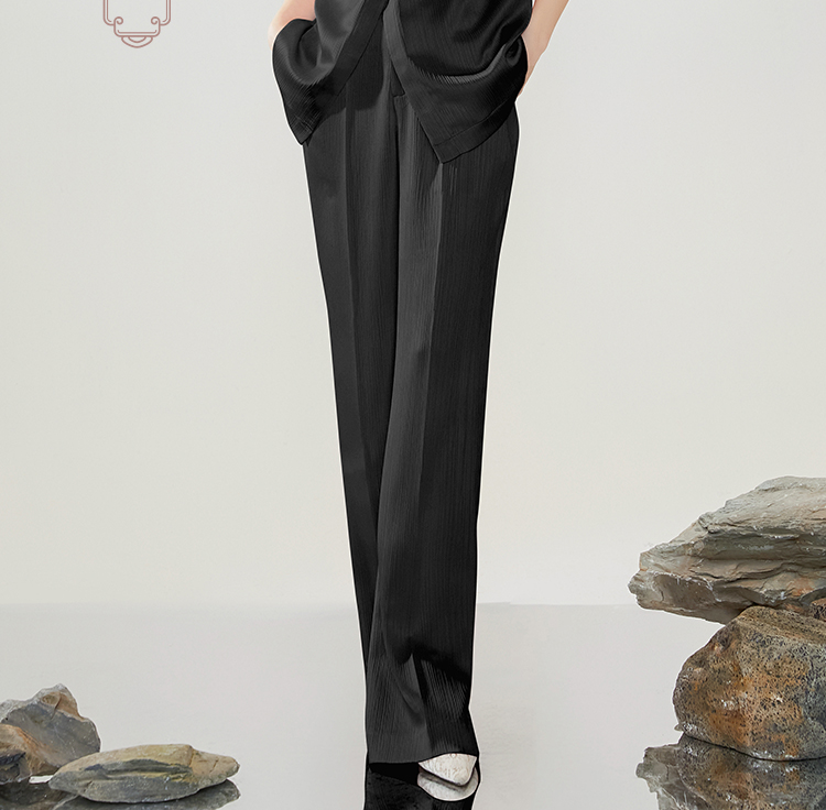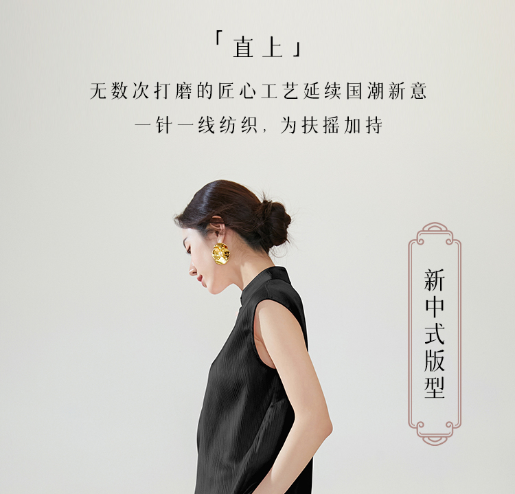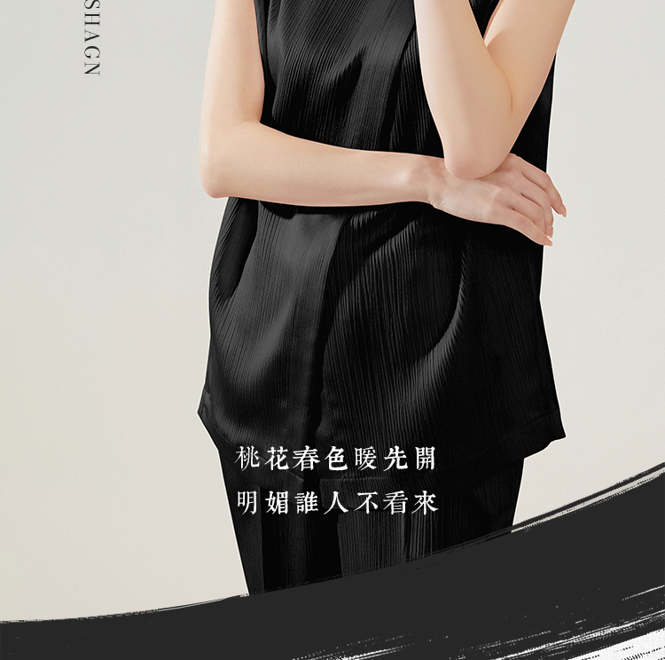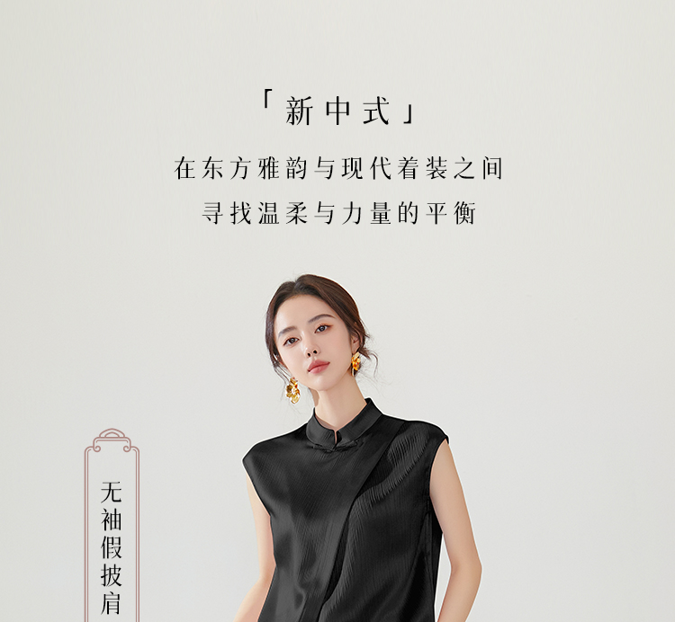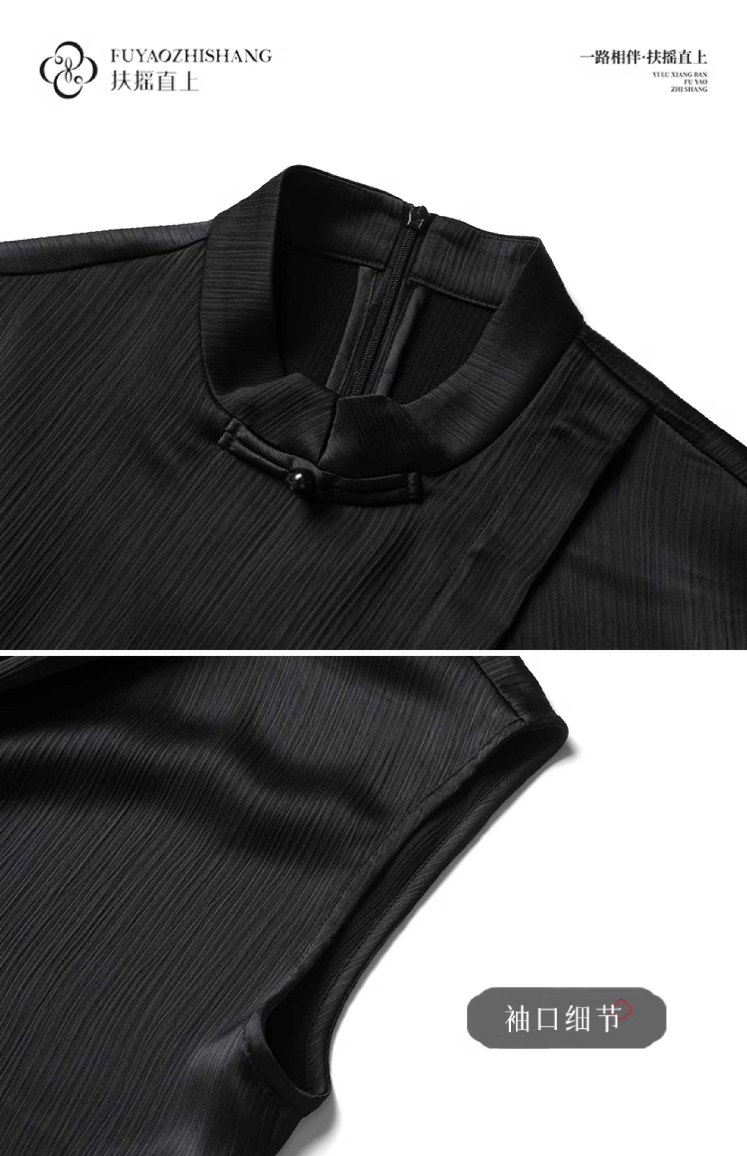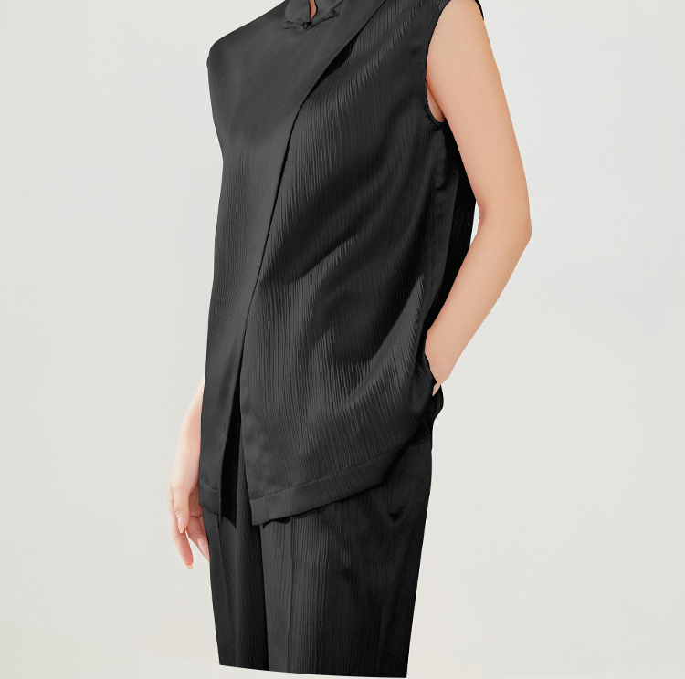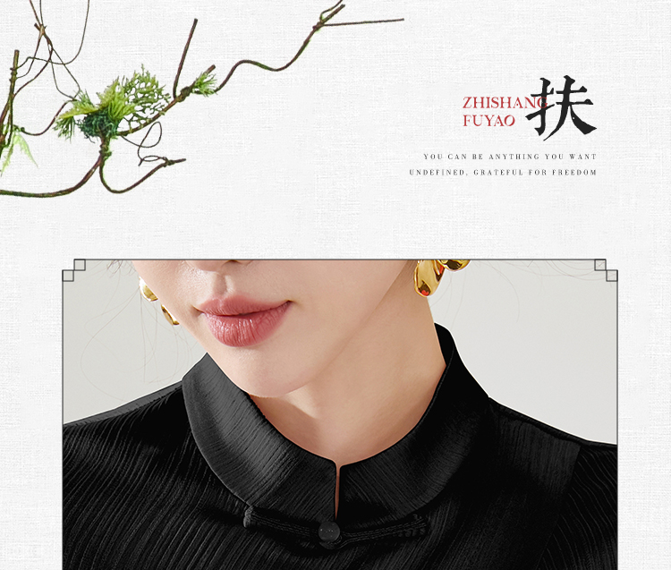 FUYAO扶摇 新中式国风套装女夏季薄款立领衬衫黑色时尚减龄两件套