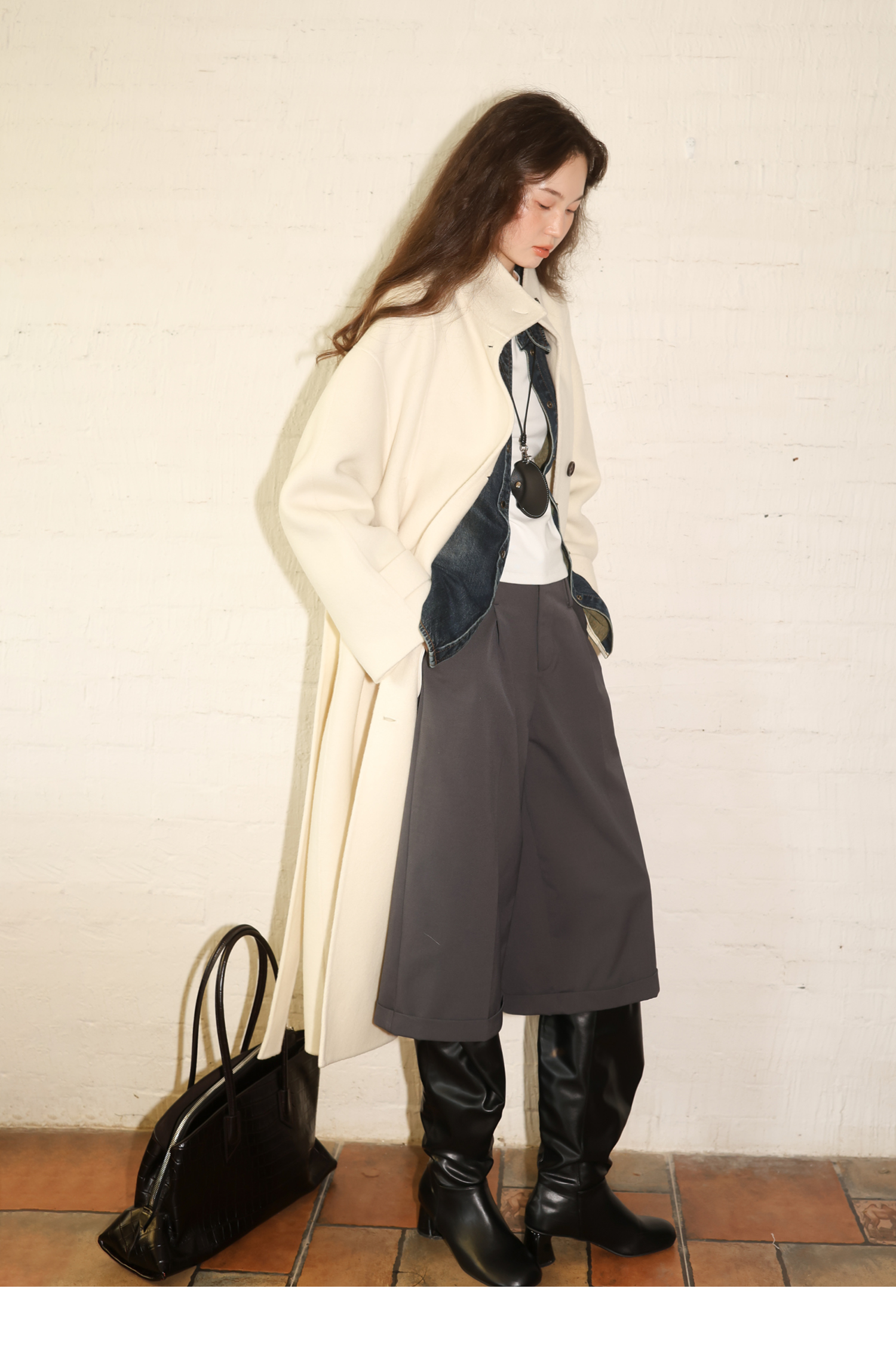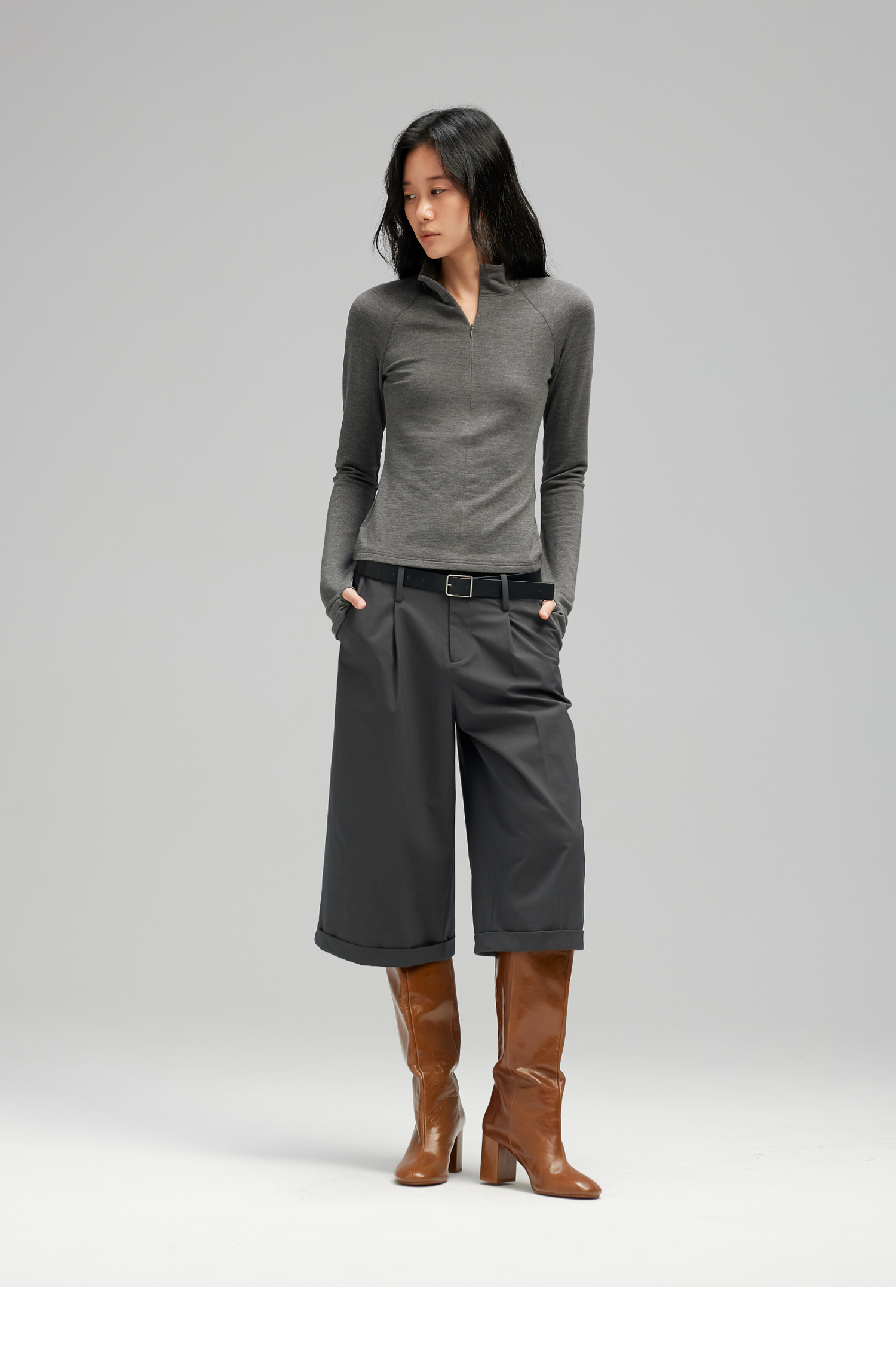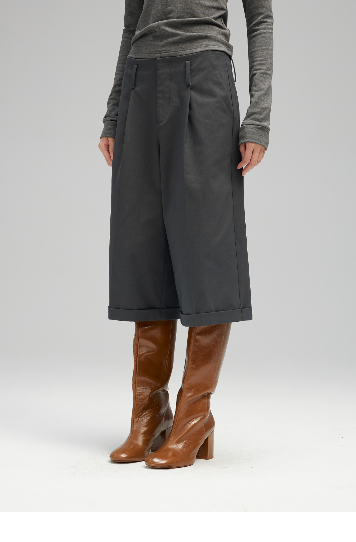 素舶 精纺羊毛透气保暖极简老钱风直筒翻边七分靴裤