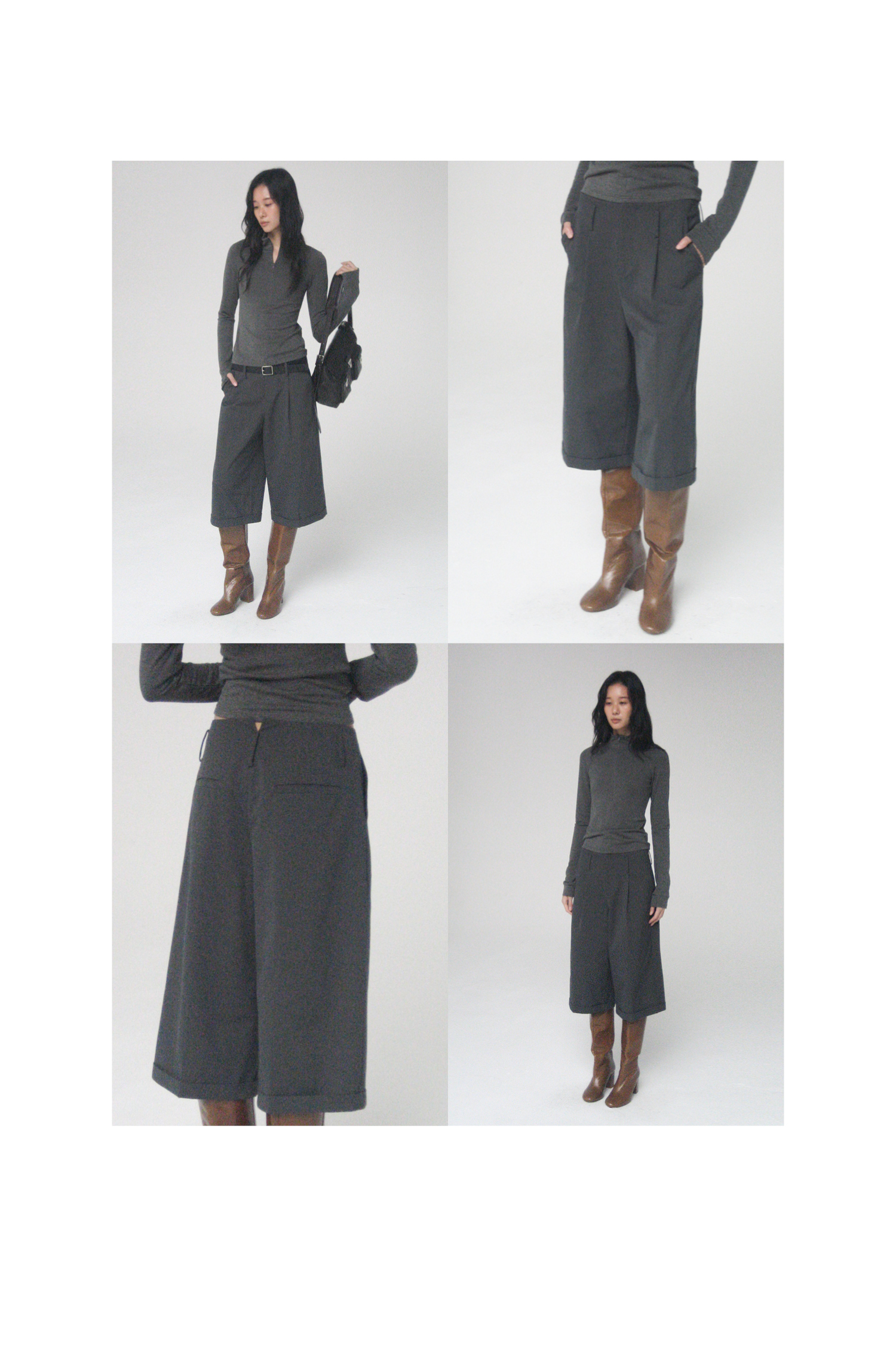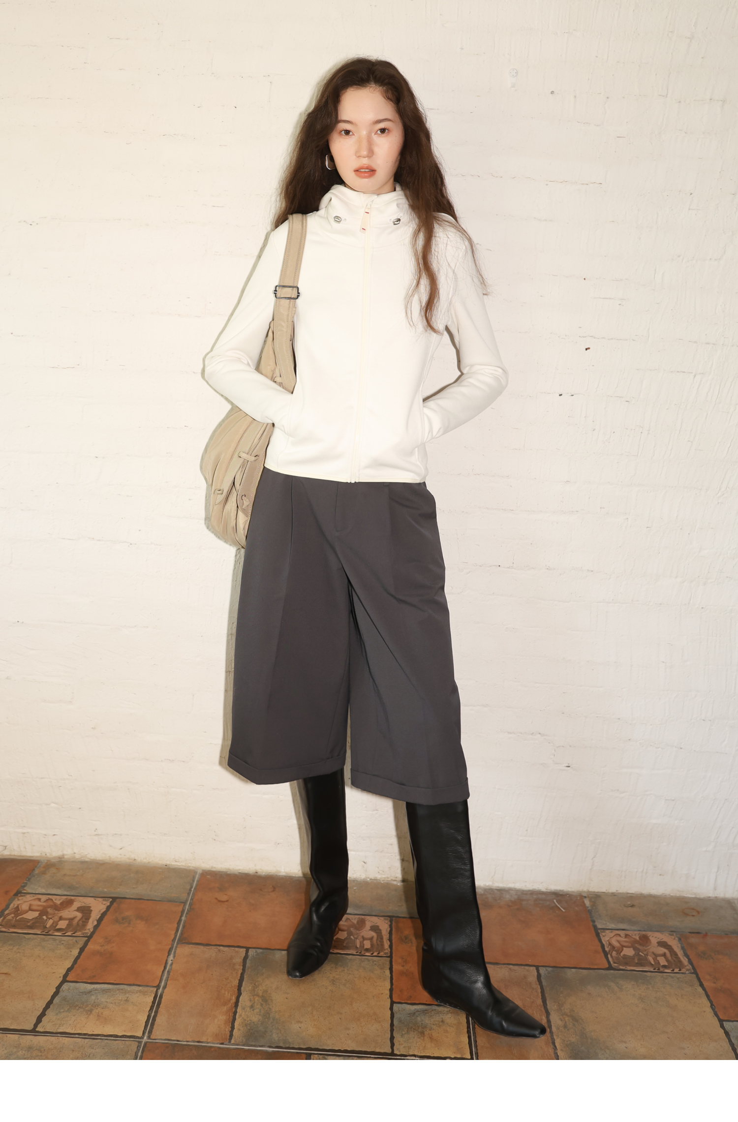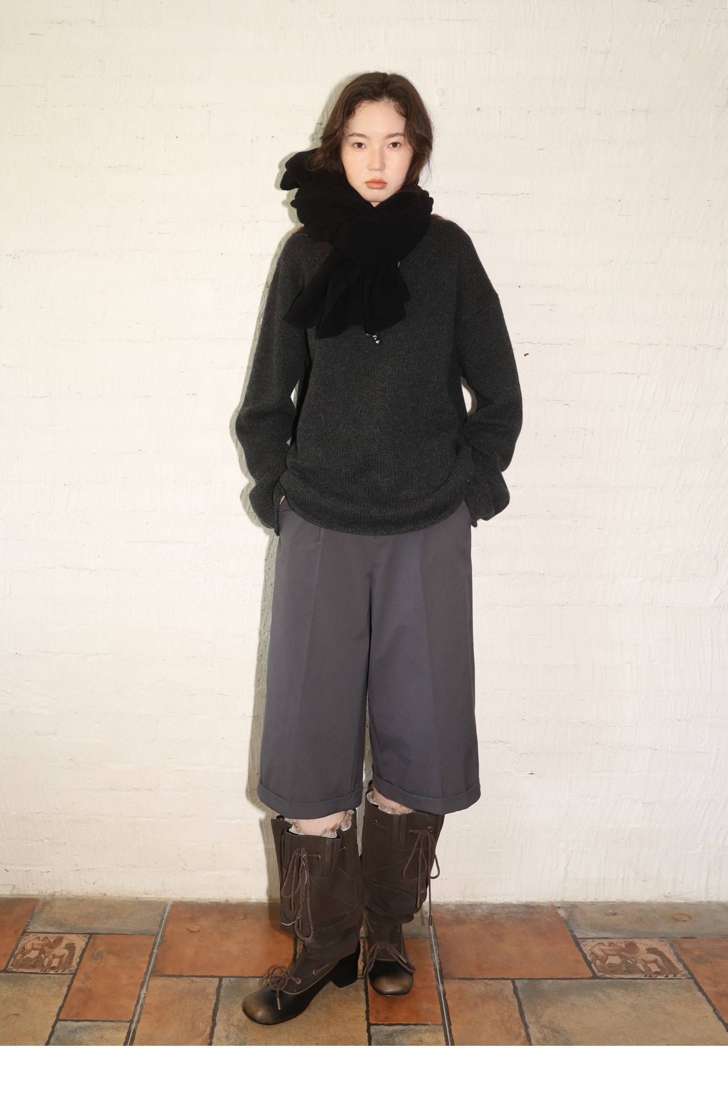 素舶 精纺羊毛透气保暖极简老钱风直筒翻边七分靴裤