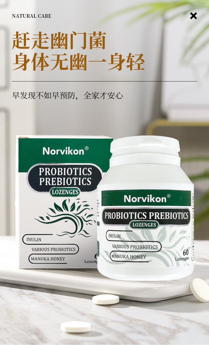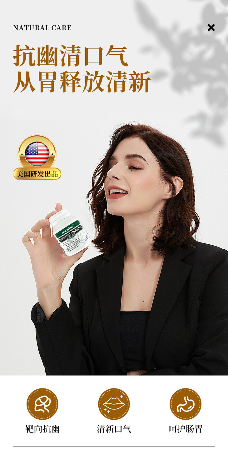 Norvikon清幽片,美国进口,幽螺克星,保护肠胃,满口清香,60粒/瓶