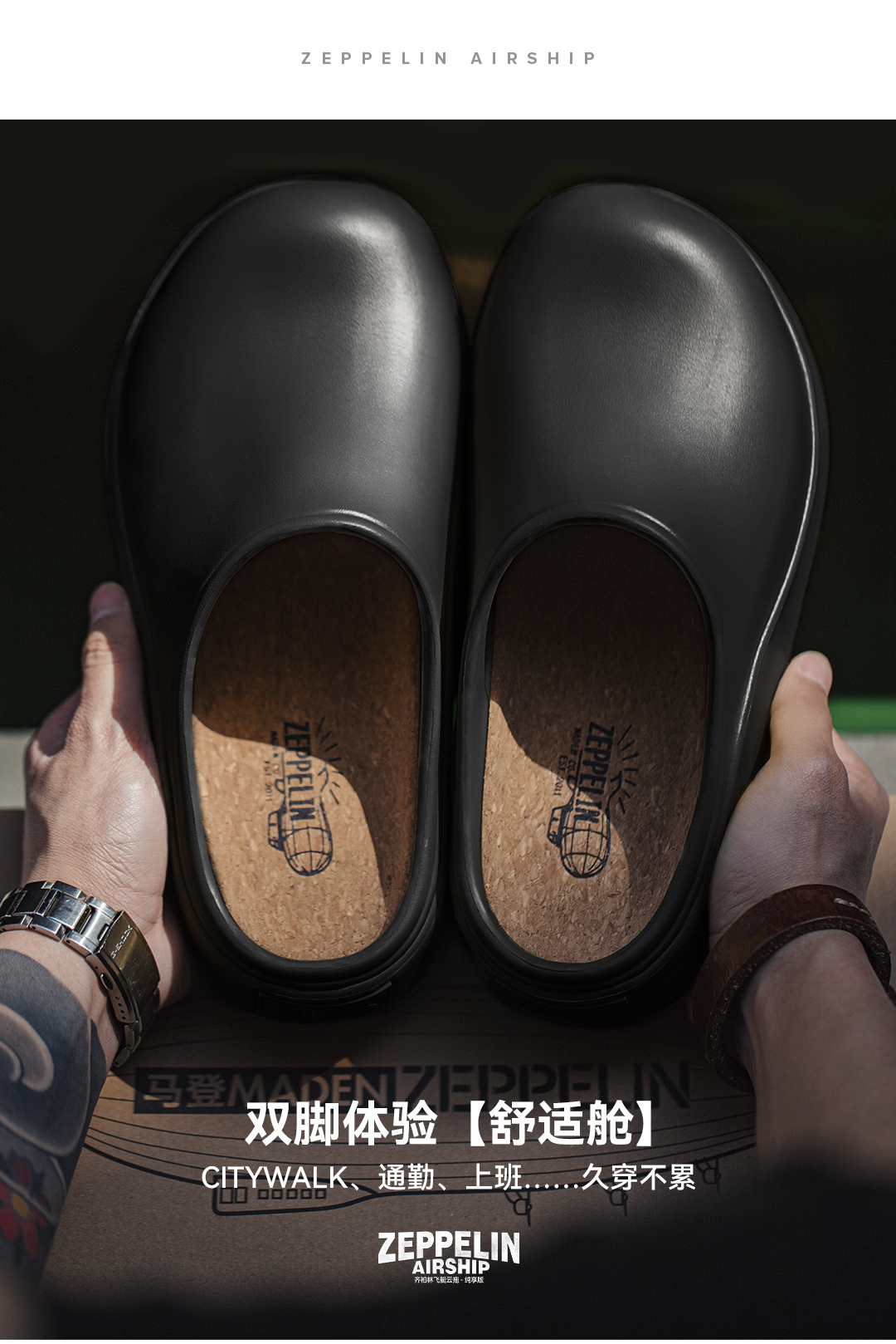 马登洞洞鞋男夏2025新款厚底厨师鞋涉水半包头拖鞋户外穿沙滩凉拖