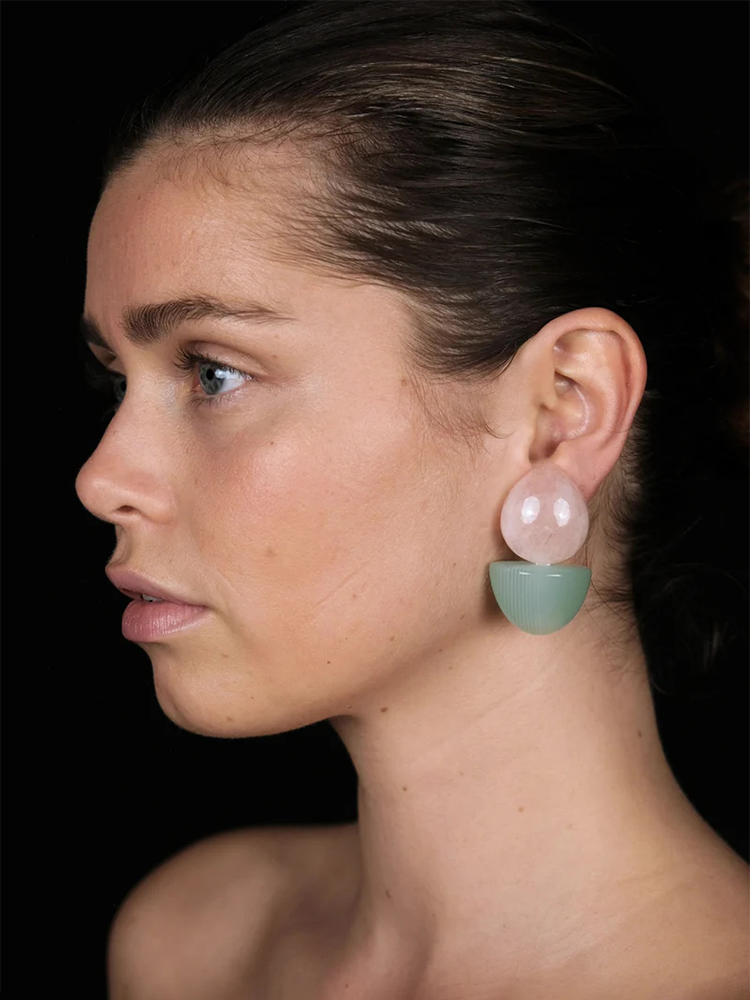 订购8周到|MONIES-OOAK-方解石 玫瑰石英 耳夹(无需耳洞)[丹麦设计师]
