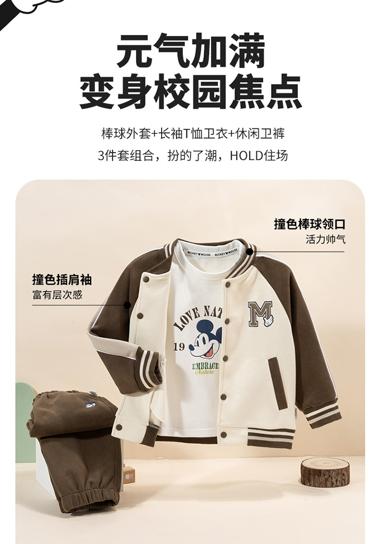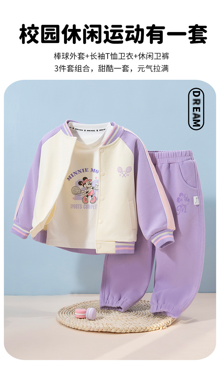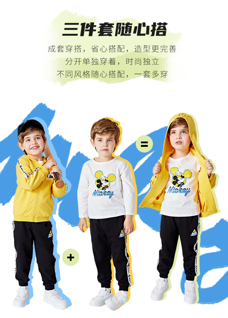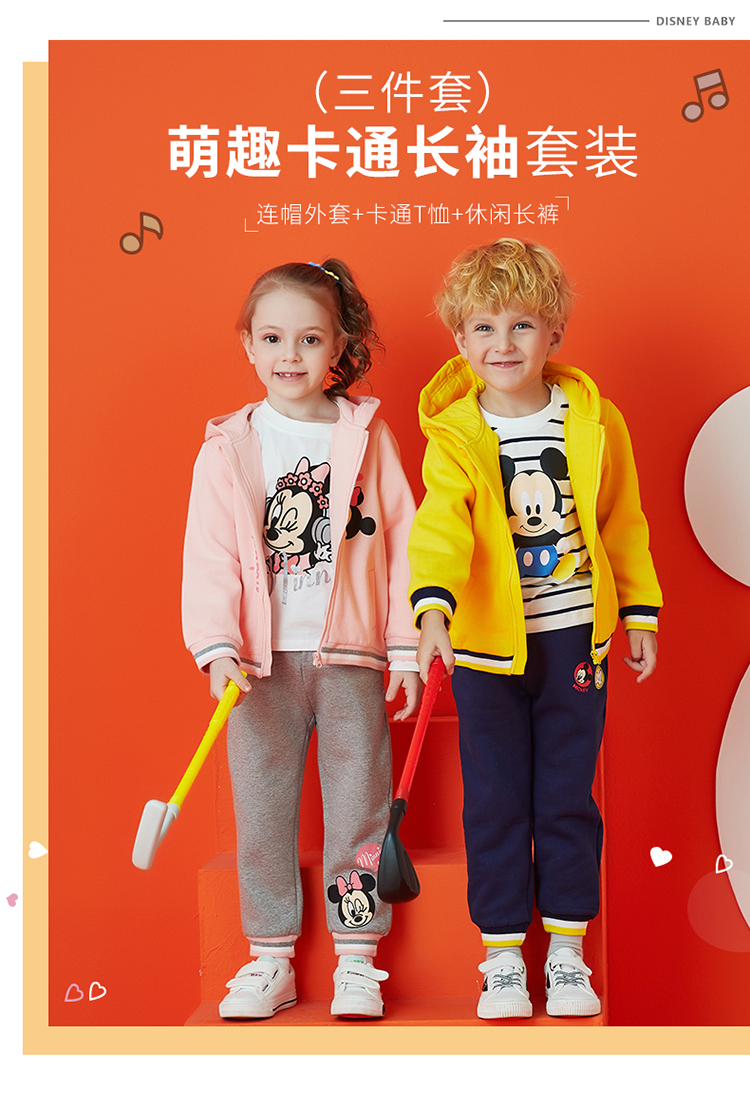 【迪士尼Disneybaby正品3套装】男女童春秋套装3件套