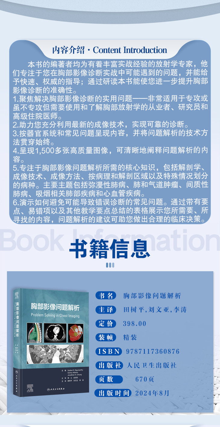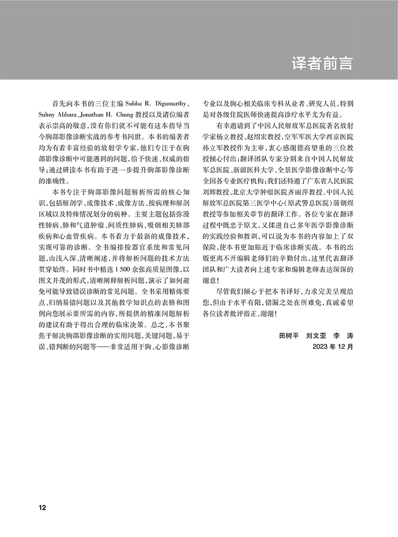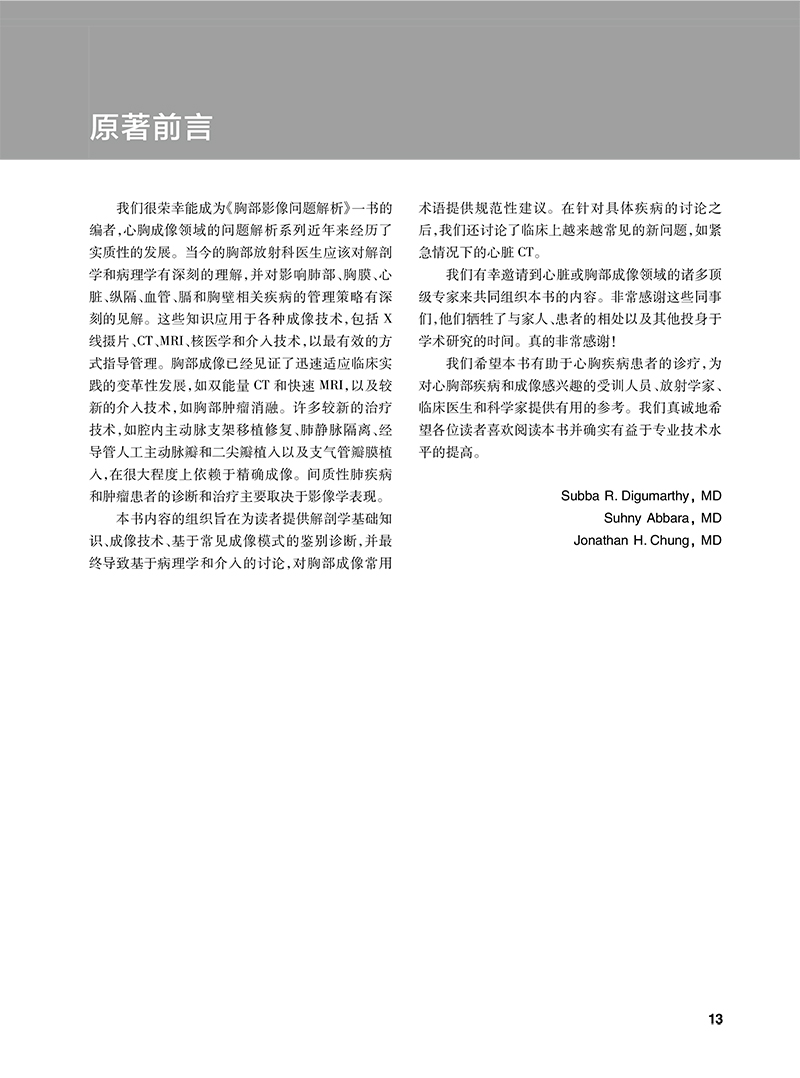 1 聚焦解决胸部影像诊断的实用问题——非常适用于专攻或虽不专攻但需要使用和了解胸部放射学的从业者、研究员和高级住院医师。