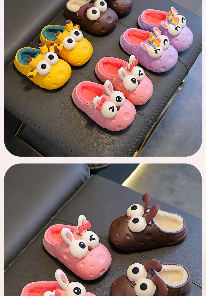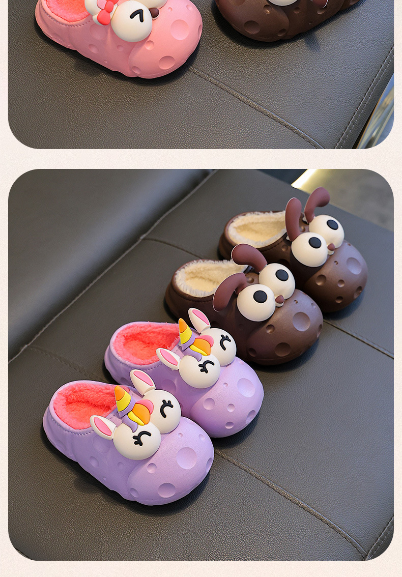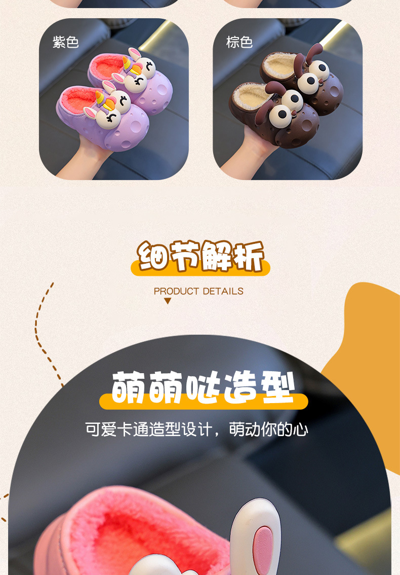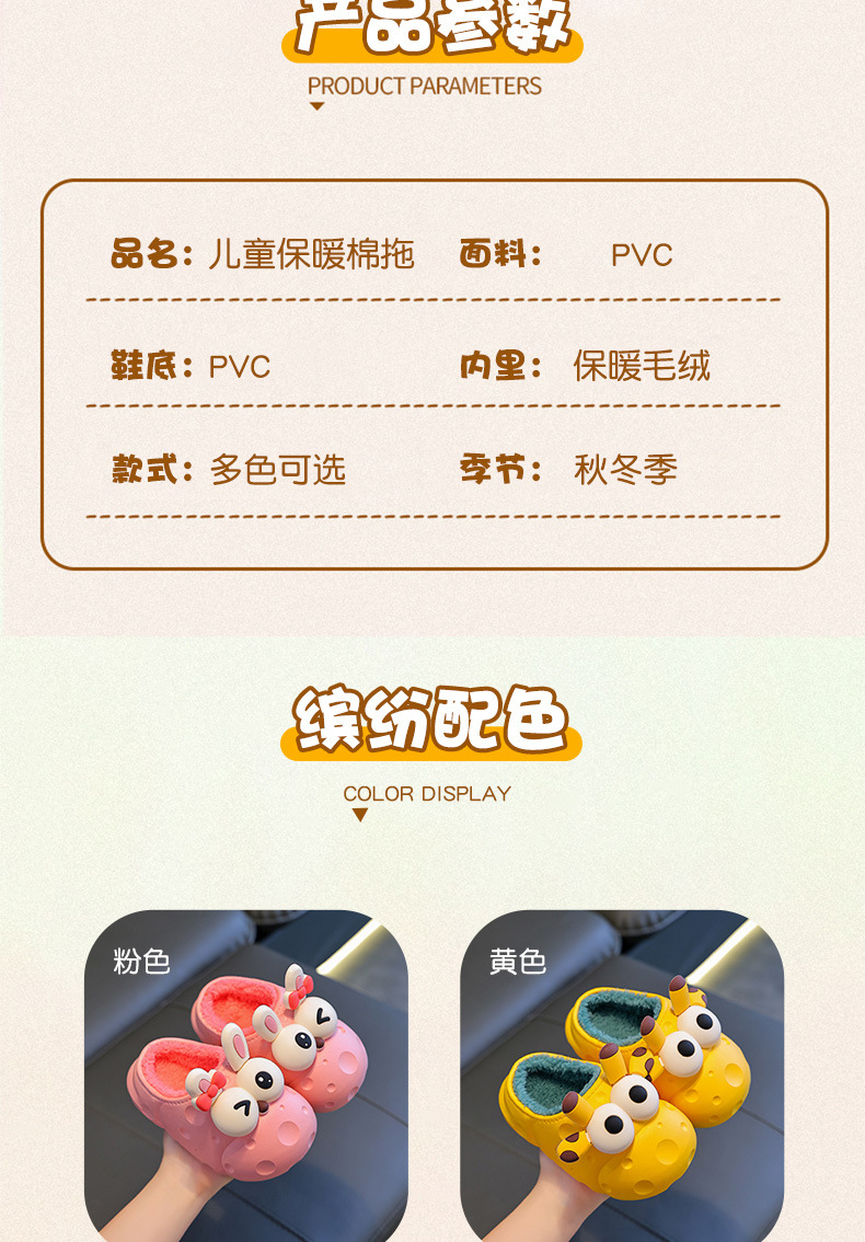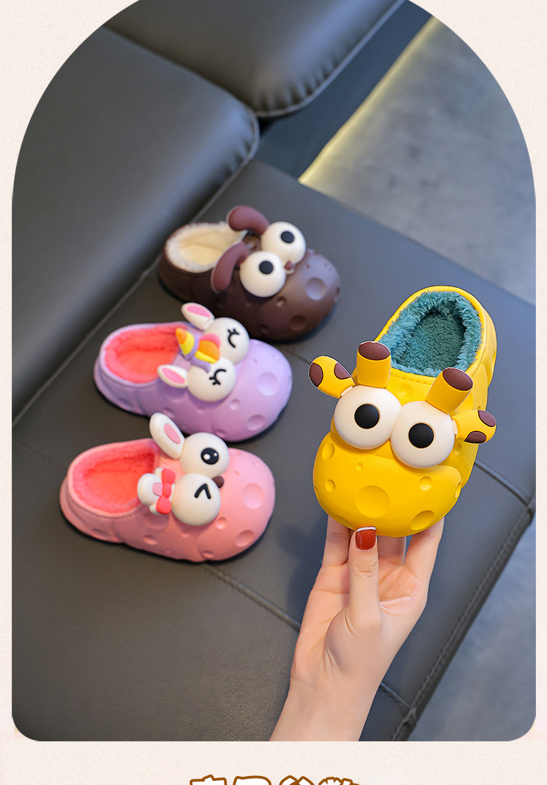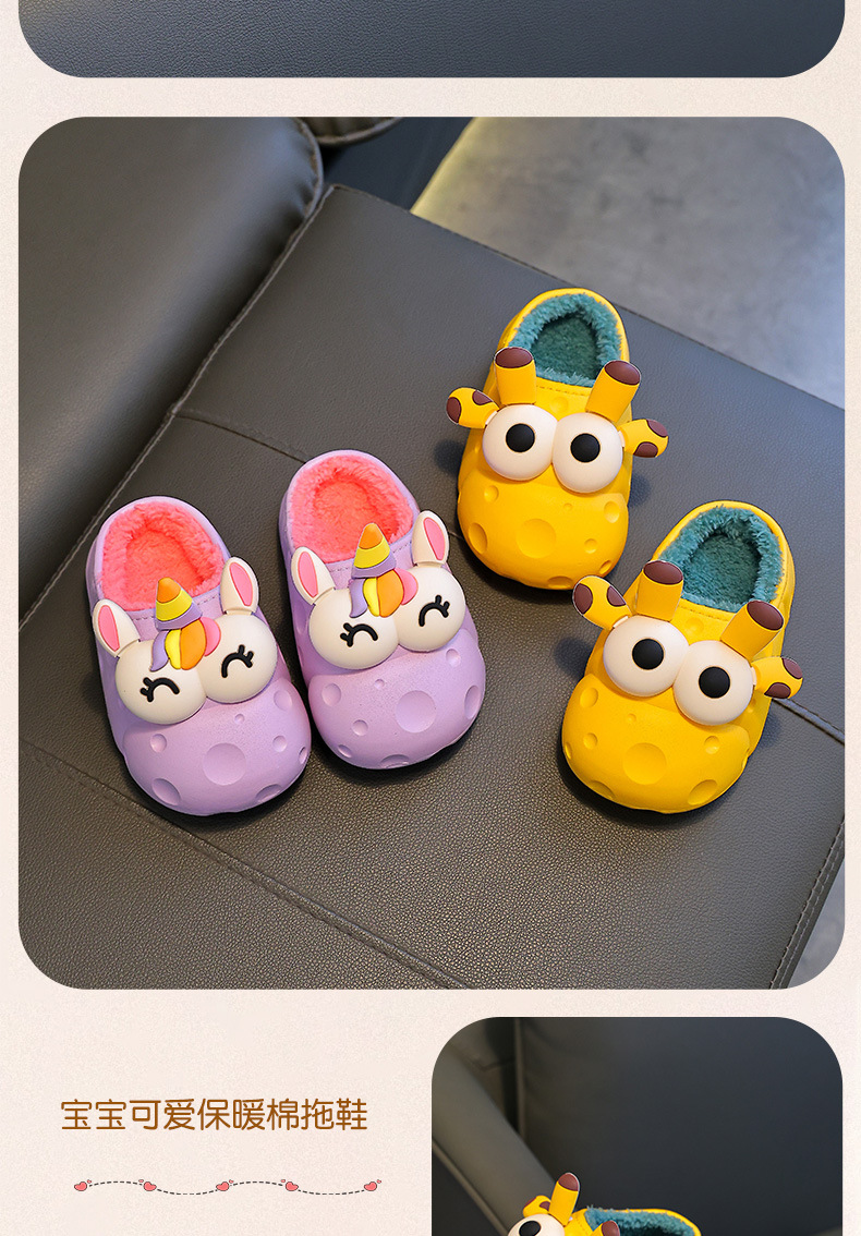 【婴幼儿卡通保暖加绒棉拖鞋】冬季儿童男女童1-3岁2防水包跟棉拖鞋