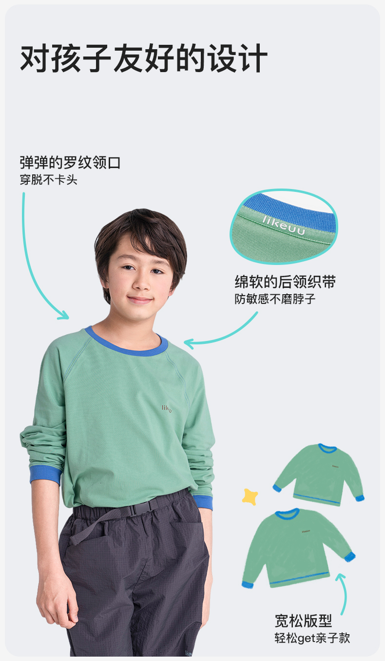 【限时特惠】ubras旗下likeuu男女童长袖吸湿速干上衣T恤