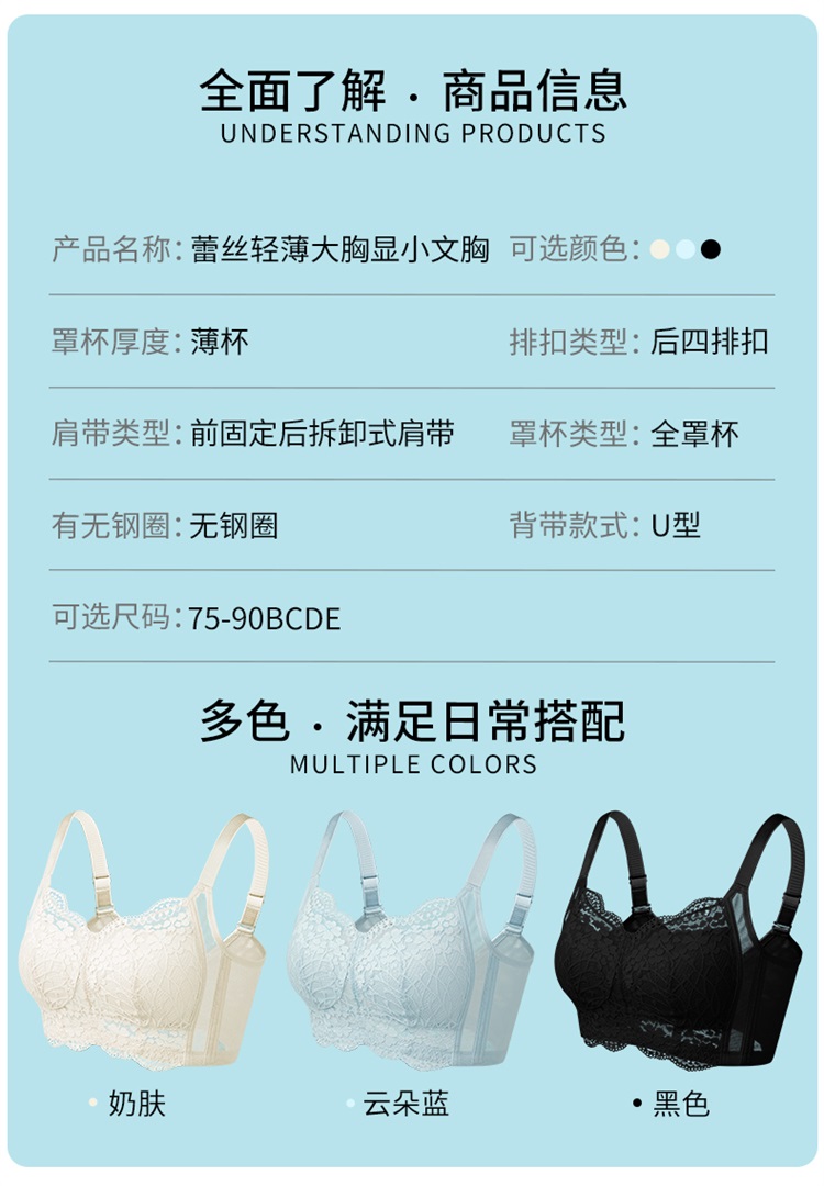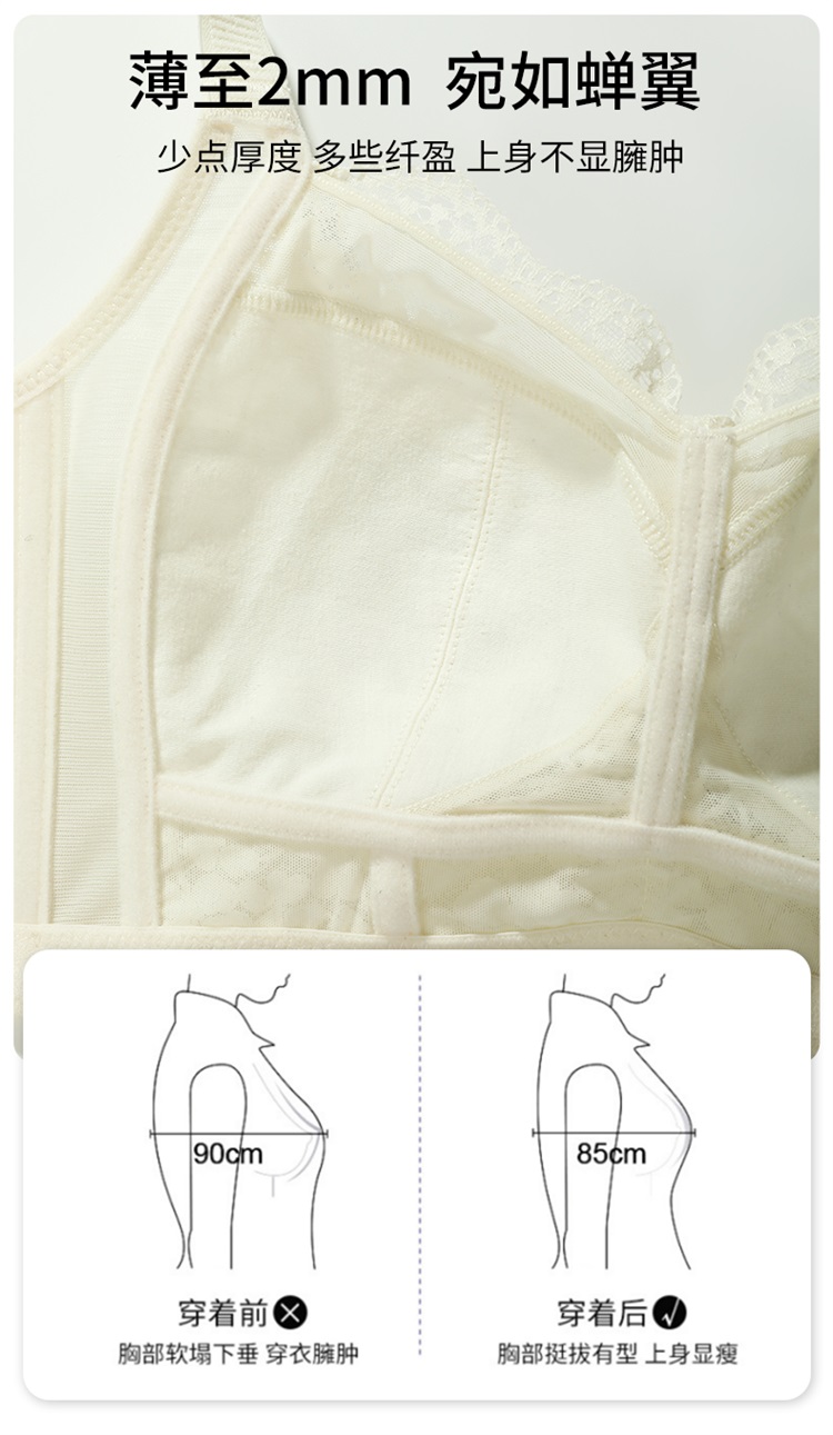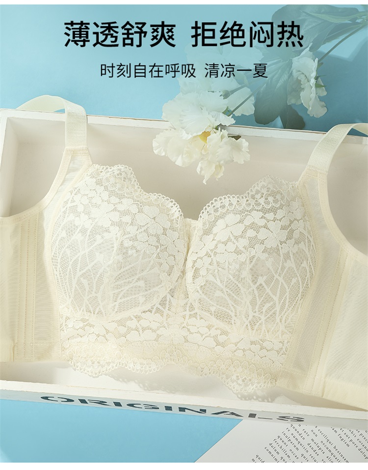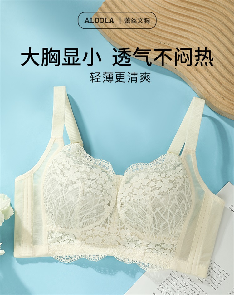 雅黛俪内衣女蕾丝大胸显小显瘦轻薄透气全罩杯收副乳无钢圈文胸