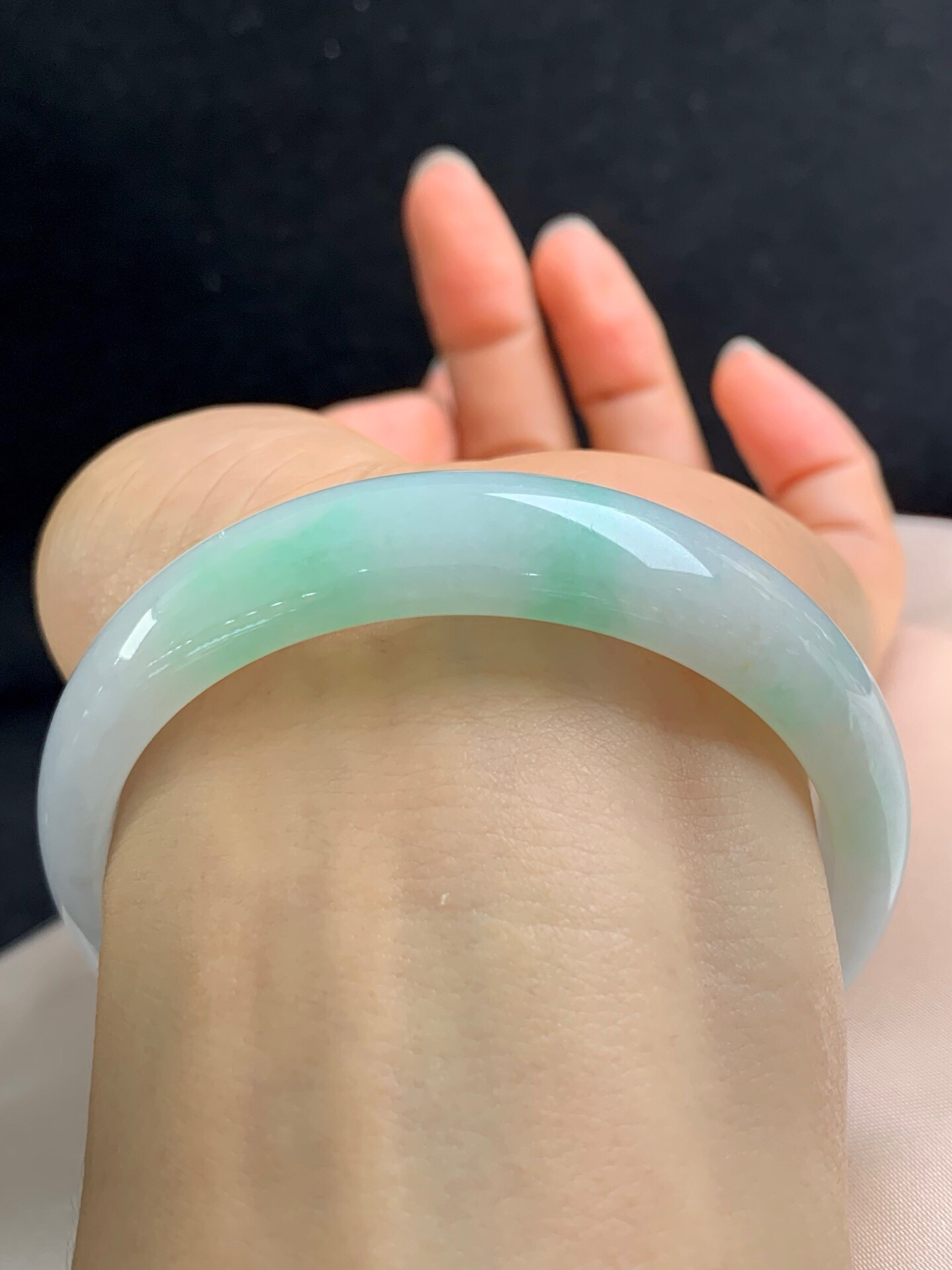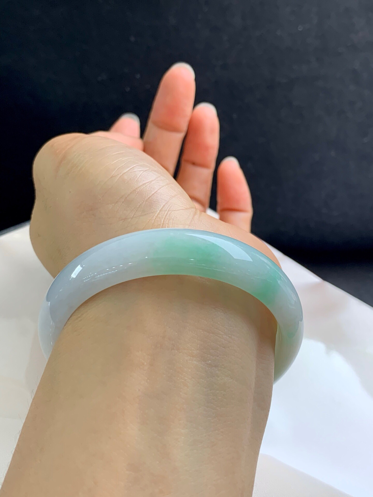 620323,58.2圈口,细糯化飘绿正圈平安镯,水头好,底子细腻,完美,尺寸:58.2-14-7.1,超值价💰10500 #优石客珠宝#香玉荟萃