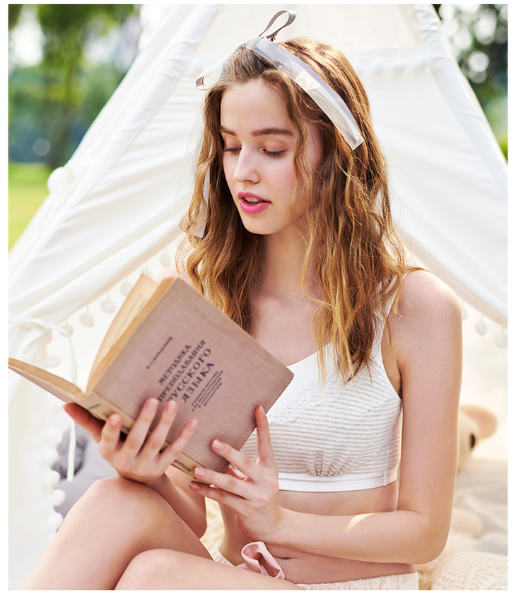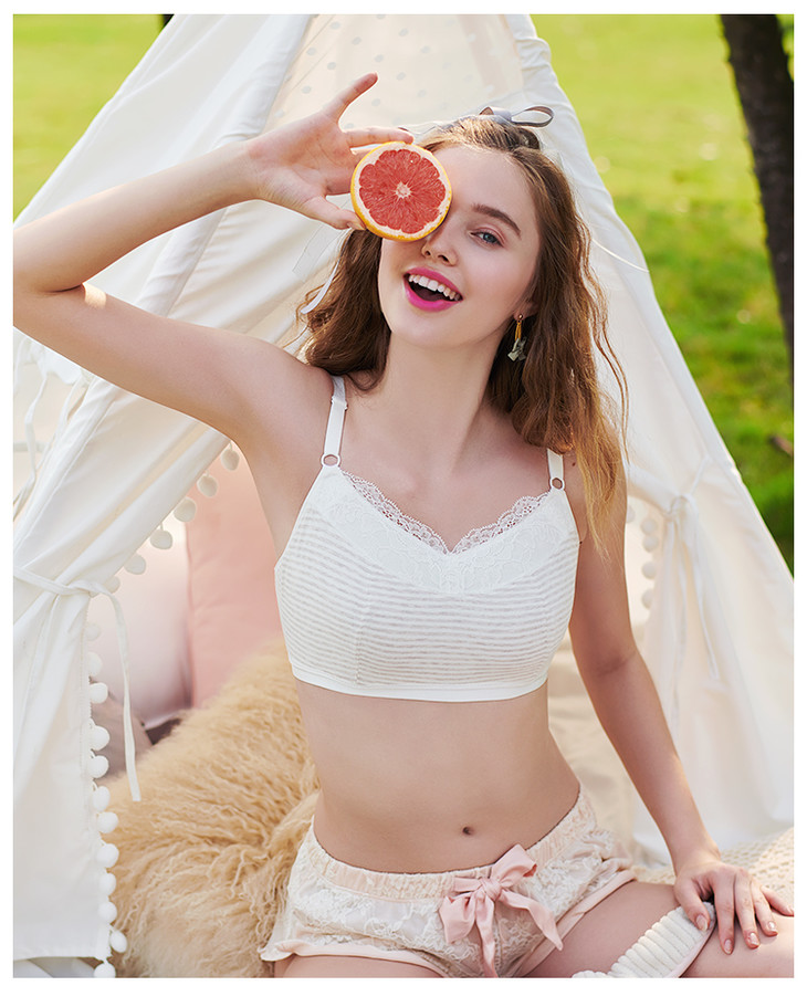 筑梦师睡眠内衣大胸改善外扩舒适薄棉居家文胸浅灰白沙色